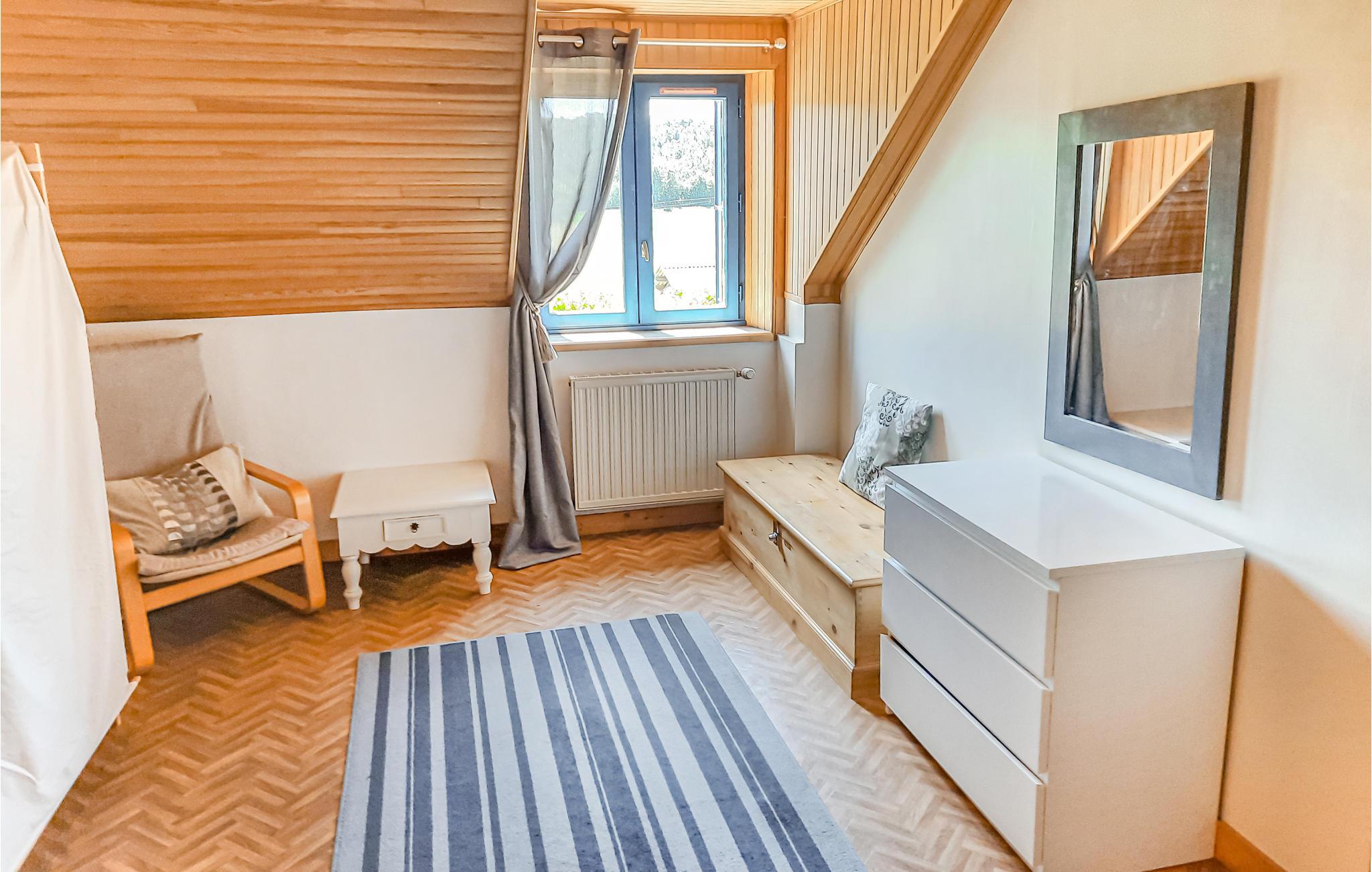 Denne halvdel af et hus ligger i en rolig bebyggelse og forkæler sine gæster med en herlig udsigt til de landlige omgivelser. Værelserne er komfortable og generøse, fremragende til en familieferie. Denne herlige region prydes af maleriske floder og dejlige steder, hvor I kan finde mange lokale produkter. I har også gode aktivitetsmuligheder: I kan cykle, vandre, sejle i kajak eller fiske i de rolige, idylliske omgivelser.