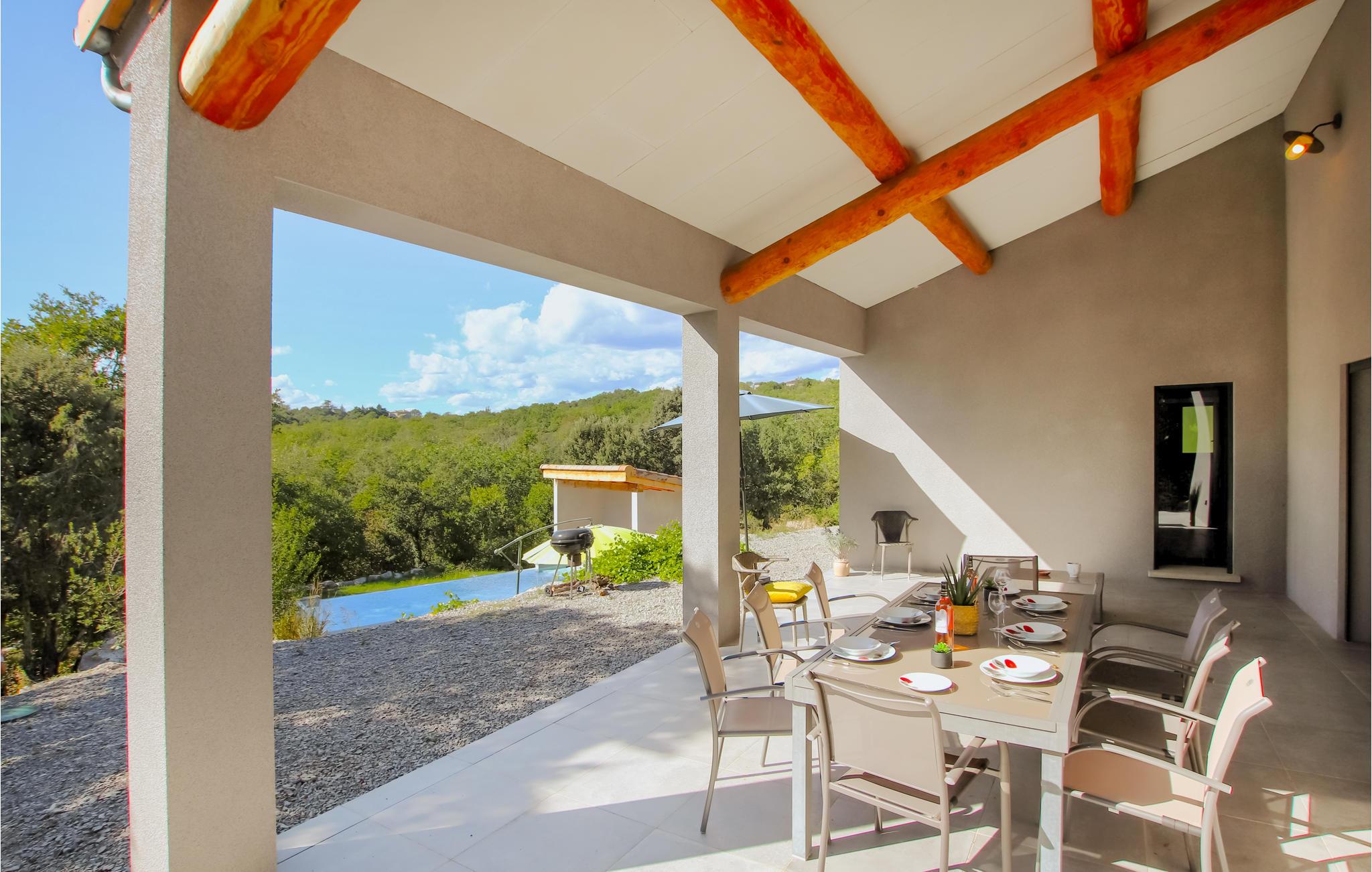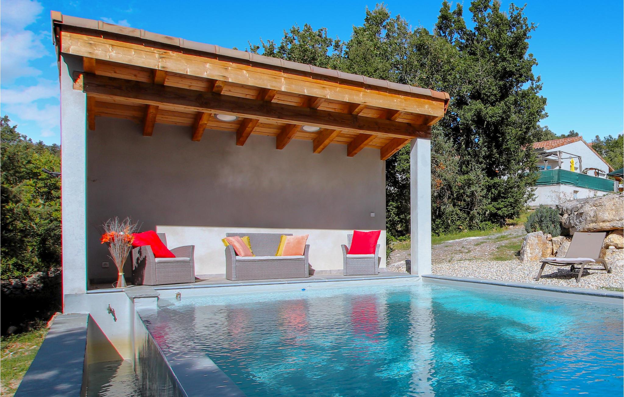 Dette farverige feriehus med pool har en fantastisk beliggenhed mellem de to smukkeste floder i det sydlige Ardèche.