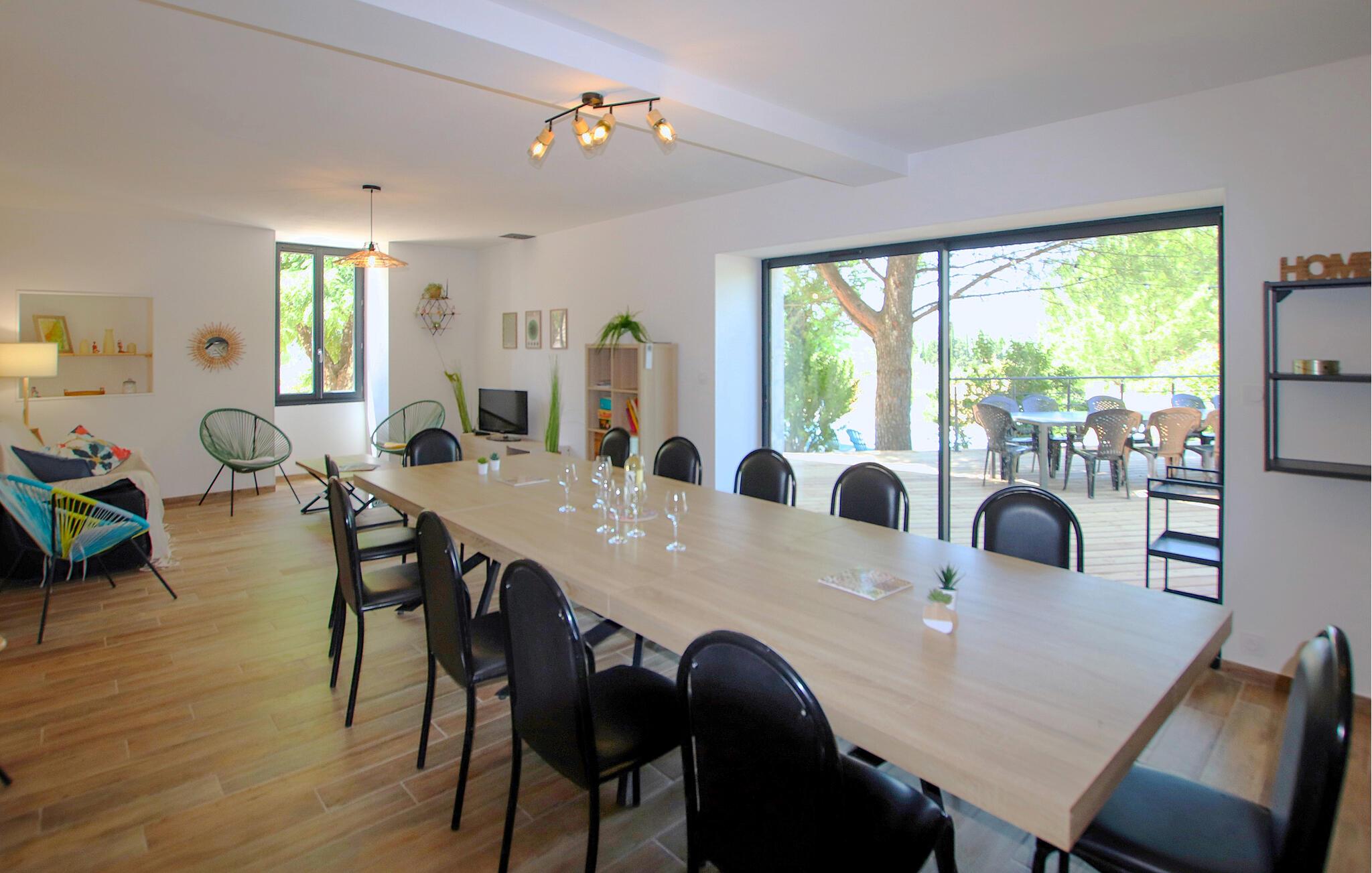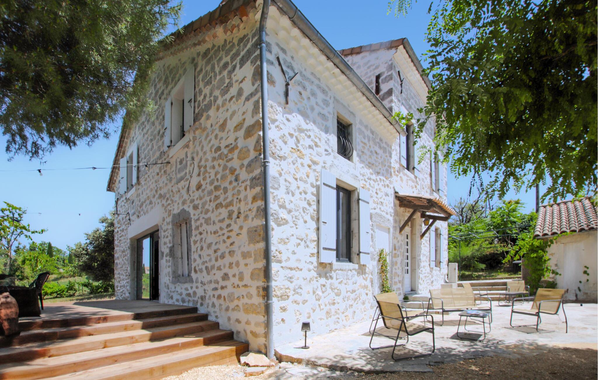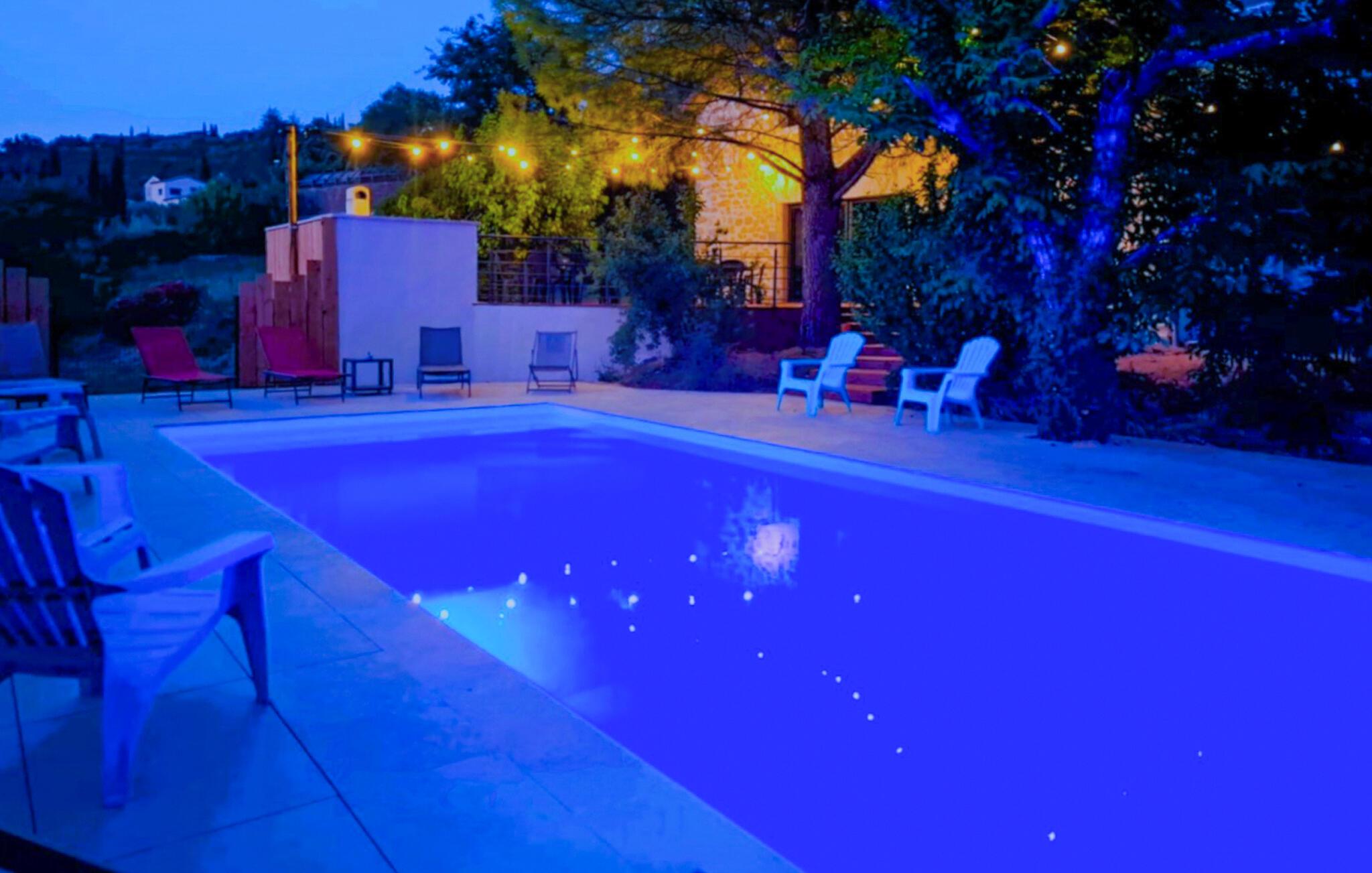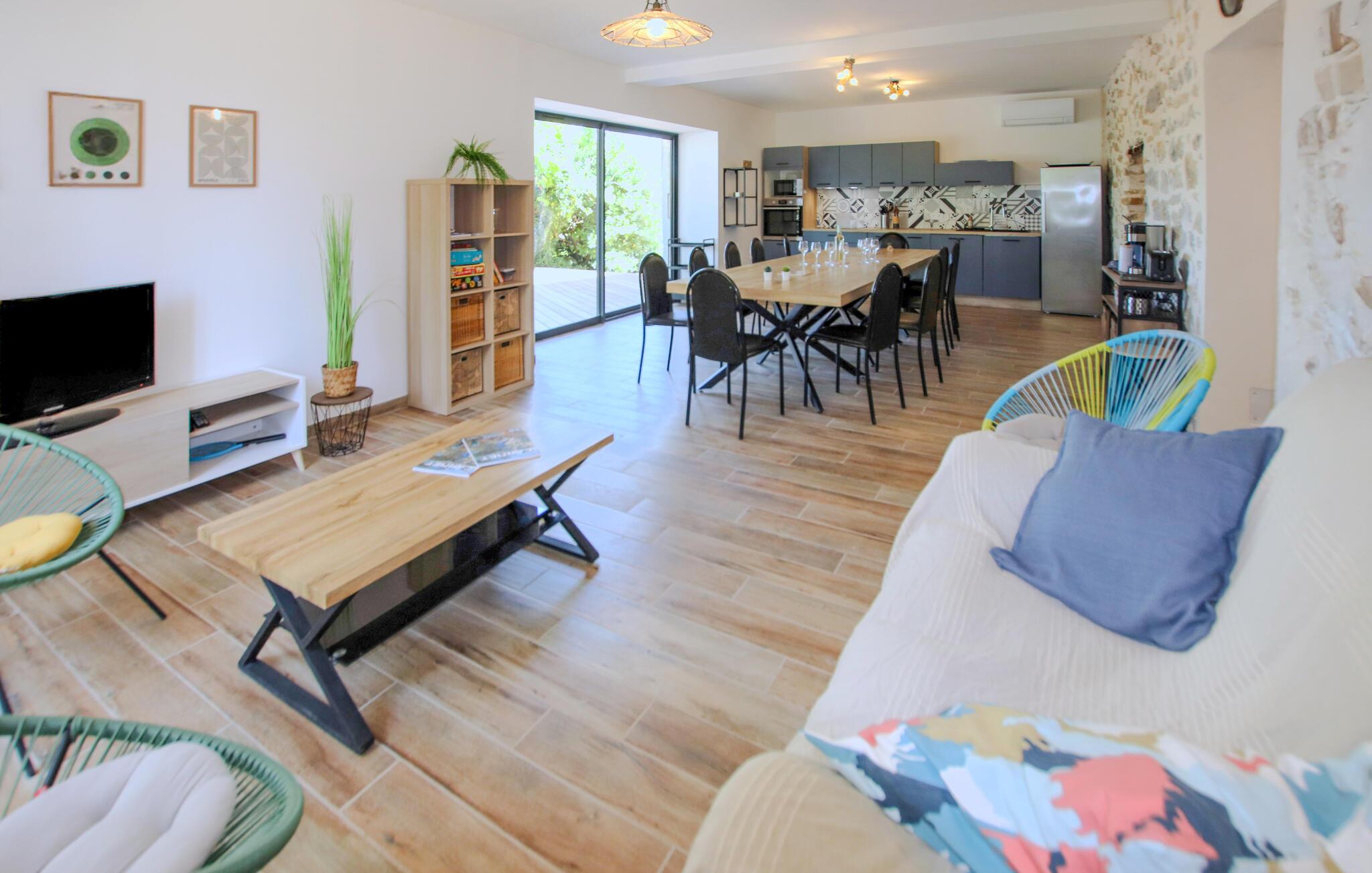 Tilbring en uforglemmelig ferie i dette karakterfulde feriehus med pool i en idyllisk beliggenhed. Dette charmerende, traditionelle stenhus byder jer velkommen med et moderne design og hyggeligt interiør, der tilbyder masser af plads og komfort til harmoniske stunder med vennegrupper eller den udvidede familie. Glæd jer til hyggelig madlavning i det åbne køkken og muntre måltider ved det lange spisebord. Spil bordtennis, billard eller dart, og stream jeres yndlingsserier. Det smukke udendørsområde lokker med hyggelige steder at spise og snakke - nogle gange i solen, nogle gange i skyggen. Tag en afslappet svømmetur i poolen om morgenen, udfordr jer selv til et spil badminton eller boccia, og brug sommerkøkkenet til at forberede lækre grillretter sammen til stemningsfulde aftener. Vandr gennem Ardèches imponerende kløfter eller tag en tur gennem Païolive-skoven. Slentr gennem de charmerende butikker i middelalderens Ruoms, oplev Ardèche med rafting eller kanosejlads, og oplev Beaume, Ligne og Chassezac samt forhistoriske steder som Pont d'Arc-hulen, Aven d'Orgnac og Chauvet-hulen.
