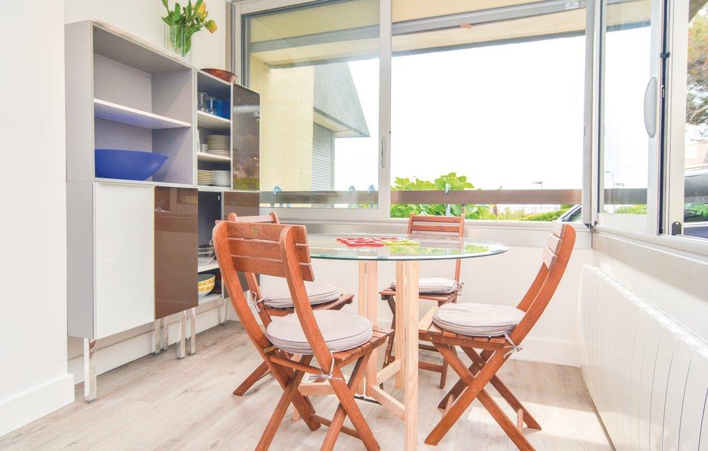 Dette behagelige studio ligger kun et stenkast fra havet og den nærmeste strand. Se frem til en rar udsigt og herlige gåture langs vandet. Til boliganlægget hører en fælleshave med boulebane. Indretningen er funktionel og tiltalende. Om sommeren fungerer verandaen som overdækket terasse. Sète er en smuk by på en smal landtunge mellem havet og en lagune. Lyt til en koncert på havscenen, oplev fyrtårnet Saint-Louis og kapellet Notre-Dame-de-la-Salette og stig op på Mont-Saint-Clair for at nyde det fantastiske panorama. Bouzigues, der ligger i nærheden, er kendt for friske østers, i Agde kan I besøge stranden Grande Conque. I må gerne bruge garagen til jeres bagage, der er også cylker til rådighed. En separerer sovehjørnet og køjesengen fra opholdsstuen med en kvalitetssovesofa.
