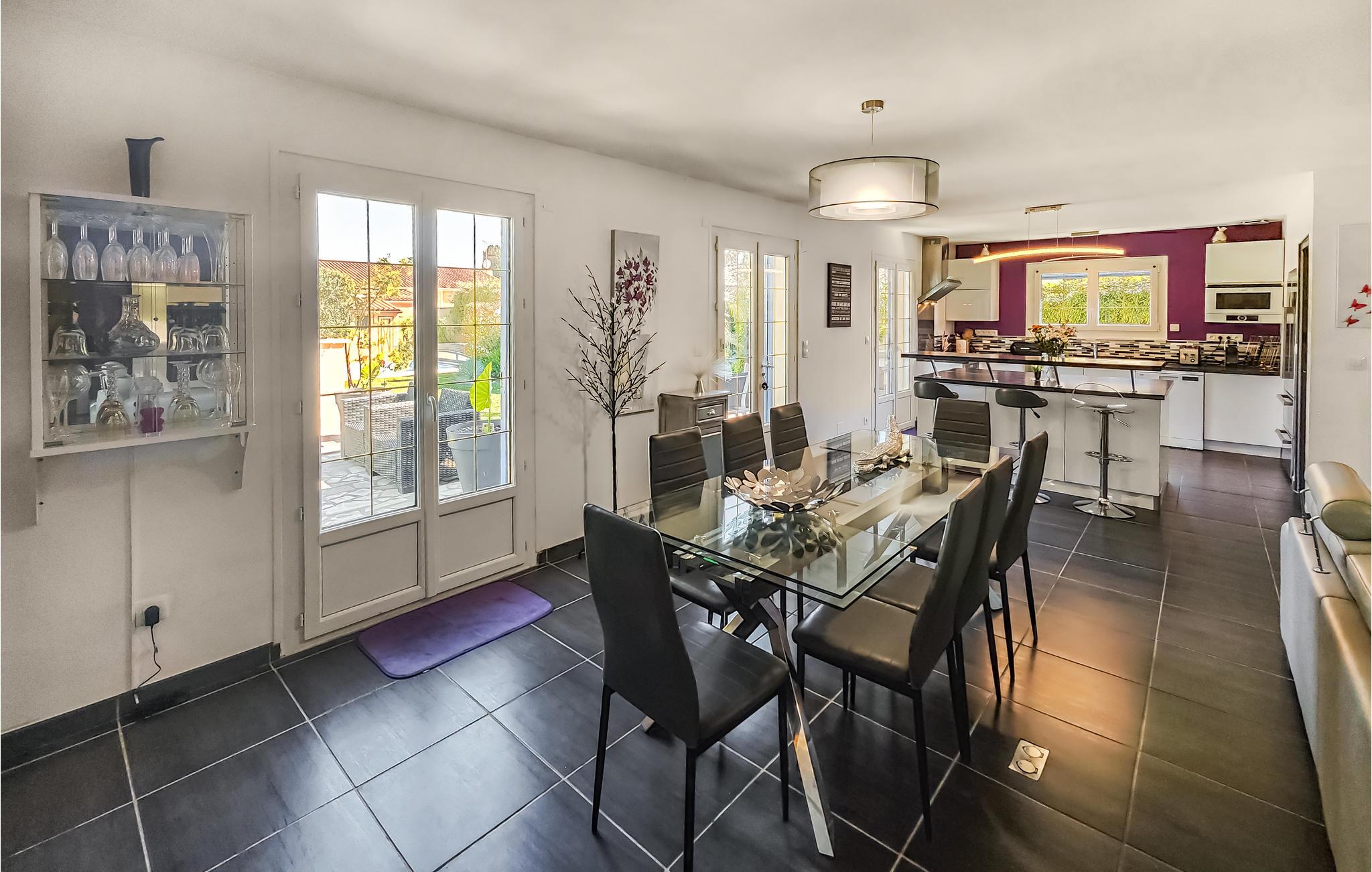 Forkæl jer selv med en pause fra hverdagen i dette skønne feriehus. I kan ankomme her med familien og føle jer hjemme. Det veludstyrede feriehus med en smuk indretning giver jer masser af plads til at nyde jeres tid fuldt ud. Gør den store stue til jeres familiemødested, hvor I kan lave mad sammen, spille kort ved spisebordet eller se jeres yndlingsserie i fjernsynet om aftenen. I kan også nyde solstrålerne på den franske middelhavskyst på terrassen, som lægger op til at spise sammen og slappe af med en kølig drink.