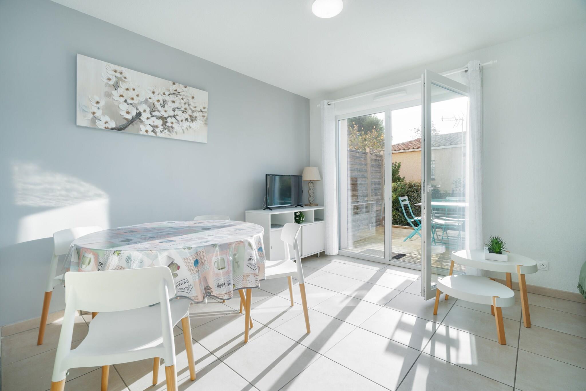 Denne lyse og hyggelige villa på 55 m² i Sérignan har 2 soveværelser og rummer op til 6 gæster, og tilbyder en afslappende ferie i et familievenligt område nær havet. Beliggende kun 450 m fra sandstranden, 1 km fra et supermarked og 1 km fra en restaurant, giver det en ideel balance mellem bekvemmelighed og ro. Villaen har en privat have med havemøbler, en indhegnet grund og en terrasse, perfekt til at nyde udendørs stunder. Yderligere faciliteter omfatter aircondition, elvarme, ventilator og adgang til en fælles opvarmet swimmingpool. Udendørs parkering inden for ejendommen og et tv er også til rådighed for et behageligt og behageligt ophold. Det fuldt udstyrede elektriske køkken i åbent plan kommer med køleskab, mikroovn, opvaskemaskine, kaffemaskine, brødrister, kedel, tallerkener, bestik og køkkenredskaber, hvilket sikrer, at gæsterne har alt, hvad de har brug for til en problemfri ferie.