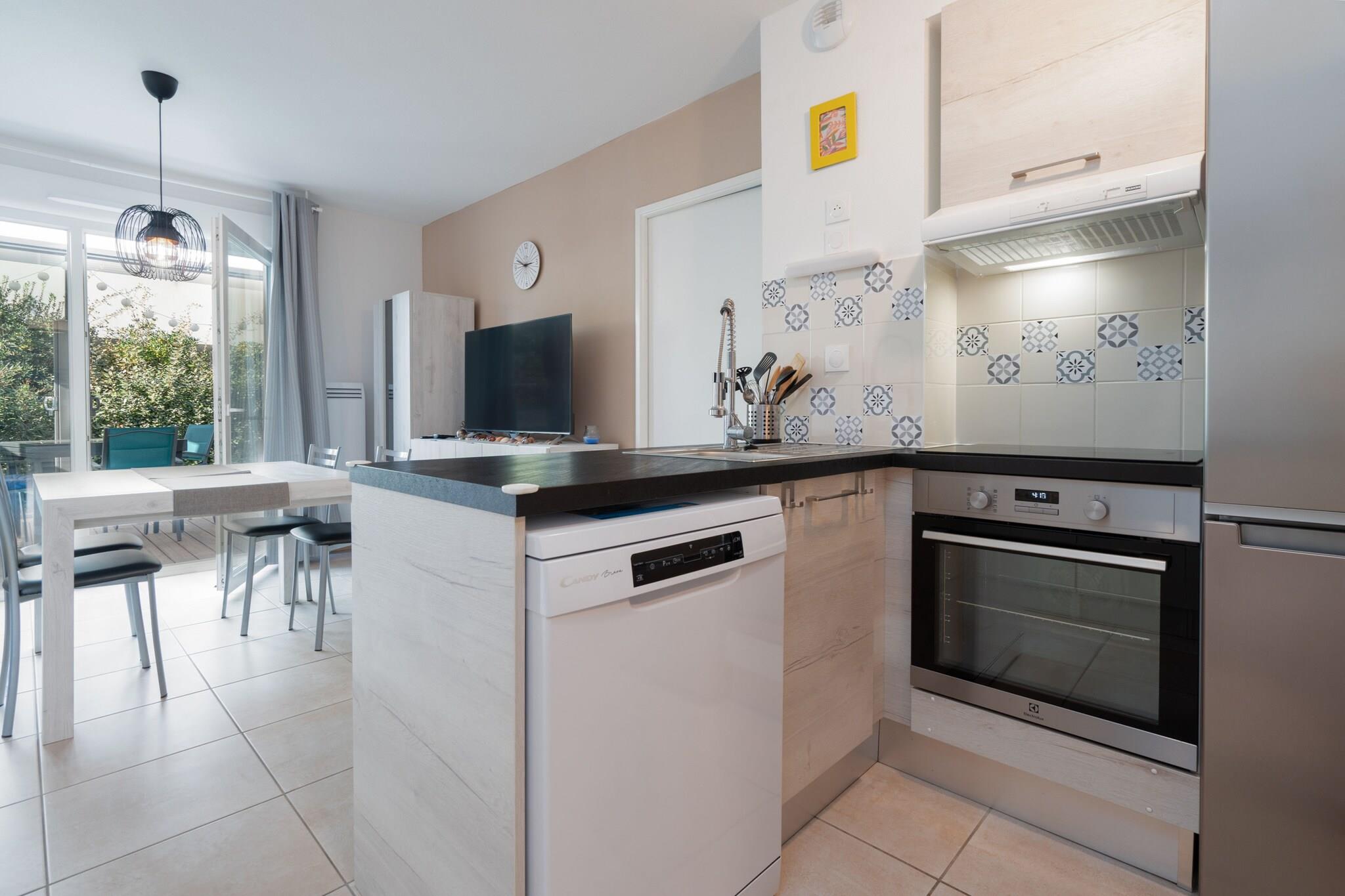 Beliggende i den fredfyldte kystby Sérignan tilbyder denne charmerende villa på 56 m² en lys og hyggelig tilflugtssted for op til 6 gæster. Med 2 komfortable soveværelser og en åben planløsning er den perfekt til familier, der søger en afslappende ferie nær stranden. Beliggende kun 450 meter fra sandstranden og 2 km fra både restauranter og supermarkeder, ligger villaen i en fredelig, familievenlig zone, der er ideel til at slappe af. Ejendommen har en privat indhegnet have med havemøbler og en solrig terrasse, perfekt til morgenkaffe eller aftensmad. Gæsterne nyder moderne bekvemmeligheder, herunder aircondition, elvarme, tv og adgang til en fælles opvarmet swimmingpool. Udendørs parkering er tilgængelig i samme bygning, hvilket gør dit ophold lettere. Det fuldt udstyrede elektriske køkken omfatter køleskab, mikroovn, ovn, opvaskemaskine, kaffemaskine, brødrister, kedel og alle nødvendige redskaber. Uanset om du forbereder en strandpicnic eller en hyggelig middag, sikrer denne villa en jævn og behagelig oplevelse. Beliggende på Avenue des Pattes Rouges, Apartment 71, Sérignan 34410, er det din port til middelhavscharmen i det sydlige Frankrig.