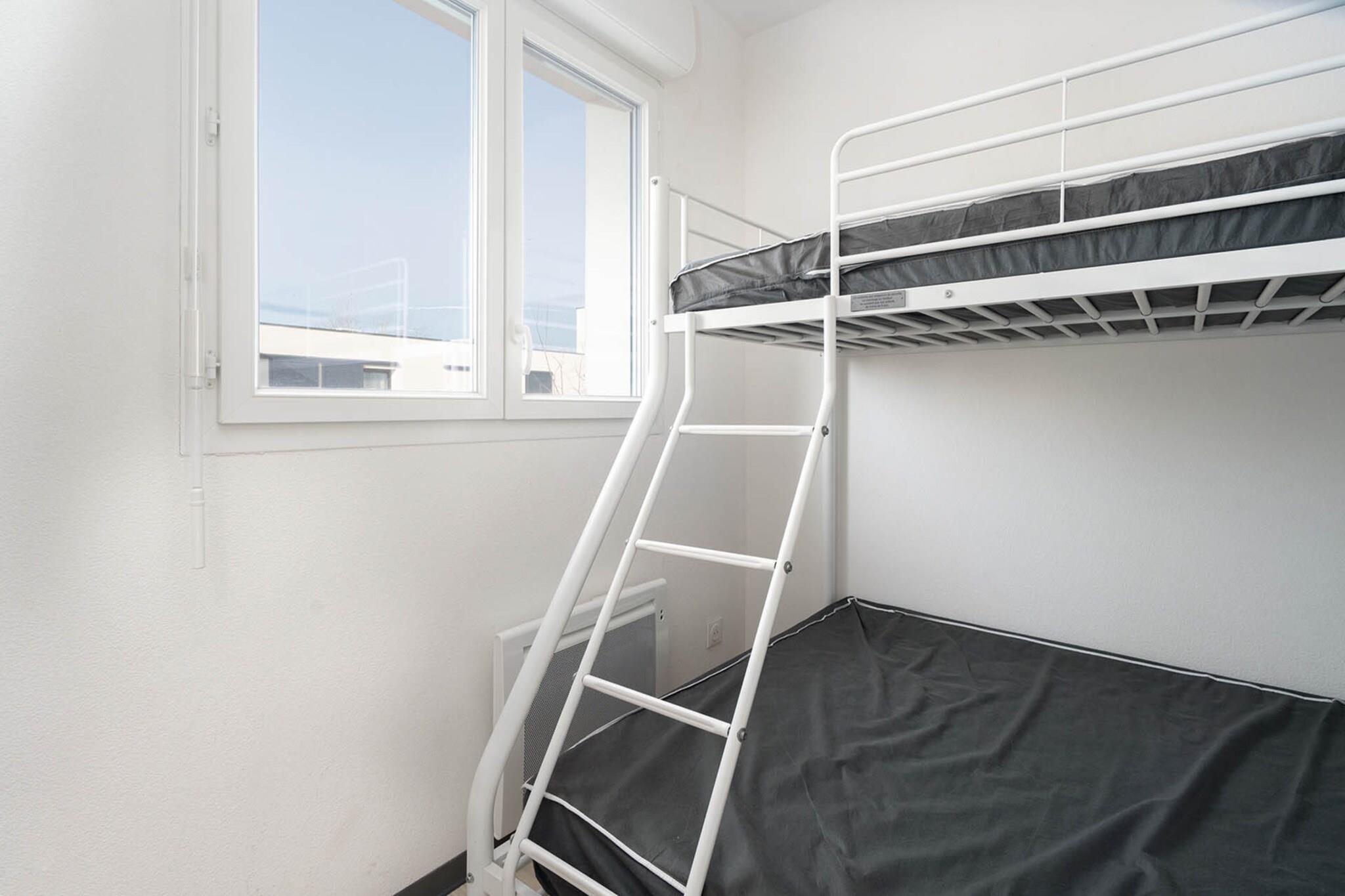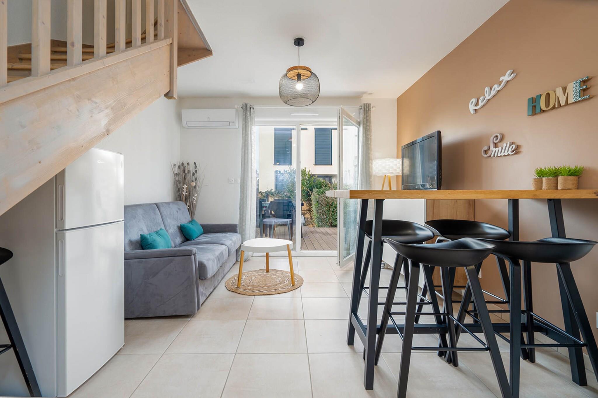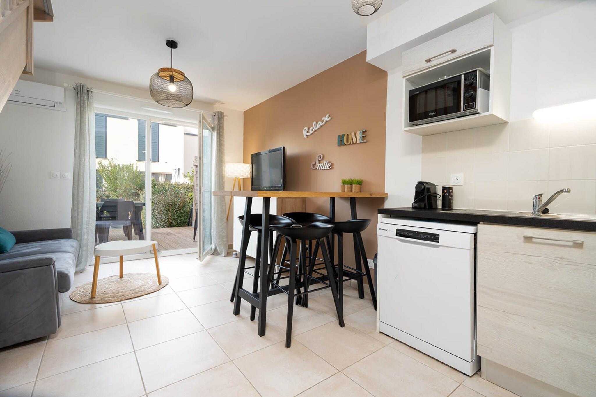 Oplev den solbeskinnede charme af denne indbydende villa på 40 m², en perfekt ferie ved havet for familier eller små grupper på op til seks gæster. Med to komfortable soveværelser og en hjemlig atmosfære er denne bolig designet til at imødekomme alle dine behov. Beliggende kun 450 meter fra strandens glitrende sand, vil du finde det nemt at fordybe dig i dovne dage ved havet eller nyde en afslappet spadseretur langs kystlinjen. Det familievenlige kvarter tilføjer et ekstra lag af varme og fællesskab, hvilket sikrer en dejlig atmosfære for både forældre og børn. Hjertet af denne villa har et åbent køkken, fuldt udstyret med moderne apparater, herunder køleskab, mikroovn og opvaskemaskine, hvilket gør tilberedningen af måltider ubesværet. Saml dig i den hyggelige stue udstyret med et tv til filmaftener, eller træd udenfor for at slappe af på udendørsmøblerne i haven, omgivet af frodige grønne områder. Den opvarmede fælles swimmingpool er et andet højdepunkt, der inviterer dig til at tage en forfriskende dukkert, mens du soler dig i middelhavssolen. Komfort er sikret med aircondition og elvarme, hvilket giver en perfekt flugt på enhver sæson. Bekvemmelighed er lige ved hånden med en restaurant kun en kilometer væk og et supermarked kun to kilometer fra din hoveddør. Udforsk de lokale attraktioner såsom den imponerende Fonserannes-sluse, den pulserende Beziers Arena, eller tilbring en spændende dag på Aqualand Cap d'Agde, som ligger kun en kort køretur væk. Med Beziers Cap d"Agde Lufthavn beliggende blot 16 km væk, er denne villa din ideelle base for at udforske alle de lækkerier, som den fantastiske Middelhavskyst har at tilbyde.