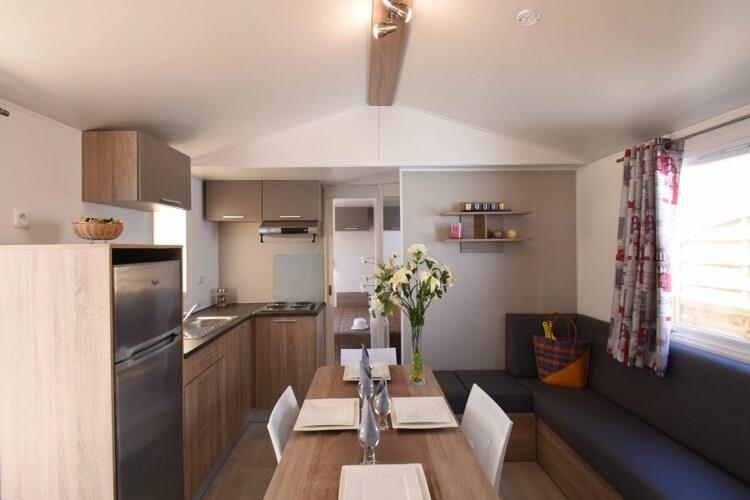 Nogle gange har man bare lyst til sol, en liggestol ved poolen og dage, der ikke kræver planlægning - Mas des Lavandes er et ideelt sted til det. En campingplads i resortstil nær Valras-Plage, der tilbyder komfort, bekvemmelighed og masser af plads til at slappe af. Dette mobilehome er omhyggeligt designet til at rumme 6 voksne, fordelt på 3 soveværelser - med henholdsvis to enkeltsenge i hver og en dobbeltseng, og en sovesofa i den rummelige stue til ekstra gæster, et fælles badeværelse og toilet, et fuldt udstyret køkken, aircondition, tv, Wi-Fi og parkering på stedet. Perfekt til par, venner eller grupper, der rejser sammen, og som leder efter en rolig, solrig base ved Middelhavskysten. Du får adgang til en privat terrasse til lange udendørs middage og en flaske lokal vin til ro. Vandparken lader dig flyde, svømme eller køle af hele dagen. Du finder en restaurant-bar, et takeaway-hjørne, en købmand med frisk brød og aftenunderholdning for alle, der ønsker lidt festlig stemning efter solnedgang. Hvis ikke vandparken, kan du vælge wellness-muligheder - spa, massage og spabad eller jacuzzi. Og når du endelig vil have havet, er Valras-Plage kun en kort tur væk, hvor du kan svømme, gåture i solnedgangen og spise ved vandet. En enkel, solrig og ubesværet ferie, hvor du kan tænke på morgendagen - morgendagen.