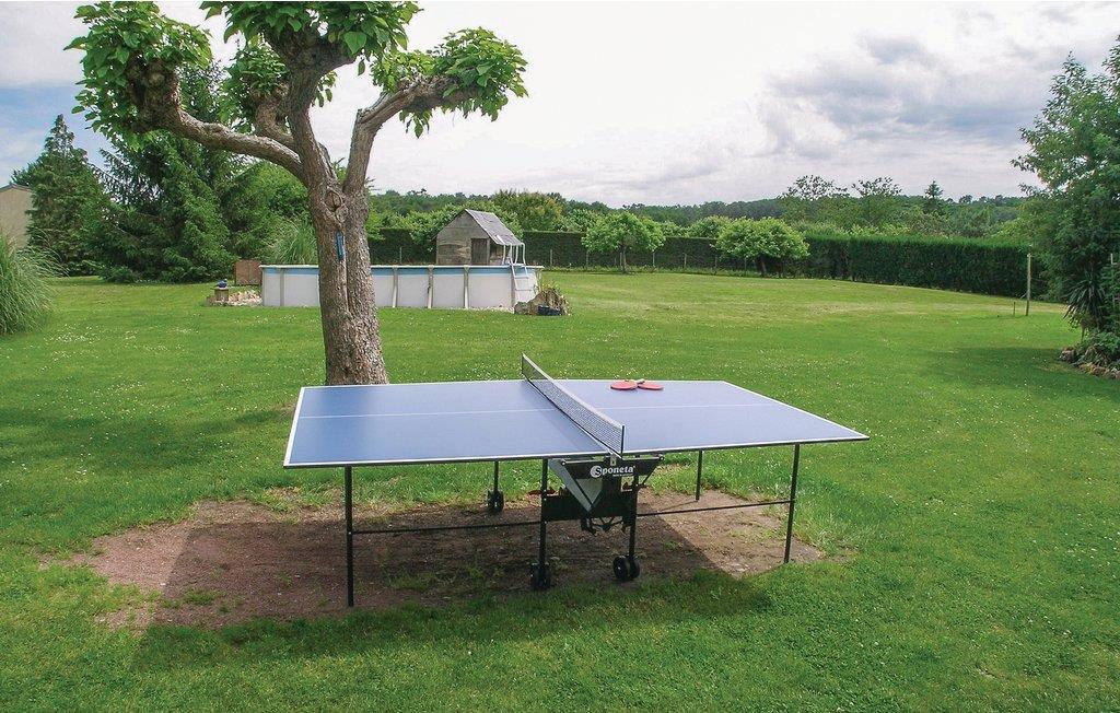 Du kan nyde et privat udendørs område med en smuk, hævet terrasse, en stor græsplæne og en smuk udsigt over landskabet. En lækker pool over jorden er reserveret til dig og byder på øjeblikke af ren afslapning i solen. Der er også et bordtennisbord. Køkkenet er på nordsiden bagtil og fører ud på den private terrasse, hvor du kan beundre græsplænerne i britisk stil.
