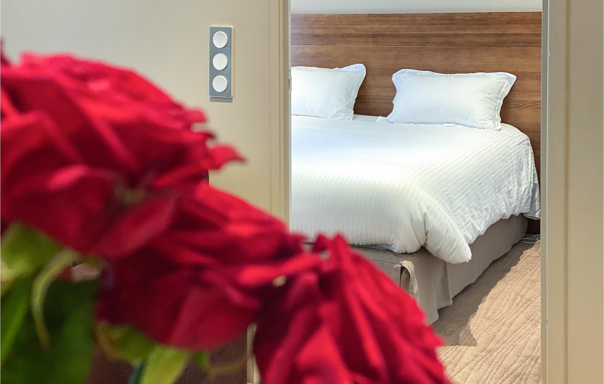 Den indbydende lejlighed er det perfekte sted til en afslappende pause for to. Så snart I træder ind i de lyse værelser med moderne og komfortabel indretning, vil I føle jer hjemme. Nyd en fantastisk udsigt over landskabet. Styrk jer selv med en lækker morgenmad, og I er klar til dagen! Efter en lang dag på farten kan I slappe af i saunaen, som deles med andre gæster, træne i fitnessrummet og senere læne jer tilbage i sofaen og snakke længe.