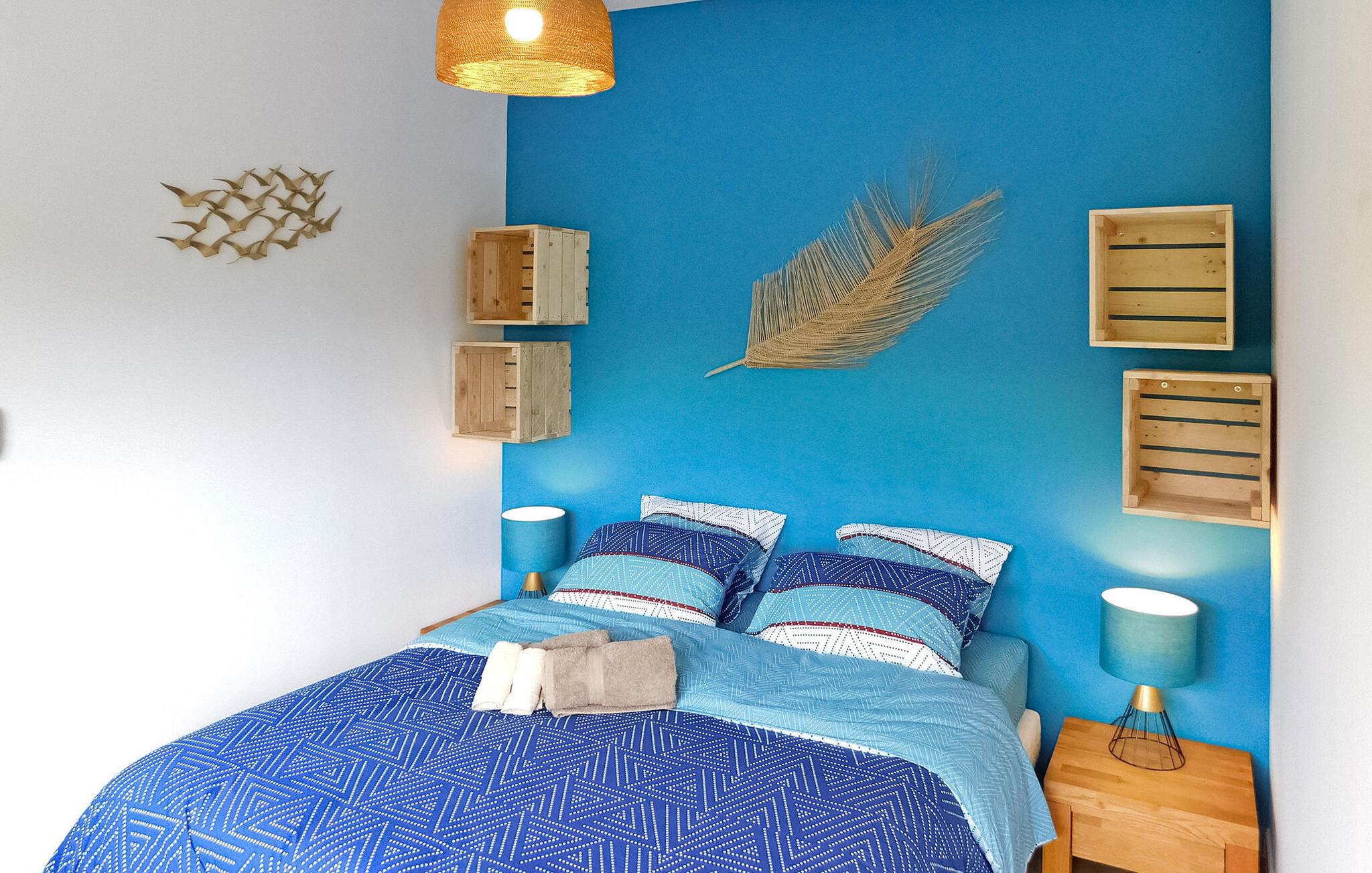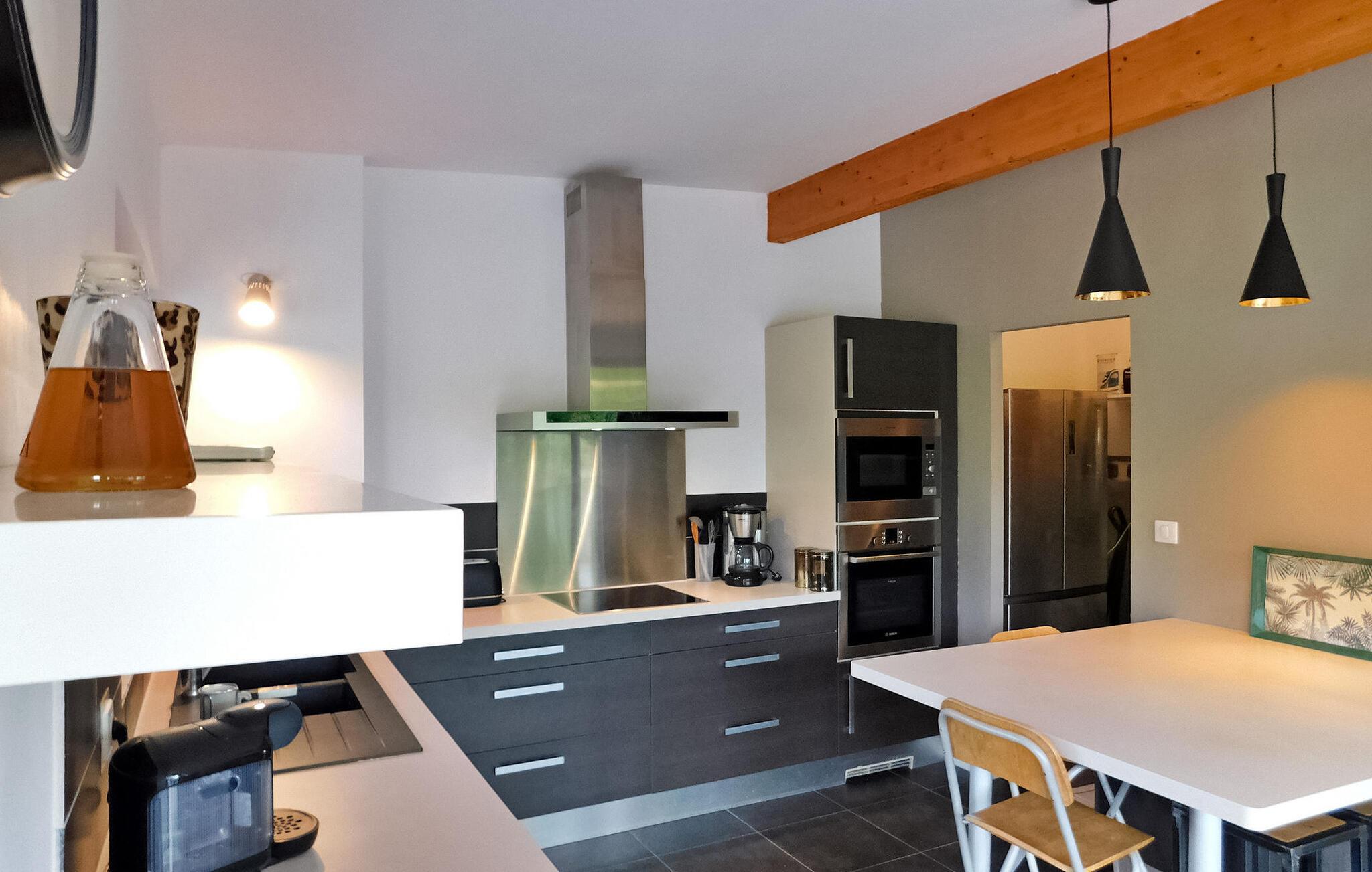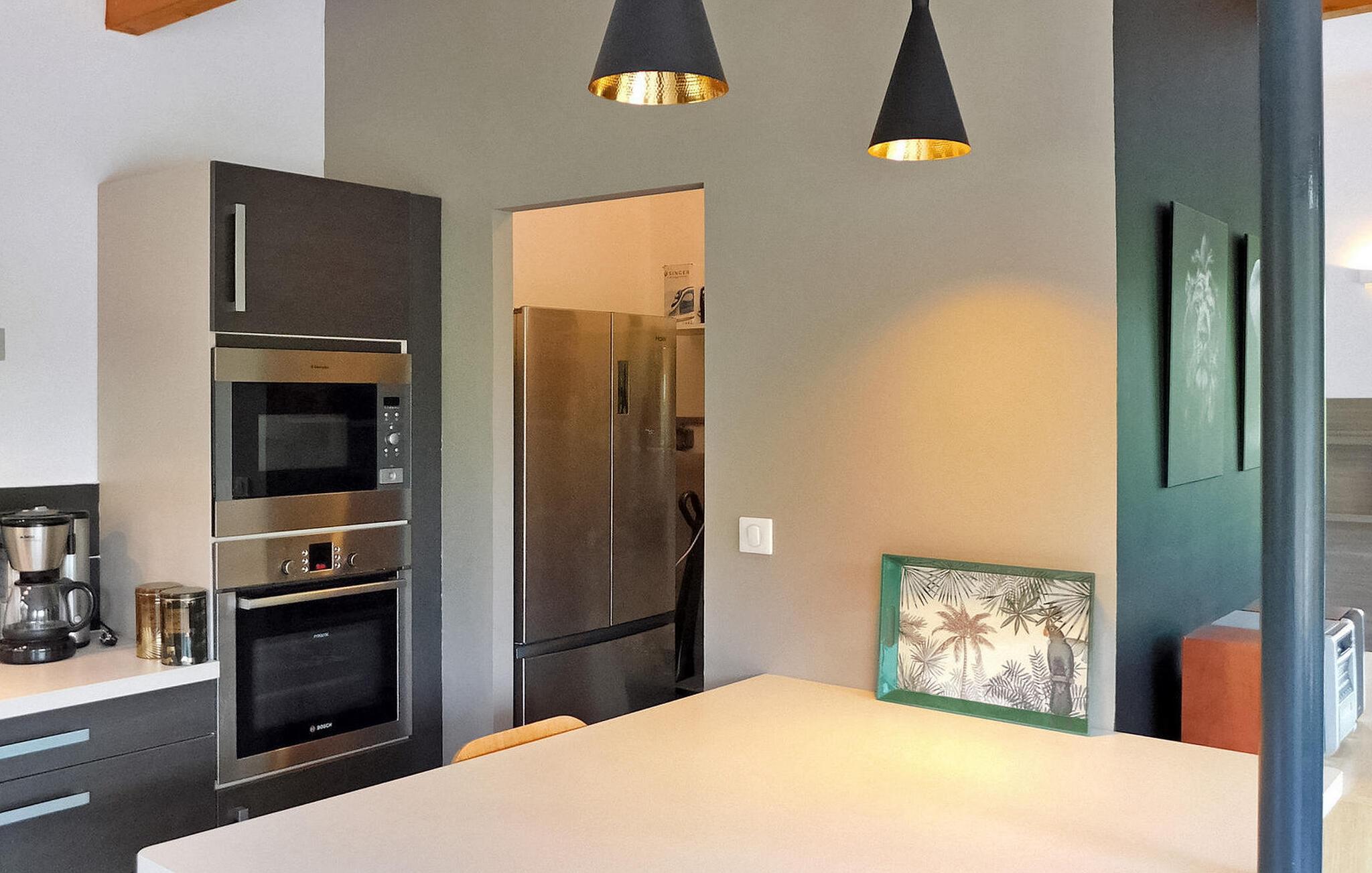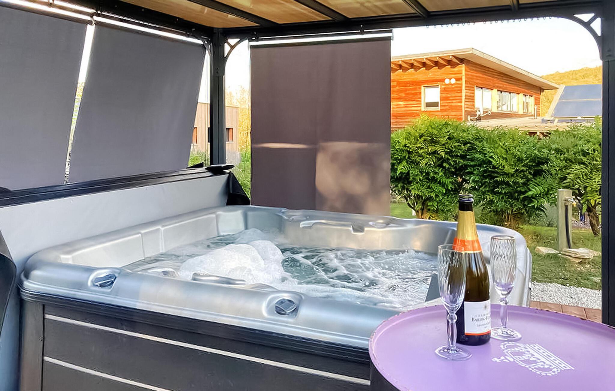 Dette moderne træferiehus i Dordogne ligger i rolige landlige omgivelser nær Saint Amand de Coly. Huset har et airconditioneret og lysende stueetage med en hyggelig opholdsstue, spiseplads og et åbent køkken udstyret med essentielle apparater. Stueetagen rummer desuden to soveværelser, hvoraf det ene er indrettet med køjesenge og et fodboldbord til børn. Ovenpå er der to soveværelser med aircondition og et fælles brusebad. Udenfor byder ejendommen på en privat opvarmet swimmingpool, legeplads med trampolin og legehus, flere terrasser med udendørsmøbler og plancha. Bemærk venligst, at hovedadgangen er gennem en trætrappe med gelændere og en adgangslåge. Om vinteren er opvarmning leveret af en pilleovn. Huset ligger på landet uden for landsbyen Saint-Amand-de-Coly (lokal købmand, restaurant og brøddepot).