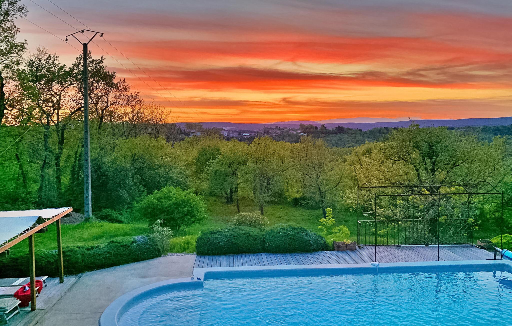 Ferievillaen i Gard Provence har en naturskøn beliggenhed i St. André d'Olérargues med en rummelig terrasse og en opvarmet pool med en fængslende udsigt over dalen. I ejendommens stueetage er der fuldt udstyret køkken med direkte udgang til terrasse og rummelig stue med franske vinduespartier ud til terrassen samt to soveværelser og et badeværelse. På første sal er der et ensuite soveværelse. I venstre fløj af ejendommen finder du soveværelse og tv-stue med sovesofa. Over tv-stuen er der en åben mezzanin med to enkeltsenge. På grund af rummets lave højde er mezzaninen mere velegnet til børn/teenagere. Dog bør meget små børn være under opsyn her (åbne trapper). Udenfor er en privat opvarmet swimmingpool (12m x 6m) med terrasser, liggestole og en stor delvist overdækket terrasse med siddepladser. Grunden er ikke indhegnet og er udformet i forskellige niveauer. Huset er roligt beliggende, i rolige og meget naturlige, men ikke isolerede omgivelser, lige under en lille landsby. Bageri og købmand omkring 3 km væk, flere butikker og restauranter i Goudargues (10 min i bil, 7,5 km). I omgivelserne kan du besøge følgende turiststeder: La Roque sur Cèze (vandfald og svømning) 11 km, den meget smukke landsby Goudargues (restauranter og terrasser) 7,5 km. Og den meget smukke historiske landsby Montclus (17 km). Den meget smukke by Uzès (21 km). Barjac (ved 26 km), Pont St. Esprit og Gorges de l'Ardèche (canyoning, kanosejlads, ca. 45 min. kørsel).
