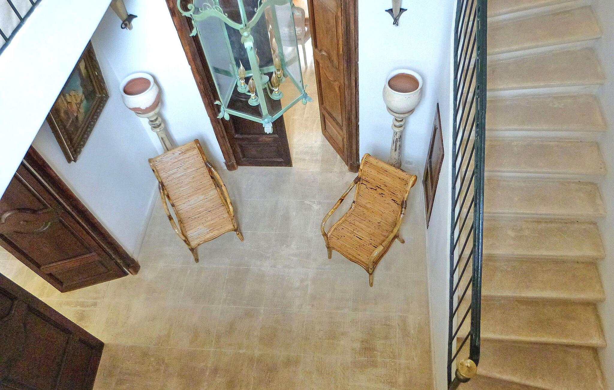 Beliggende i fredfyldte Sainte Victoire, kun en kort 10-minutters kørsel fra Aix en Provence, venter dette provencalske landsted på din ankomst. Huset er fordelt på tre niveauer og byder på masser af indbydende plads. Når du kommer ind, byder stueetagen dig velkommen med en charmerende stue med plyssofaer og en dekorativ pejs. Tilstødende er en elegant spiseplads, mens det veludstyrede køkken står klar til kulinariske eventyr. Begiv dig nedenunder for at finde praktiske faciliteter såsom et vaskerum og et fitnessområde, ideelt til at holde dine wellness-rutiner ved lige under dit ophold. Udendørs har ejendommen omfattende lukket jord, der tilbyder en lokkende infinity-pool med en fantastisk udsigt over Sainte Victoire-bjerget. Slap af på liggestole ved poolen, nyd den fredelige udsigt og nyd udendørs siddepladser i skyggen af træer. For kulinariske entusiaster er der en gasgrill til at tilberede dejlige måltider, og en trampolin tilføjer legende sjov til din ferie. Bemærk venligst, at infinitypoolens overløbsbassin er uegnet til meget små børn af sikkerhedsmæssige årsager. De nærmeste butikker ligger i Tholonet (5 km). Dette tilflugtssted lover ro i hjertet af Provence, hvilket sikrer en idyllisk ferieflugt midt i maleriske landskaber.