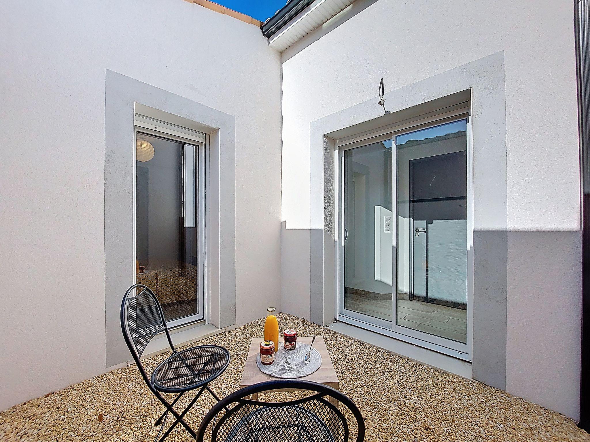 Saint Augustin 5 km from Saint Palais Sur Mer: Terraced house "Le Logis". In the residential district, 4.5 km from the sea, 4.5 km from the beach, south-west facing position. Parking. Shop 4.4 km, grocery 1.1 km, restaurant 600 m, bar 1.1 km, bakery 1.1 km, café 1 km, bus stop "Saint Augustin centre" 900 m, railway station "Gare - Royan" 9 km, sandy beach "La Grande Côte" 4.5 km. Sports harbour 10 km, golf course (9 hole) 3 km, surf school 10 km, riding stable 5 km. Nearby attractions: Zoo de La Palmyre 10 km, Hippodrome - La Palmyre 12 km, Embarcadère Royan - Le Verdon 8 km, Luna Park (Juillet - Août) 10 km, Golf de La Palmyre 6 km, Zagal Cabaret équestre 12 km. Please note: car recommended. The keys‘ handover takes place by the agency Interhome in La Palmyre, 10 km.