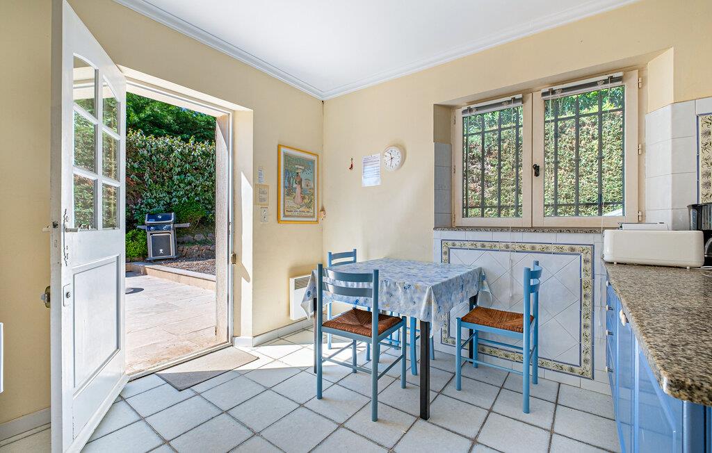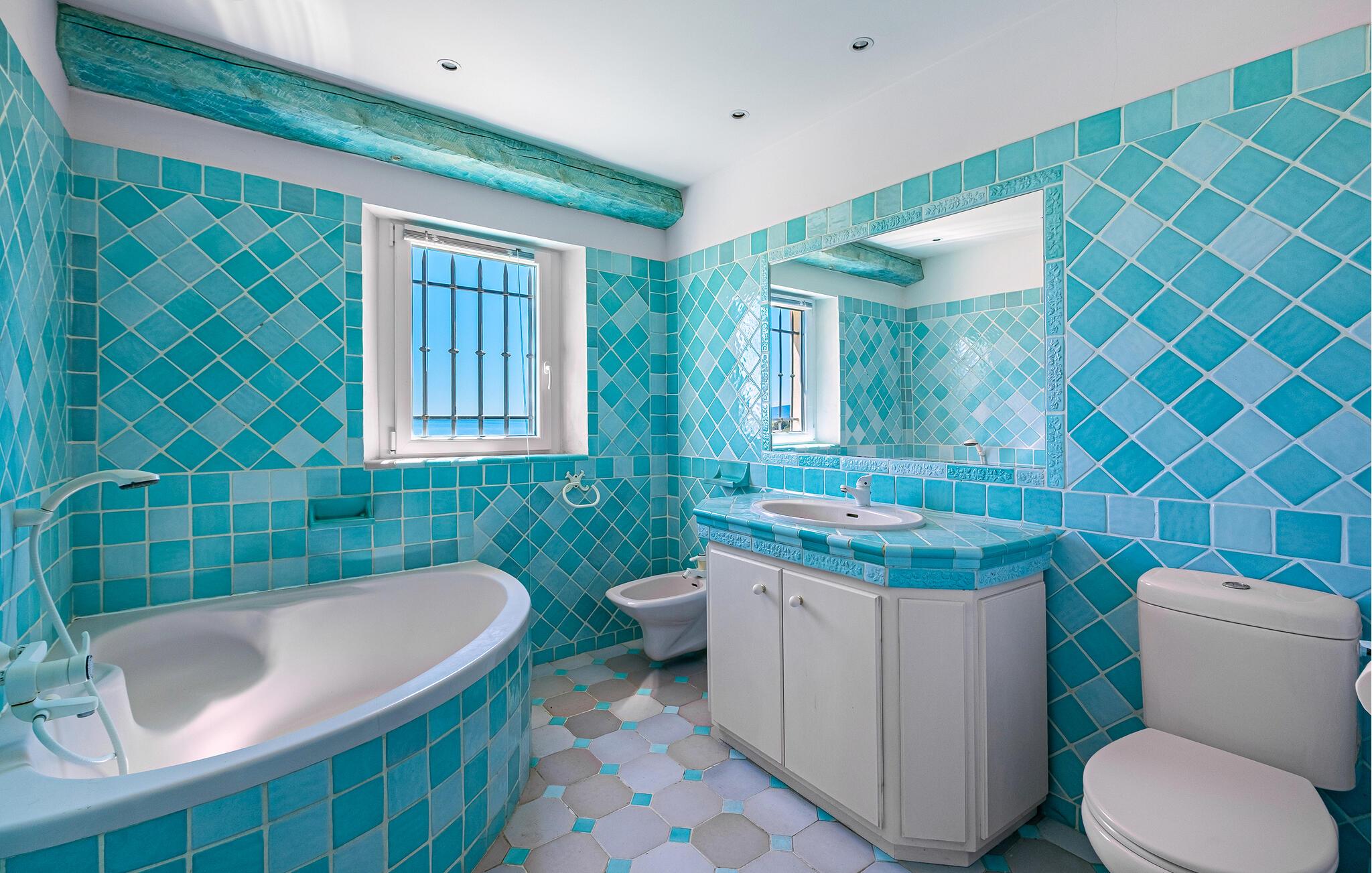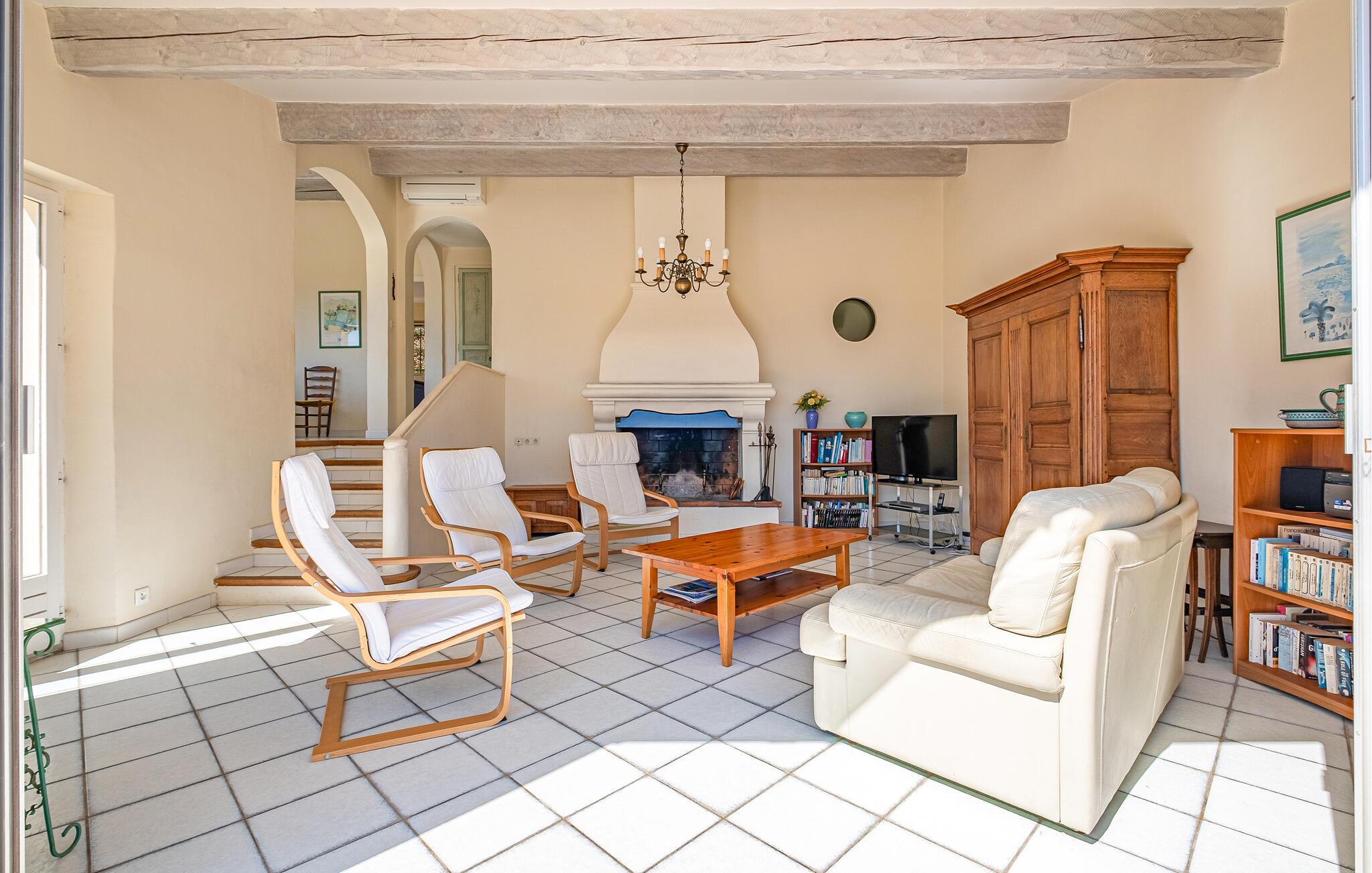 En lys atmosfære og en betagende udsigt over havet skaber en frisk middelhavsatmosfære i dette komfortable feriehus. Tilbered lækre måltider i det åbne køkken, og lad den behagelige brise strømme gennem værelserne, mens I nyder måltiderne ved panoramavinduet. Kig rundt i husets bibliotek efter en god bog, eller brug tiden sammen til at snakke over et glas vin.