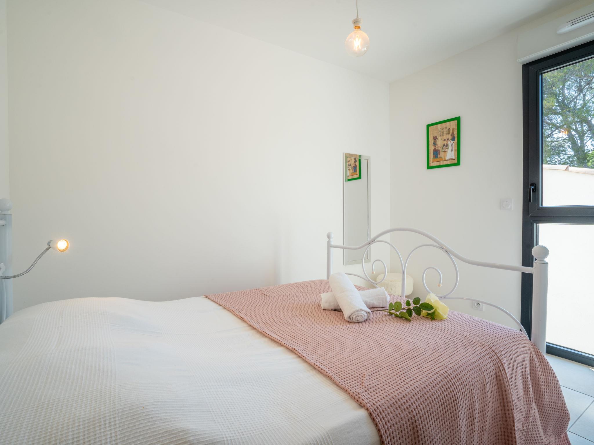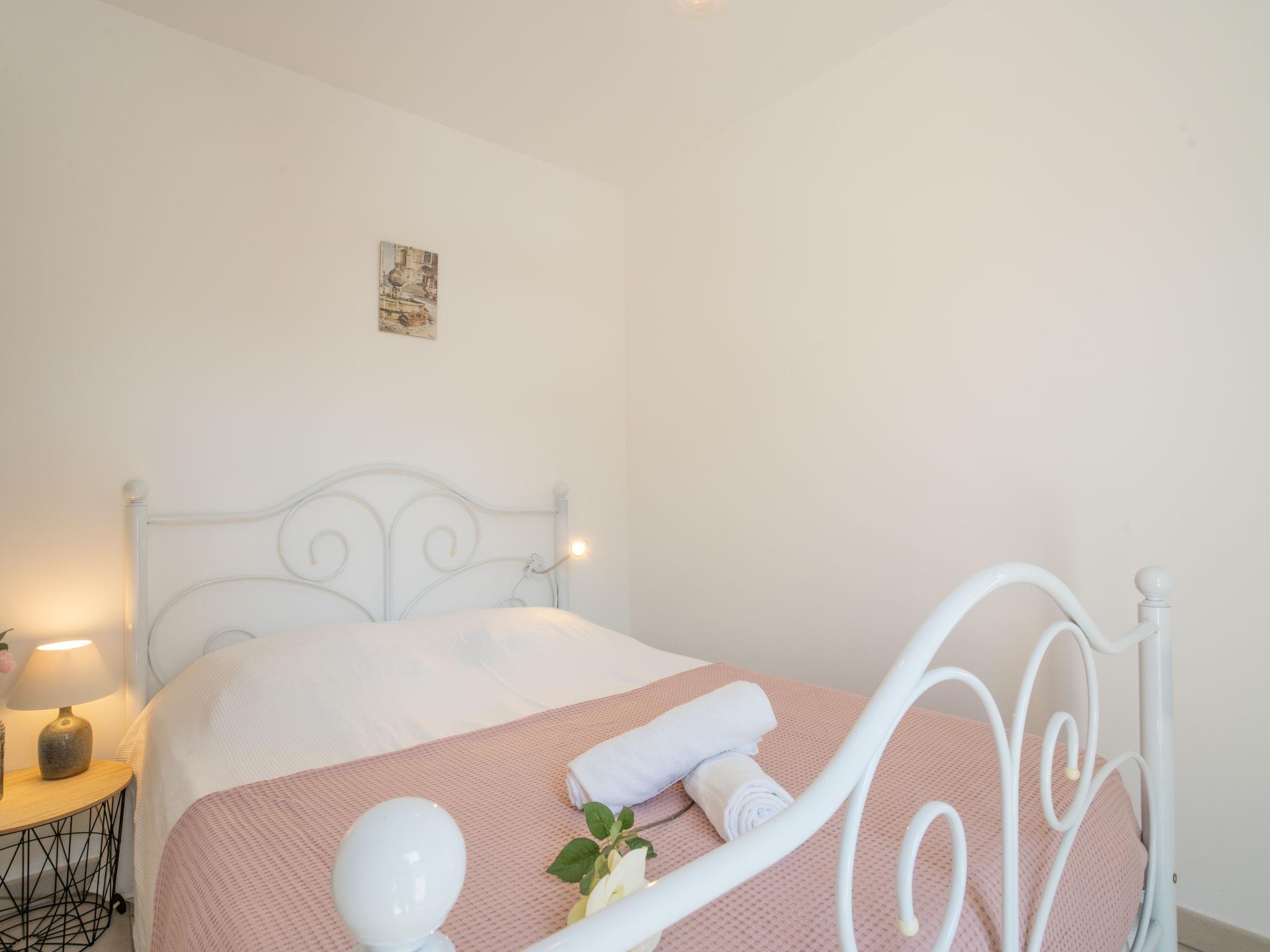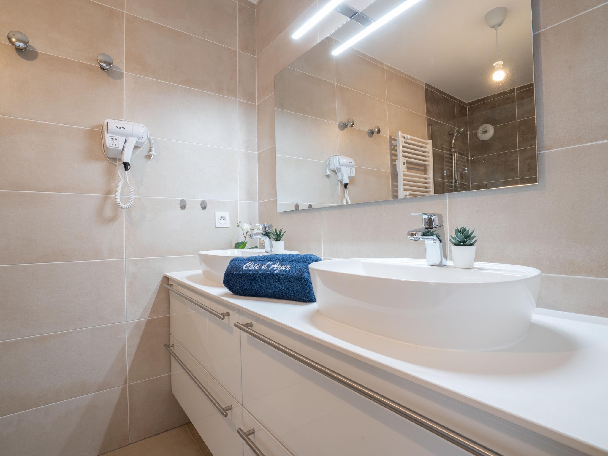 3-room apartment 61 m2 on 1st floor. Comfortable and modern furnishings: living/dining room with TV (flat screen), air conditioning and electric shutters. Exit to the terrace. 1 room with 1 french bed (1 x 160 cm, length 200 cm), TV (flat screen), air conditioning and electric shutters. 1 room with 1 french bed (1 x 140 cm, length 190 cm), air conditioning and electric shutters. Open kitchen (oven, dishwasher, 3 induction hot plates, toaster, kettle, microwave, freezer, electric coffee machine, Capsules for coffee machine (Senseo) extra). Shower, sep. WC, double hand-basin. Heating. Terrace 12 m2. Terrace furniture, deck chairs (2). Side view of the sea. Facilities: washing machine, iron, hair dryer. Internet (WiFi, free). Garage space n 15 (1 car), height 210 cm, width 218 cm. Please note: smoke alarm. 1CYX6X