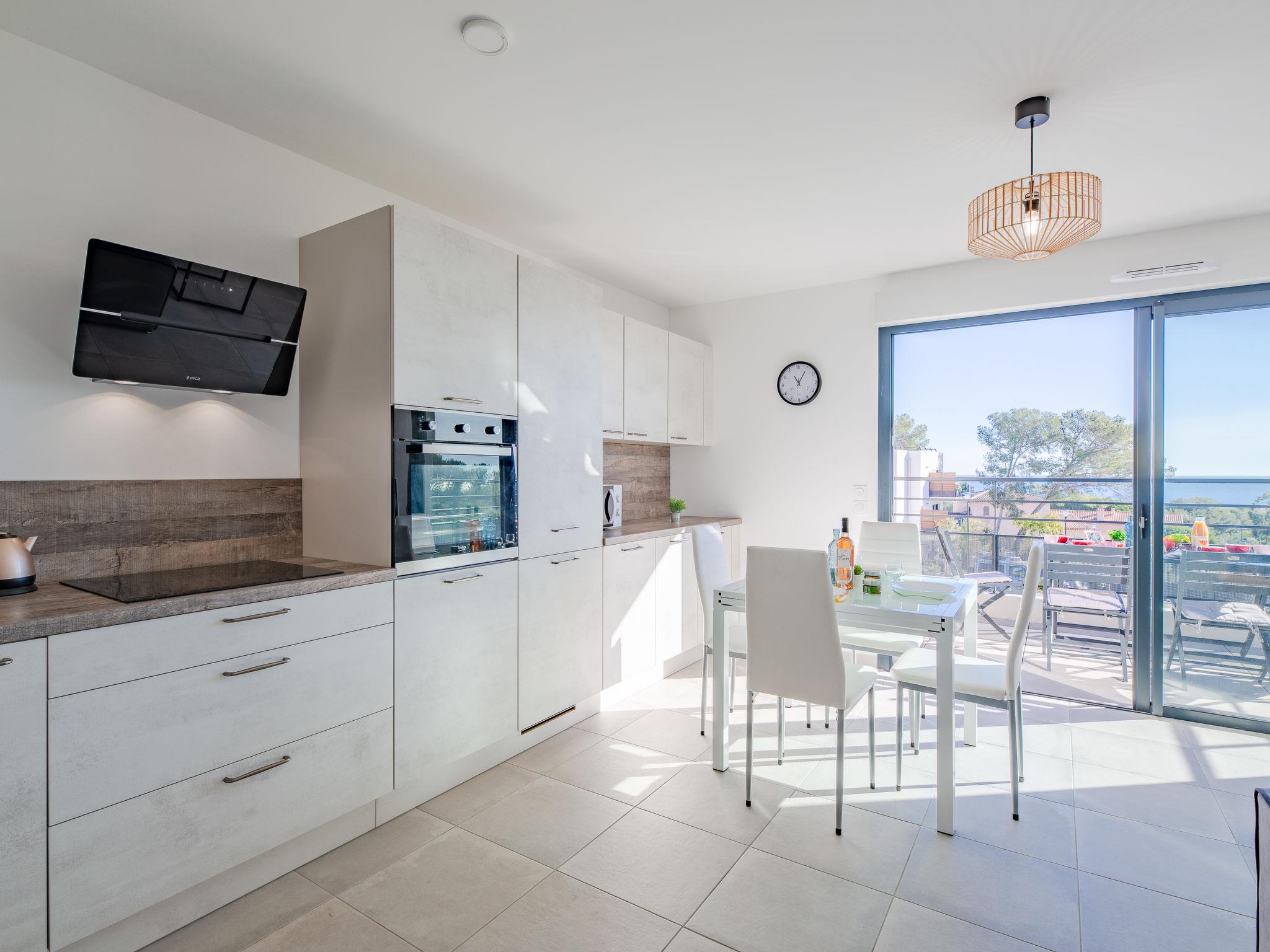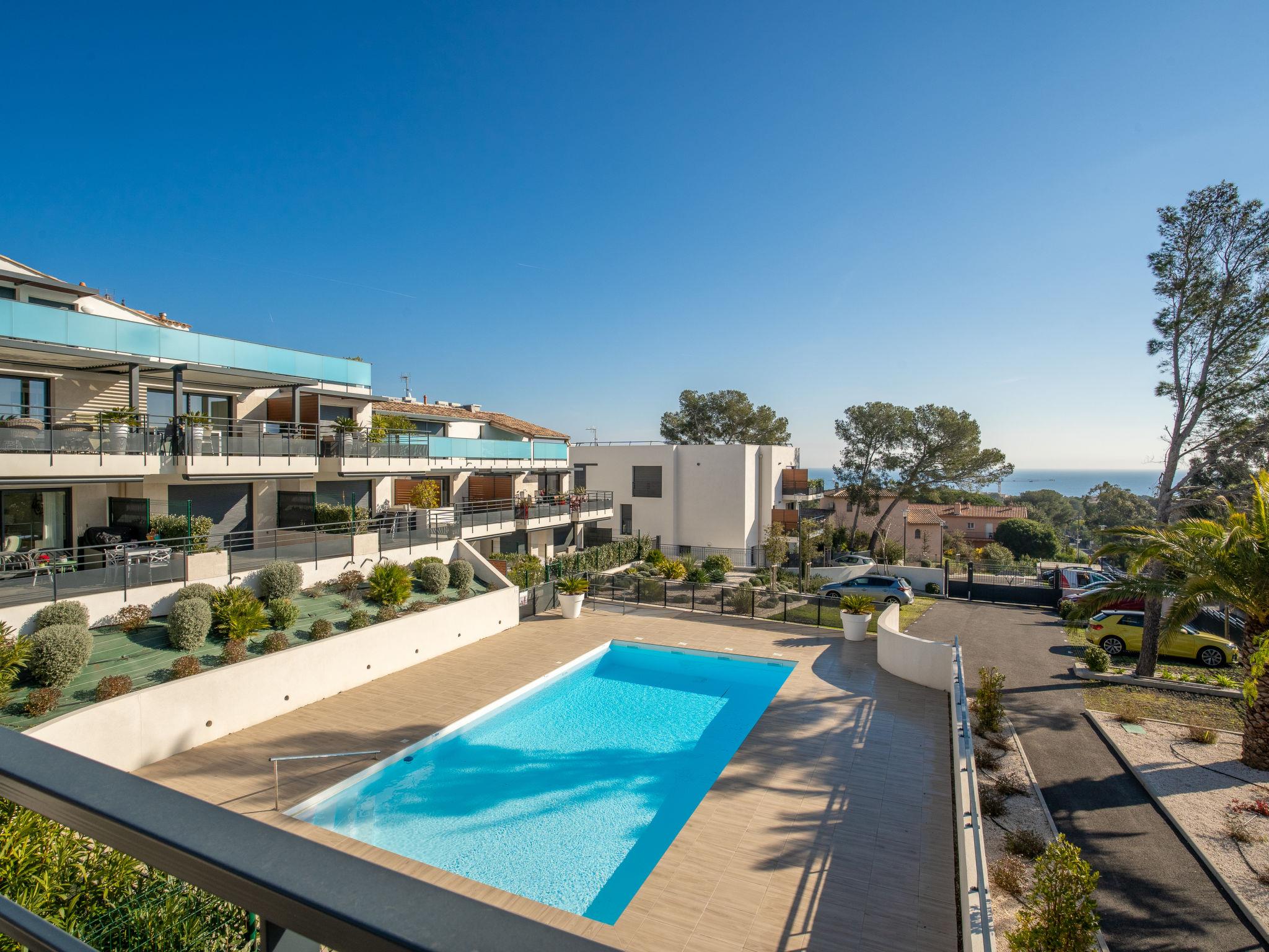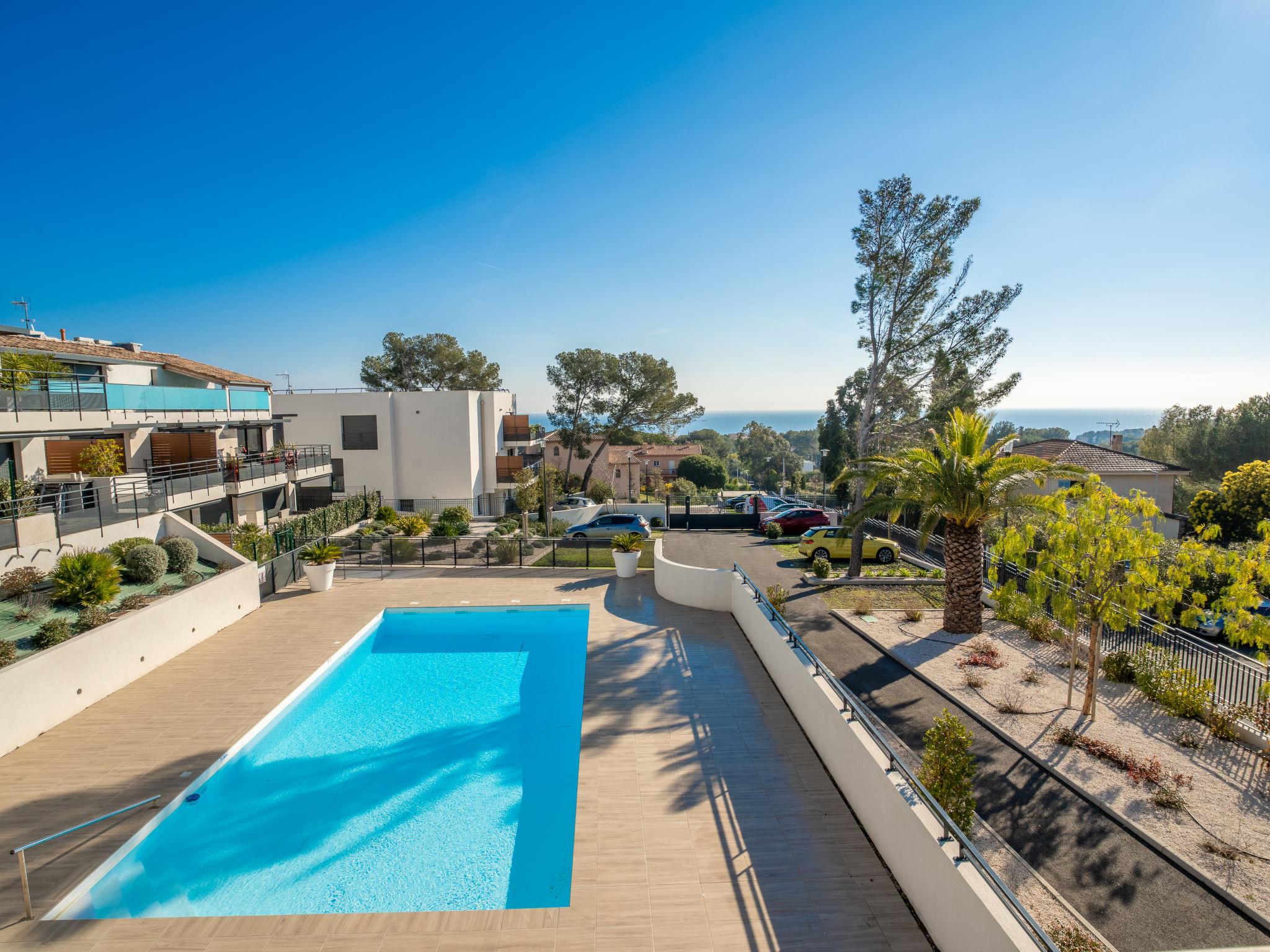 2-room apartment 42 m2 on 1st floor. Comfortable and cosy furnishings: living/dining room 20 m2 with panoramic window with 1 double sofabed (1 x 140 cm, length 190 cm), TV (flat screen), air conditioning. Exit to the terrace. 1 room 12 m2 with Dressing room with 1 french bed (1 x 140 cm, length 190 cm), air conditioning. Open kitchen (oven, dishwasher, 3 induction hot plates, toaster, kettle, microwave, freezer, electric coffee machine). Exit to the terrace. Shower/WC. Air-conditioning. Terrace 8 m2 partly roofed, south-east facing position. Terrace furniture. View of the sea and the swimming pool. Facilities: washing machine, iron, hair dryer. Internet (WiFi, free). Parking space n E12. Please note: smoke alarm, no lift. Offer by a private individual according to Art. 155, IV of CGI. FJS17022445342ERAP