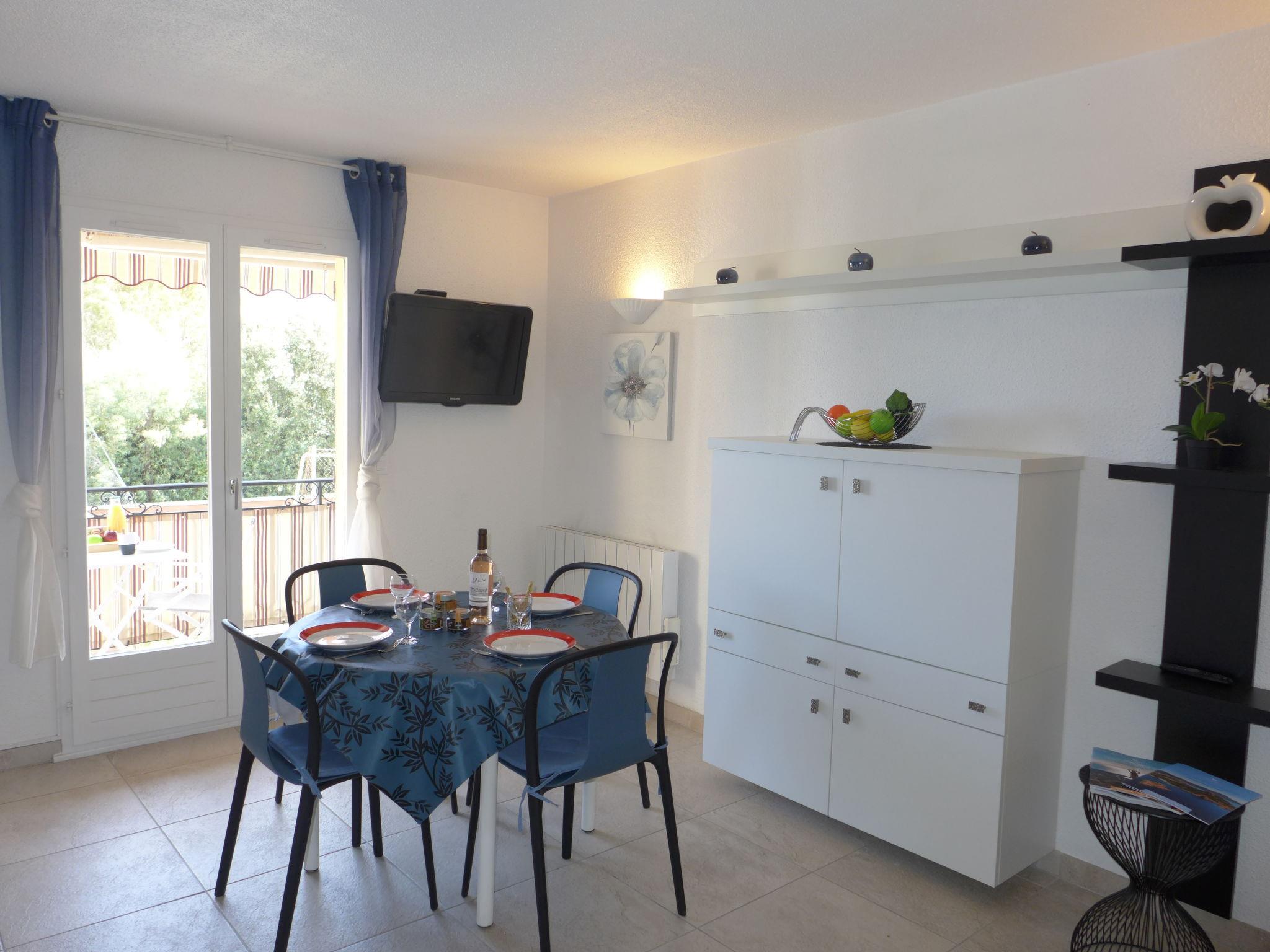 2-room apartment 30 m2 on 2nd floor, east facing position. Beautiful and modern furnishings: living/dining room with TV (flat screen). Exit to the balcony. 1 room with 1 french bed (1 x 140 cm, length 190 cm), air conditioning. Kitchenette (oven, dishwasher, 2 induction hot plates, toaster, kettle, microwave, freezer, electric coffee machine, Capsules for coffee machine (Nespresso) extra). Shower/WC. Heating. Balcony 7 m2. Terrace furniture. Partial view of the sea. Facilities: washing machine, iron, hair dryer. Internet (WiFi, free). Please note: non-smokers only. TV only FR. Smoke alarm. 739