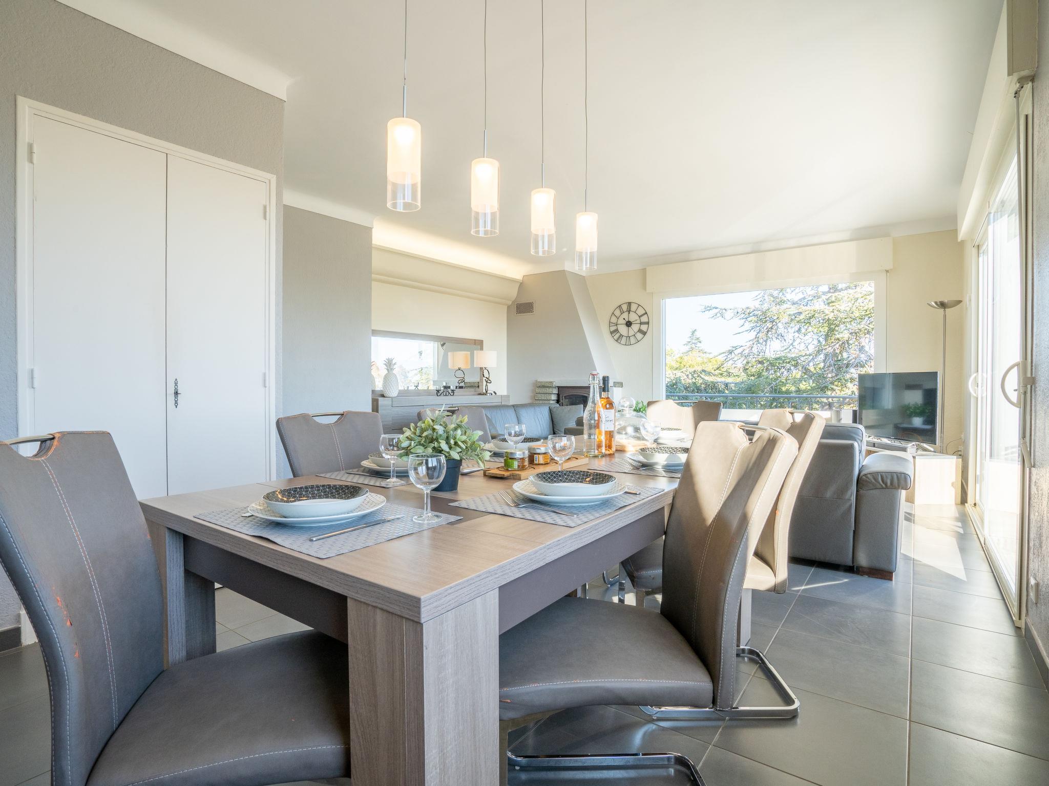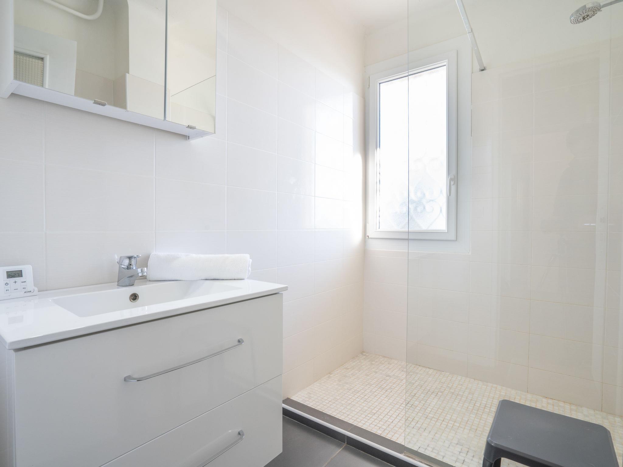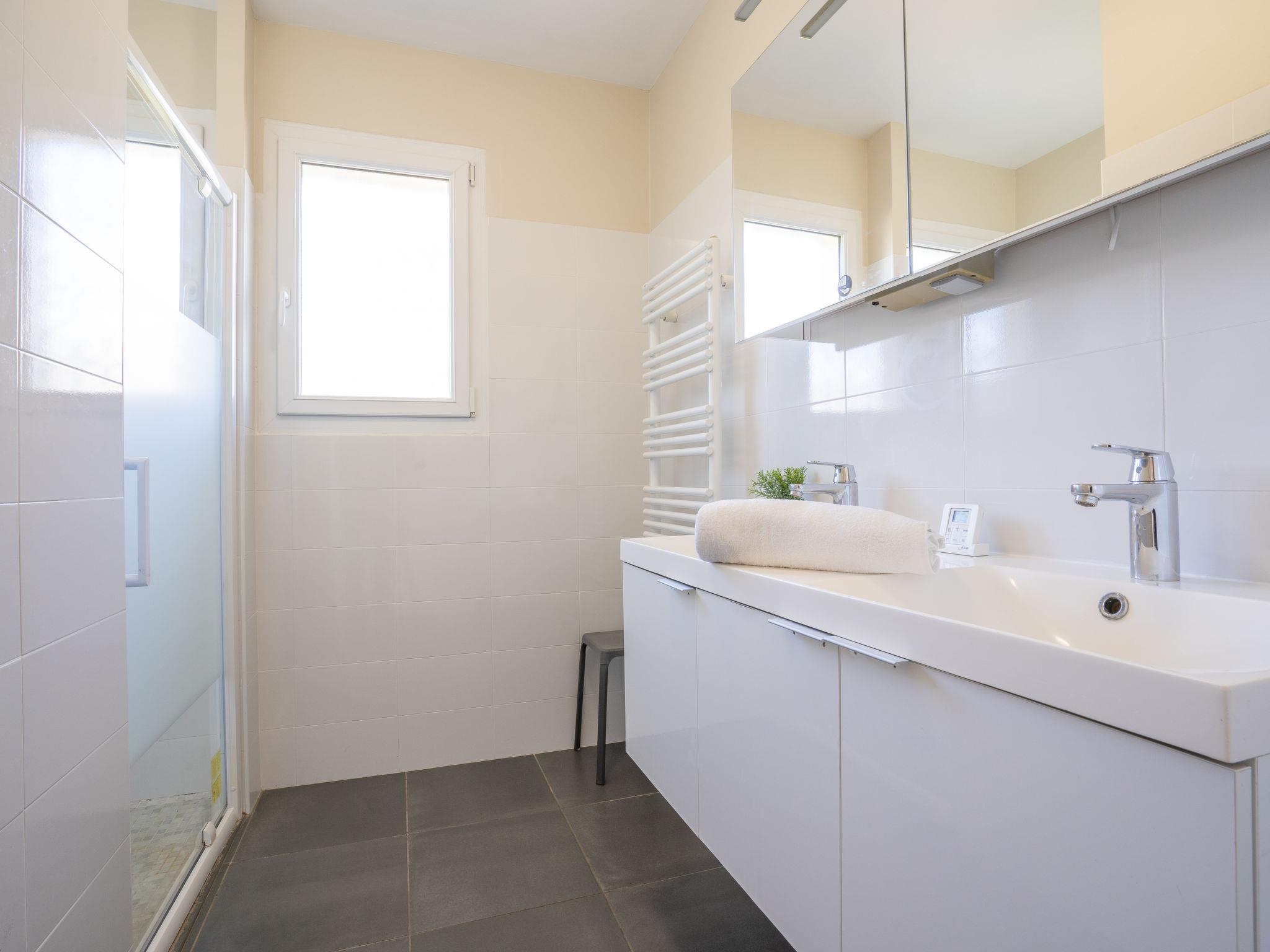 6-room house 175 m2 on 2 levels, south facing position. Fully renovated in 2016, comfortable and modern furnishings: large living/dining room with panoramic window with 1 folding bed (90 cm, length 190 cm), dining nook, TV, flat screen and fan. Exit to the balcony. 2 rooms, each room with 1 french bed (1 x 160 cm, length 200 cm), fan. Kitchen (oven, dishwasher, 4 ceramic glass hob hotplates, toaster, microwave, freezer, electric coffee machine, Capsules for coffee machine (Senseo) extra). Exit to the terrace. Shower, sep. WC, double hand-basin. Heating. On the lower ground floor: living/dining room with 1 folding bed (90 cm, length 190 cm), TV, flat screen and fan. Exit to the garden, to the terrace. 2 rooms, each room with 1 french bed (1 x 160 cm, length 200 cm), fan. Open kitchen (oven, dishwasher, 4 induction hot plates, toaster, kettle, microwave, freezer, electric coffee machine) with dining nook. Shower, sep. WC, double hand-basin. Heating. Balcony, terrace 8 m2, terrace 6 m2. Terrace furniture, barbecue, deck chairs (10). View of the sea. Facilities: washing machine, dryer, iron, mosquito net. Internet (WiFi, free). Parking (4 cars). Please note: maximum 1 small pet/ dog allowed. TV only FR. Smoke alarm. No internal connecting door between the floors. FJS1078HT