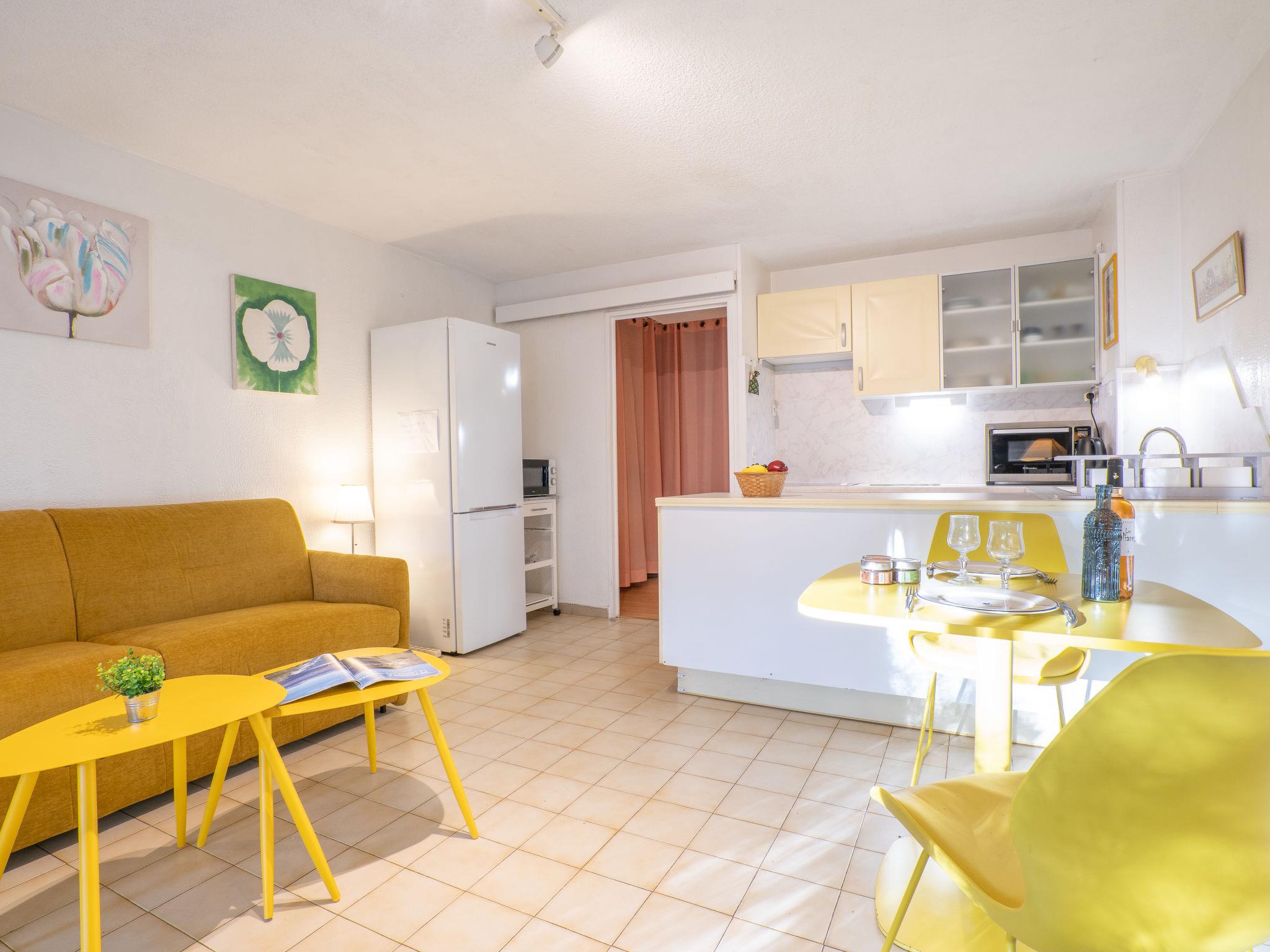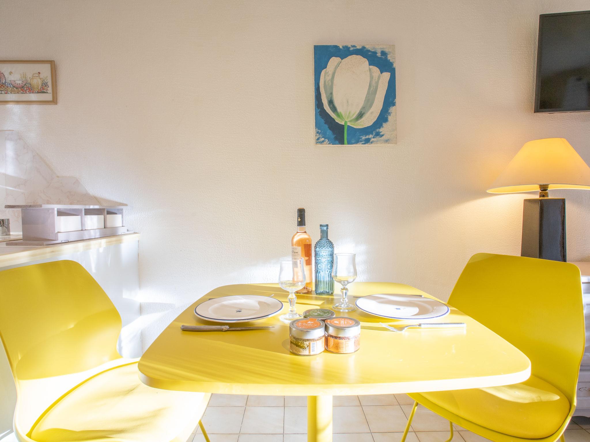 1-room studio 30 m2, on the ground floor, south facing position. Object suitable for 2 adults. Comfortable and beautiful furnishings: living/dining room with panoramic window Dressing room with 1 double sofabed (1 x 160 cm, length 200 cm), TV (flat screen), air conditioning. Exit to the garden, to the terrace. Kitchenette (oven, dishwasher, 4 ceramic glass hob hotplates, toaster, kettle, microwave, freezer, electric coffee machine). Shower/WC. Heating. Terrace 10 m2, patio 40 m2. Terrace furniture, deck chairs (2). Facilities: washing machine, iron, hair dryer. Internet (WiFi, free). Parking space n 102 (fenced 1 car). Please note: smoke alarm. FJS877HT