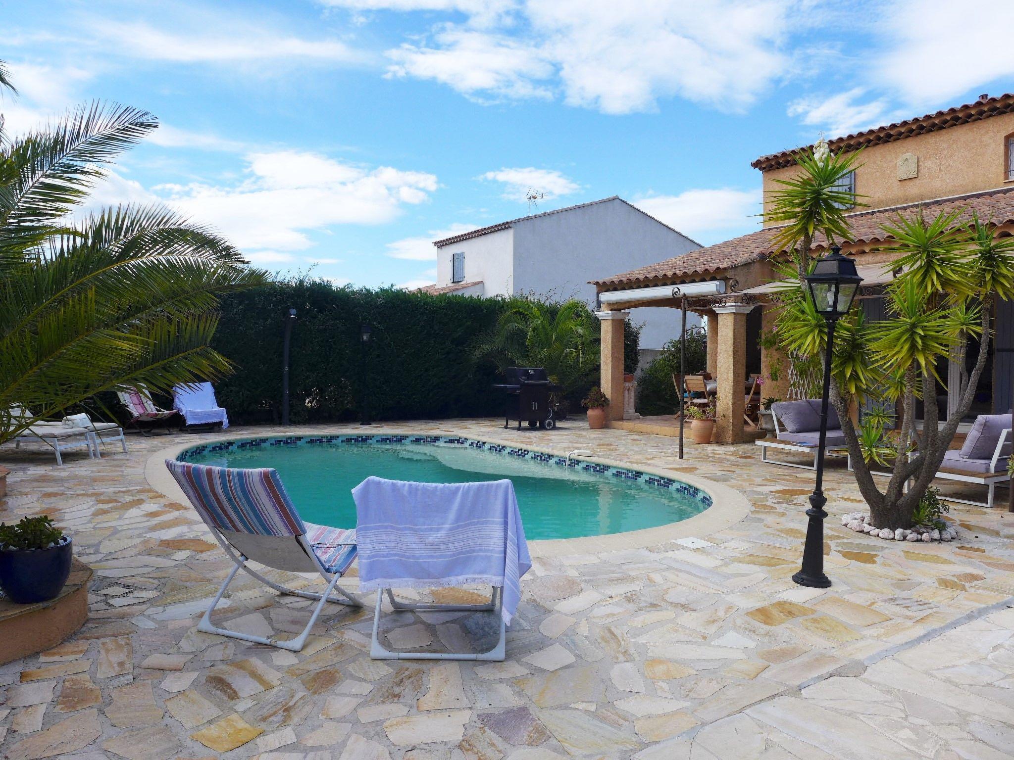 Villa "Les Galandos", built in 2000. In the resort 600 m from the centre of Saint Aygulf, in the residential district, excellent location: right in the centre but still quiet, 550 m from the sea, 550 m from the beach. Private: natural garden 640 m2 (fenced), swimming pool (5 x 9 m, depth 100 - 200 cm, seasonal availability: 01.Apr. - 31.Oct.) with alarm system and salt-electrolysis pool-cleaning system. Outdoor shower. In the house: burglar alarm system, washing machine, drying room. Shop 550 m, shopping centre 5.5 km, 5 minute walk to the centre, bus stop "Grand Parc" 400 m, railway station "Fréjus" 7 km, sandy beach "La Galiote" 550 m pebble beach "Calanque des Romains" 800 m, park "Areca" 600 m, diving center 1 km, thermal baths "Thalasso de Port Fréjus" 7 km. Sports harbour 900 m, golf course (18 hole) 6 km, sailing school 8 km, riding stable 1 km, sports centre 600 m. Nearby attractions: Aqualand, Luna Park 5 km, Fréjus 6 km, Saint Raphaël 7 km, Ste tropez 30 km, Cannes 47 km, Nice 71 km. Well-known ski regions can easily be reached: Auron, Isola 2000 150 km. Well-known lakes can easily be reached: Lac de St Cassien 45 km, Lac du Du Verdon 90 km. Hiking paths: Estérel 16 km, Sentier du Littoral 1 km. The owner does not accept any youth groups. The keys‘ handover takes place by the agency Interhome in Saint Aygulf.