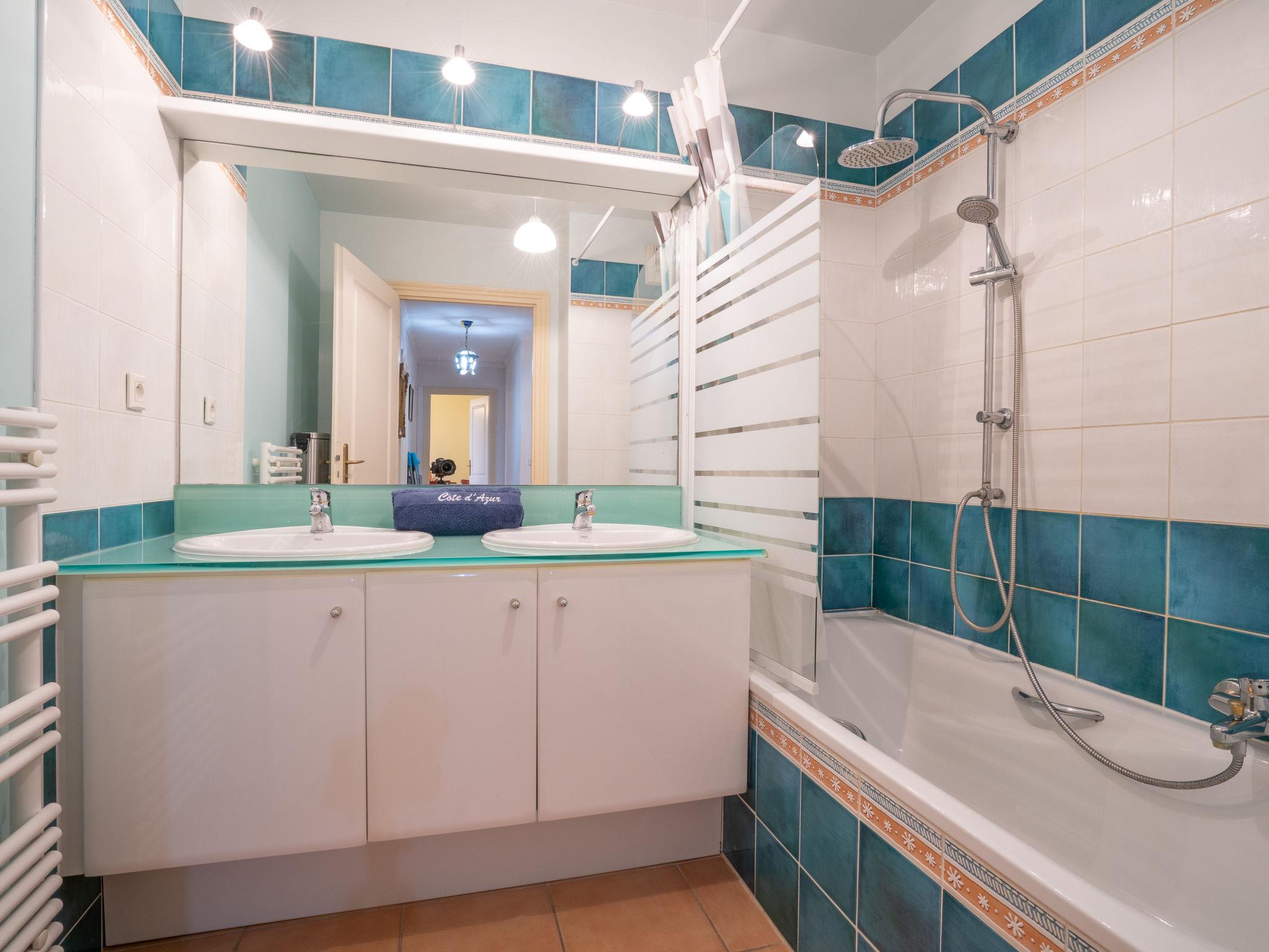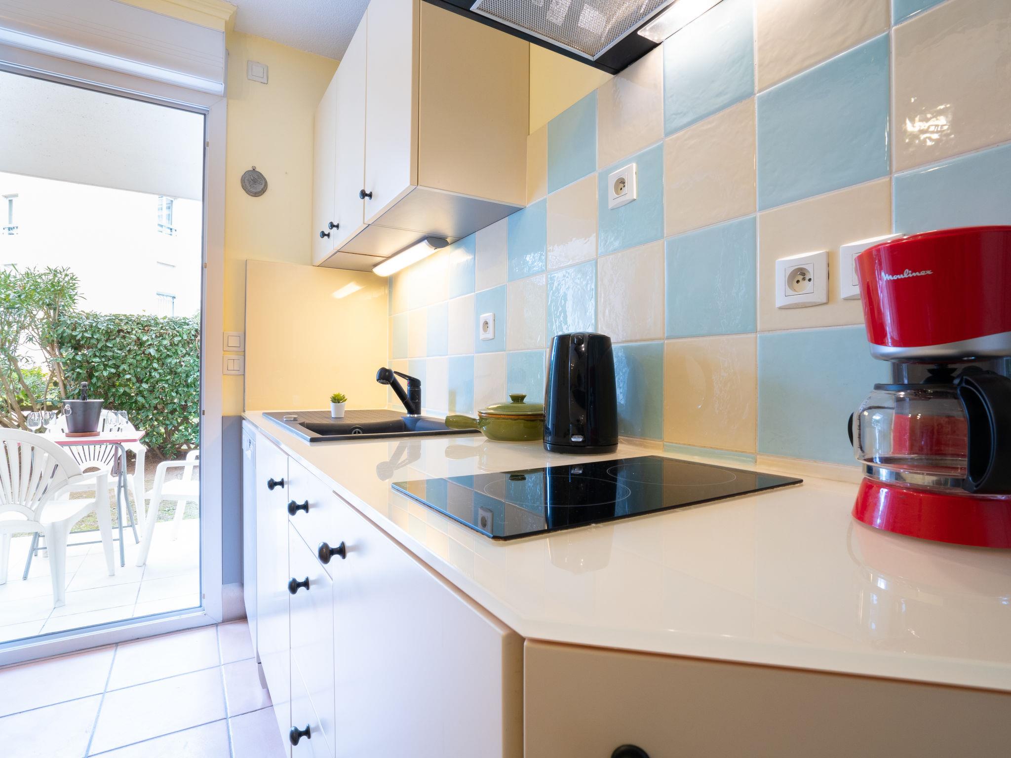 3-room apartment 80 m2, south facing position. Comfortable and beautiful furnishings: living/dining room 25 m2 with panoramic window with TV (flat screen), DVD. Exit to the terrace, to the patio. 1 room with 1 french bed (1 x 160 cm, length 200 cm), TV and fan. 1 room with 2 beds (90 cm, length 190 cm), fan. Exit to the terrace, to the patio. Kitchen (mini-oven, oven, dishwasher, 2 induction hot plates, toaster, kettle, microwave, freezer, electric coffee machine) with dining table. Exit to the terrace, to the patio. Bathroom, sep. WC. Heating. Terrace 9 m2, roofed terrace 11 m2, roofed, patio 23 m2, patio 23 m2. Terrace furniture, deck chairs (2). View of the garden. Facilities: washing machine, iron, hair dryer. Internet (WiFi, free). Garage space n 76 (1 car). Please note: suitable for families. Maximum 1 small pet/ dog allowed. TV only FR. Smoke alarm. Apartment on the ground floor but access by lift (1 floor). FJS1224HT