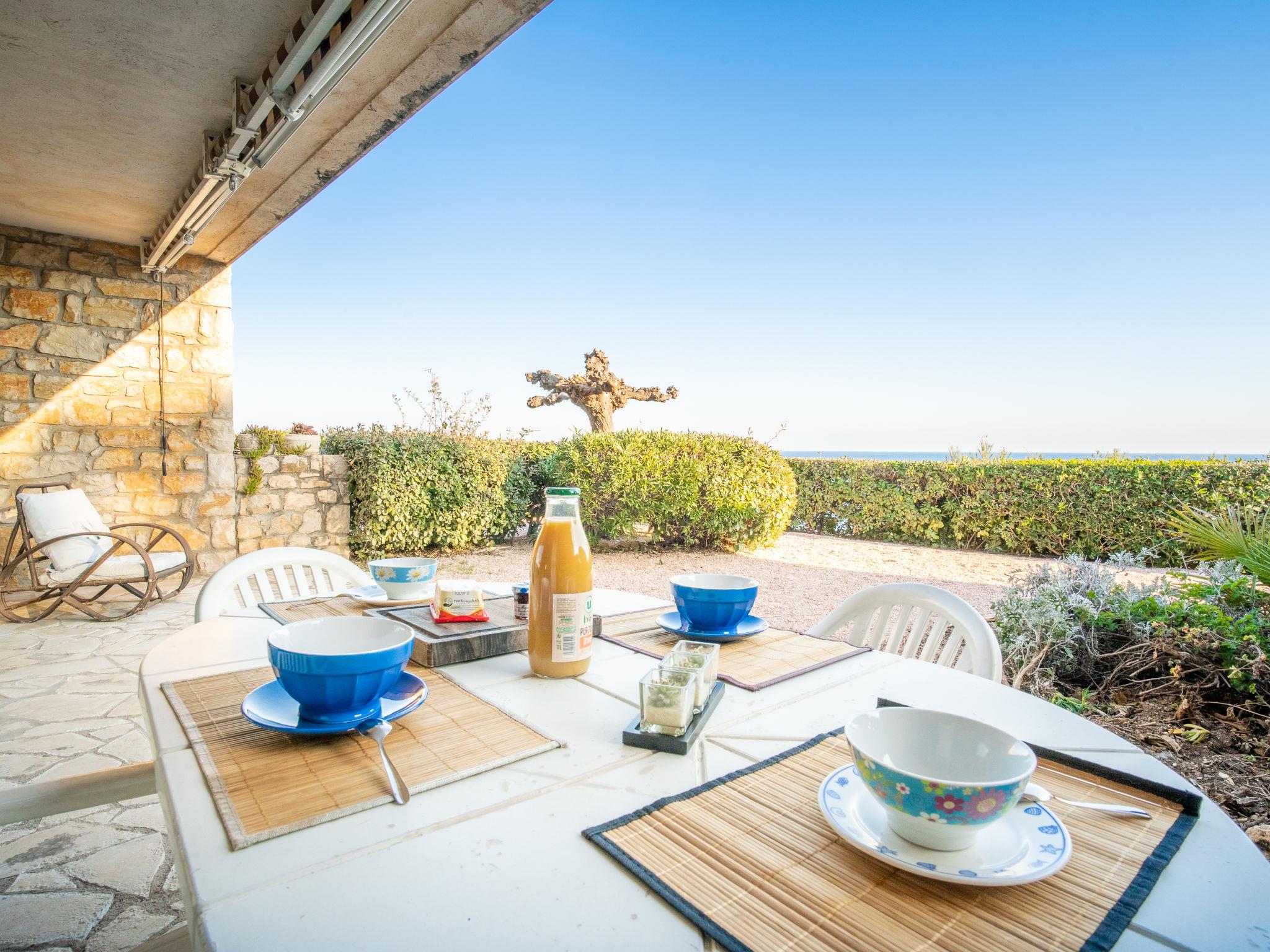3-room apartment 50 m2, on the ground floor. Comfortable and beautiful furnishings: living/dining room with panoramic window with TV and fan. Exit to the terrace. 1 room with panoramic window with 2 beds (90 cm, length 190 cm), fan. Exit to the terrace. 1 small room with 1 x 2 bunk beds (80 cm, length 190 cm). Kitchen (oven, dishwasher, 4 induction hot plates, kettle, microwave, freezer, electric coffee machine). Exit to the terrace. Bathroom, sep. WC. Heating. Large terrace 20 m2, south facing position and west facing position, patio 150 m2. Terrace furniture. View of the sea. Facilities: washing machine, iron, hair dryer. Internet (WiFi, free). Parking space n 19. Please note: TV only FR. Smoke alarm. FJS1276HT