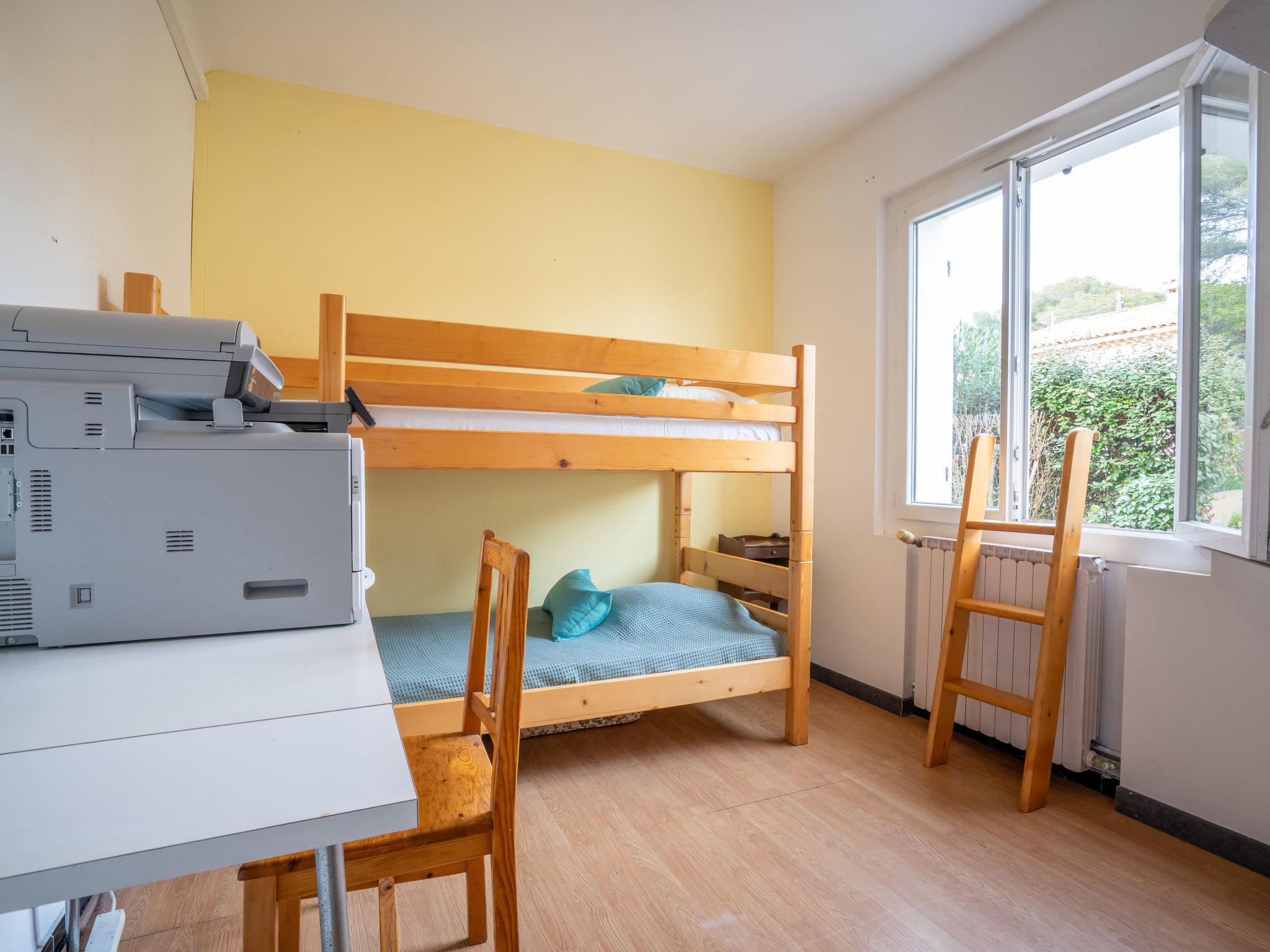 3-room apartment 65 m2, on the ground floor. Simple furnishings: living/dining room with TV (flat screen). Exit to the terrace, to the patio. 1 children's room with 1 x 2 bunk beds (90 cm, length 200 cm). Exit to the terrace, to the patio. 1 room with 1 double bed (2 x 90 cm, length 190 cm). Exit to the terrace. Kitchen (mini-oven, 4 gas rings, toaster, kettle, microwave, electric coffee machine). Exit to the terrace. Bathroom, sep. WC, double hand-basin. Gas heating. Terrace 10 m2, patio 30 m2. Terrace furniture. Facilities: washing machine, hair dryer. Internet (WiFi, free). Parking (1 car). Please note: suitable for families. TV only FR. Smoke alarm. Offer by a private individual according to Art. 155, IV of CGI. ZEENV2