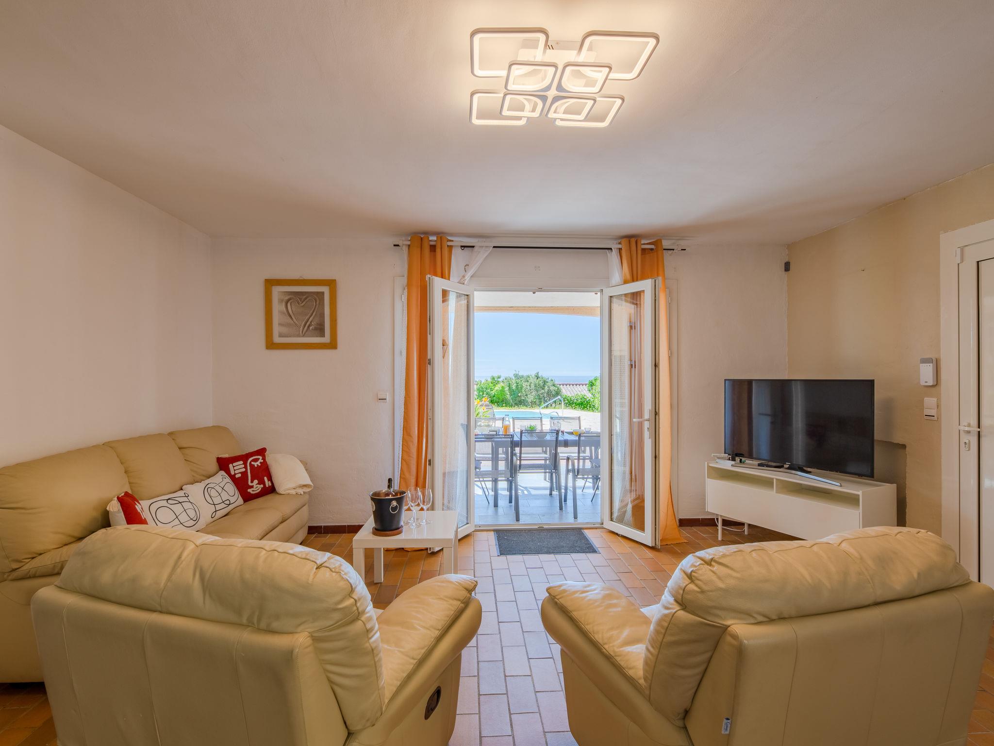 5-room apartment 115 m2, on the ground floor, south facing position. Spacious and bright, beautiful furnishings: living/dining room with TV (flat screen). Exit to the terrace, to the swimming pool. 4 rooms with Dressing room, each room with 1 french bed (1 x 140 cm, length 200 cm). Large, open kitchen (oven, dishwasher, 4 induction hot plates, toaster, kettle, microwave, freezer, electric coffee machine, Capsules for coffee machine (Senseo) extra). Shower/WC, hip bath/WC. Heating, air-conditioning. Large terrace 32 m2, roofed, south facing position. Terrace furniture, deck chairs (8). Beautiful view of the sea and the swimming pool. Facilities: washing machine, iron, hair dryer. Internet (WiFi, extra). Parking (fenced 1 car). Please note: non-smokers only. Maximum 1 pet/ dog allowed. TV only FR. Smoke alarm. No internal connecting door between the floors. Offer by a private individual according to Art. 155, IV of CGI. DMKU5Z