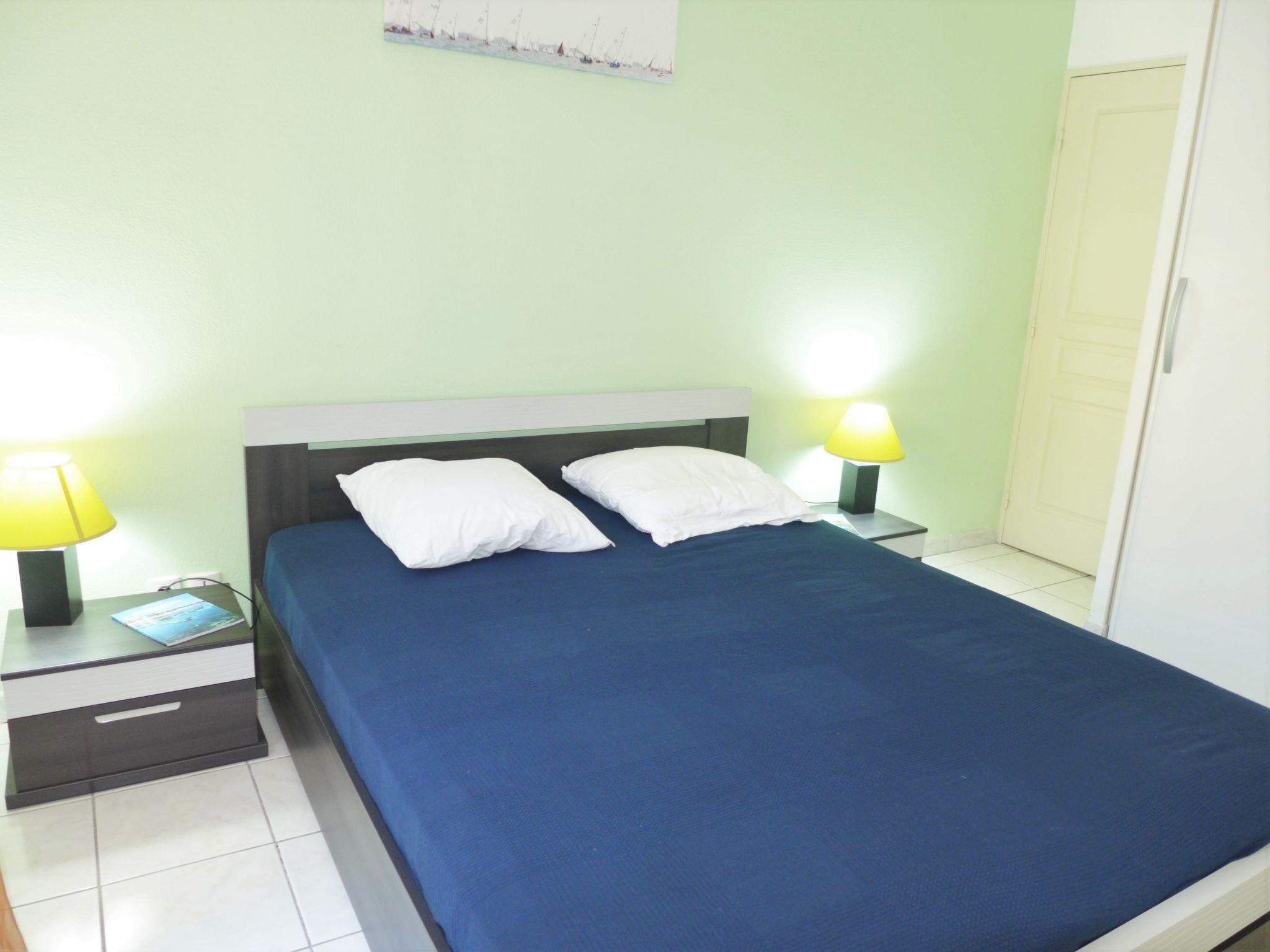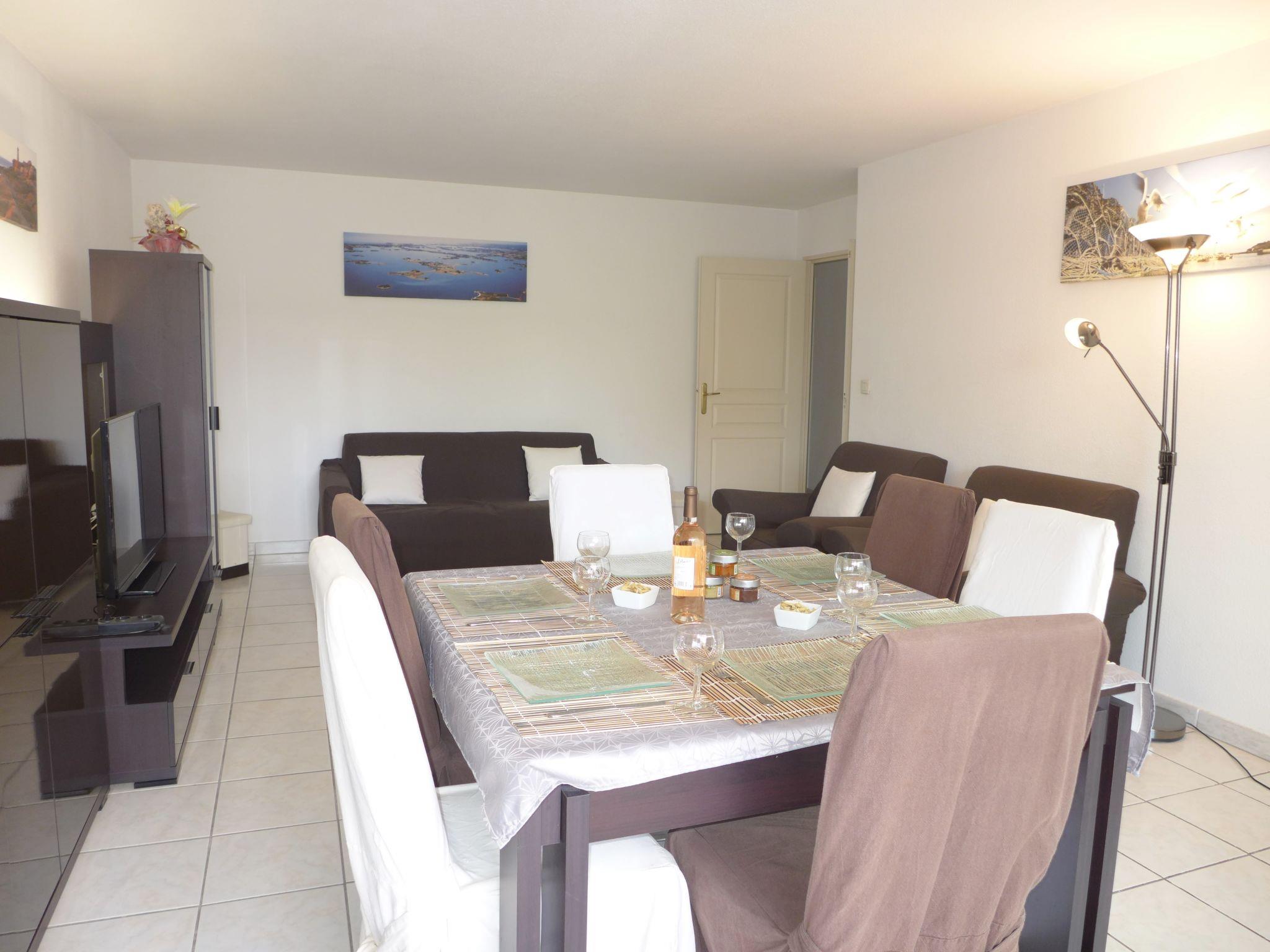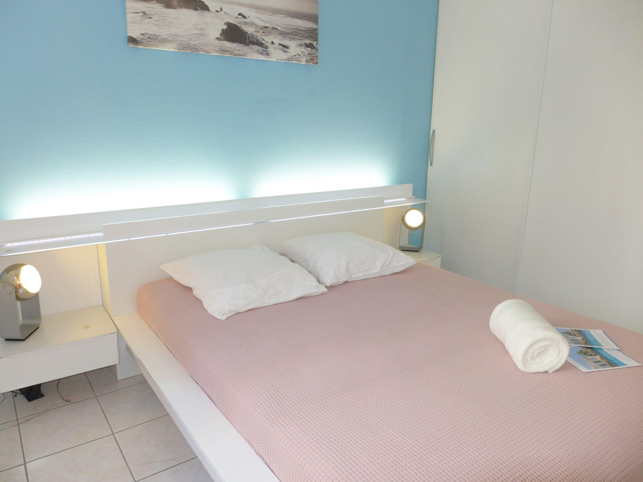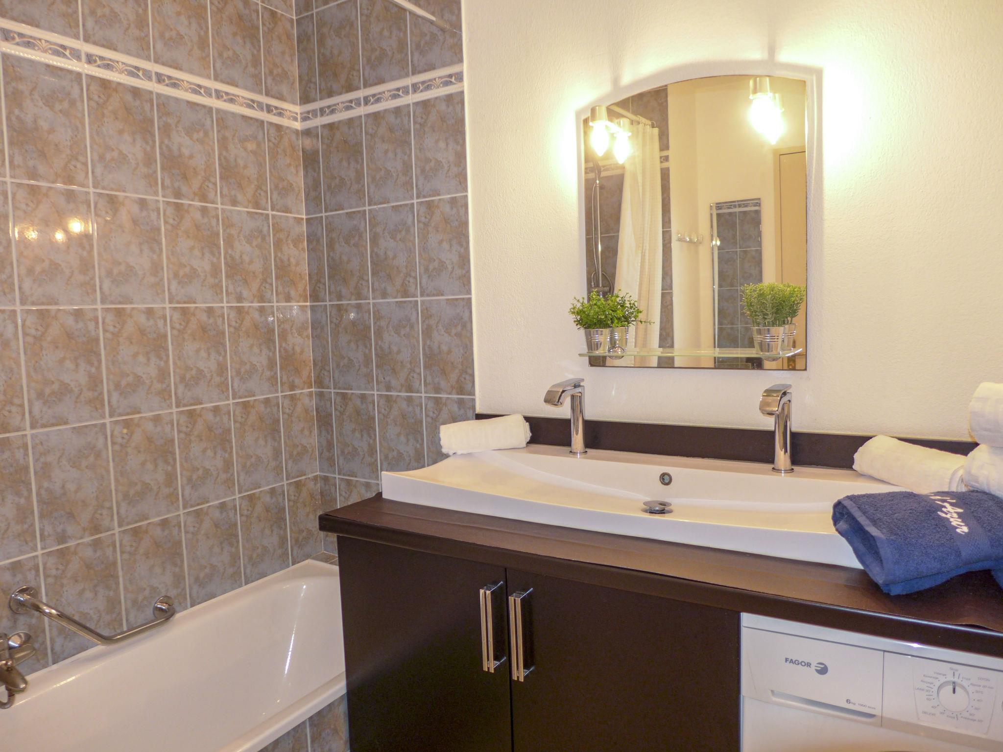 3-room apartment 72 m2, on the upper ground floor. Comfortable and modern furnishings: living/dining room with panoramic window with 1 double sofabed (1 x 140 cm, length 190 cm), TV, flat screen and air conditioning. Exit to the terrace. 2 rooms, each room with 1 french bed (1 x 160 cm, length 200 cm). Kitchen (3 hot plates, oven, dishwasher, toaster, kettle, microwave, freezer, electric coffee machine). Bathroom, sep. WC. Electric heating. Terrace 20 m2. Terrace furniture, deck chairs (2). Facilities: washing machine, iron. Internet (WiFi, extra). Garage space n 41, height 200 cm. Please note: suitable for families apartment street side. TV only FR. Smoke alarm. FJS1061HT