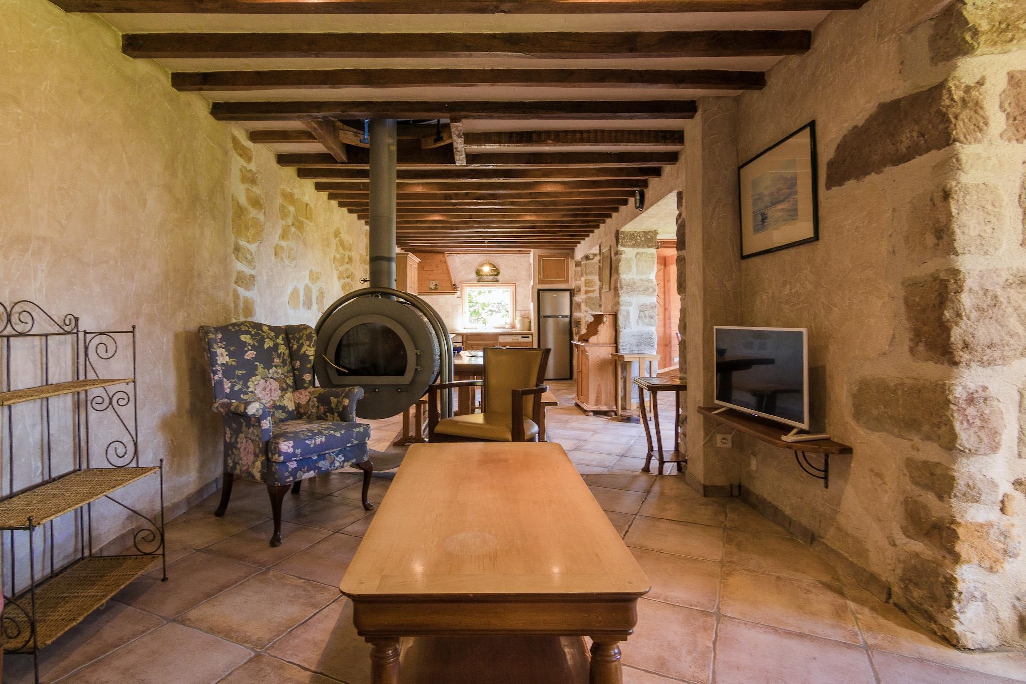 Du vil finde dette kompleks for 7 personer i en stille gård hamlet oven på en bakke. Det er en renoveret bondegård for fem personer og et fritliggende fuldt udstyret pensionat for to personer. Dette kompleks er ideel til en lille familie, som for eksempel vil på ferie med bedsteforældre eller tre uden børn. Du har en stor have og en swimmingpool til din rådighed, og du kan nyde en storslået udsigt over dalen. Det store hus har masser af plads nedenunder med to siddepladser, et stort åbent køkken og en smuk terrasse, der kan nås fra stuen. På første sal har du to rummelige soveværelser og på den store landing er der en stor antik seng til en anden femte person. Gæstehuset har plads til to personer, og de har også deres egen stue, køkken, badeværelse og rummeligt soveværelse på første sal. I grønne og bakketliggende omgivelser kan du gå og nyde gode restauranter, loppemarkeder, markeder for landbrugere osv. I Objat, kun 7 km væk, finder du butikker, restauranter, en tennisbane, en offentlig swimmingpool og andre vigtige faciliteter. Det store, livlige marked på søndag morgen anbefales stærkt. Også overveje at besøge de fornyede Lascaux grotter 42 km væk, eller en eventyrlig kanotur fra Montignac 40 km væk.