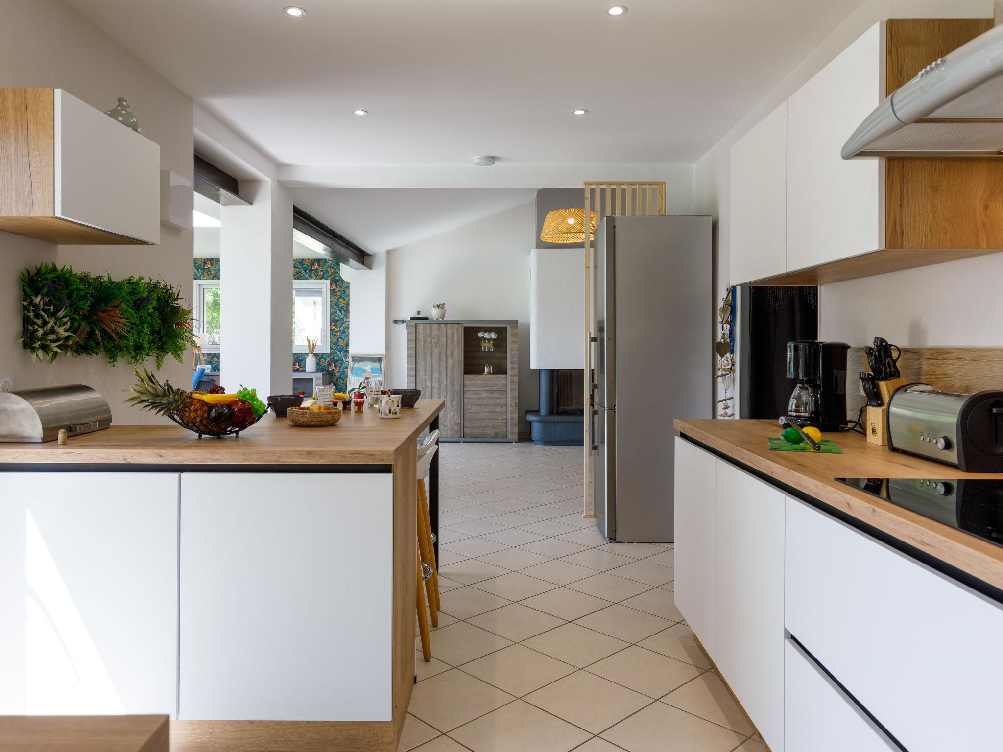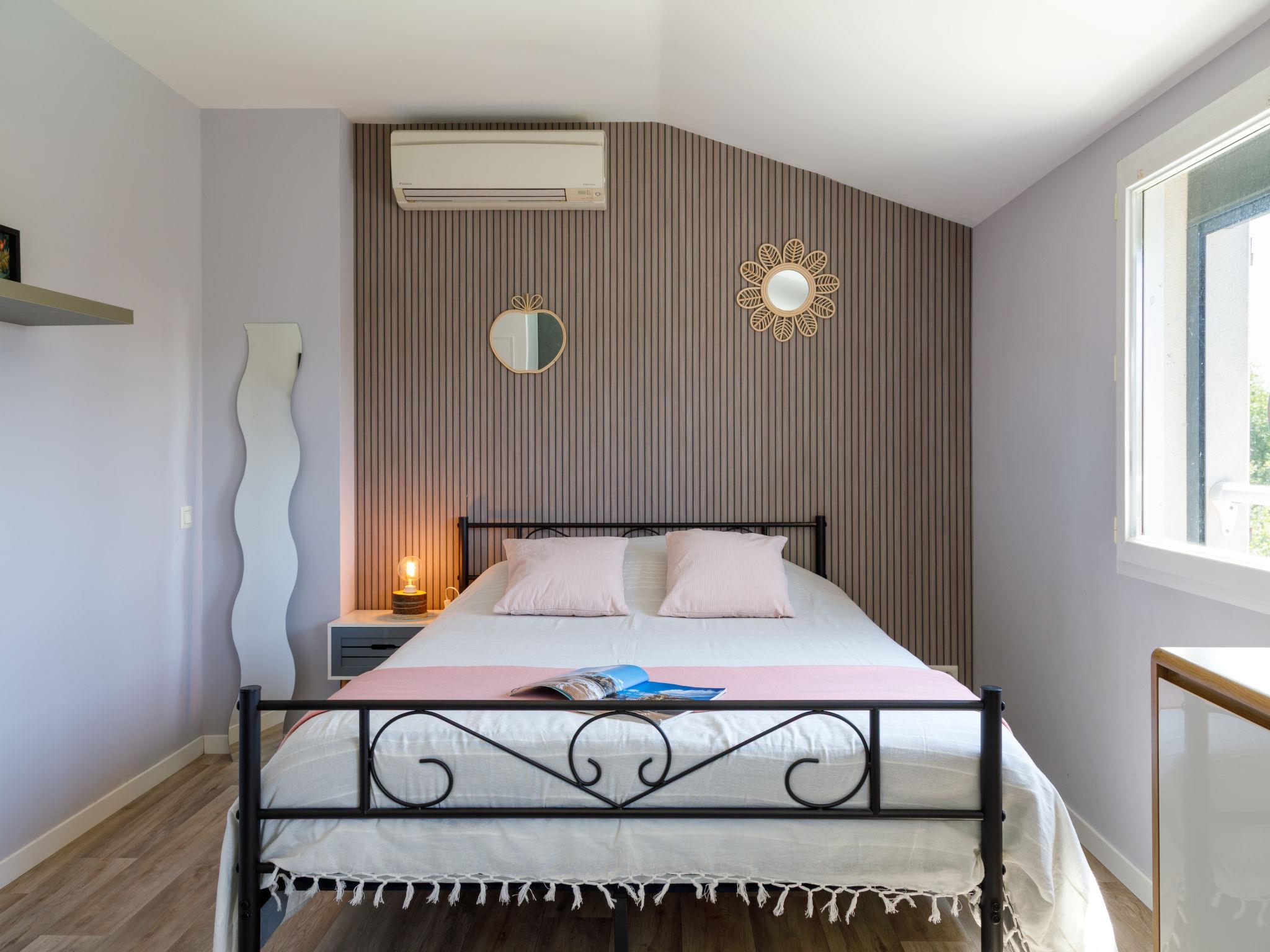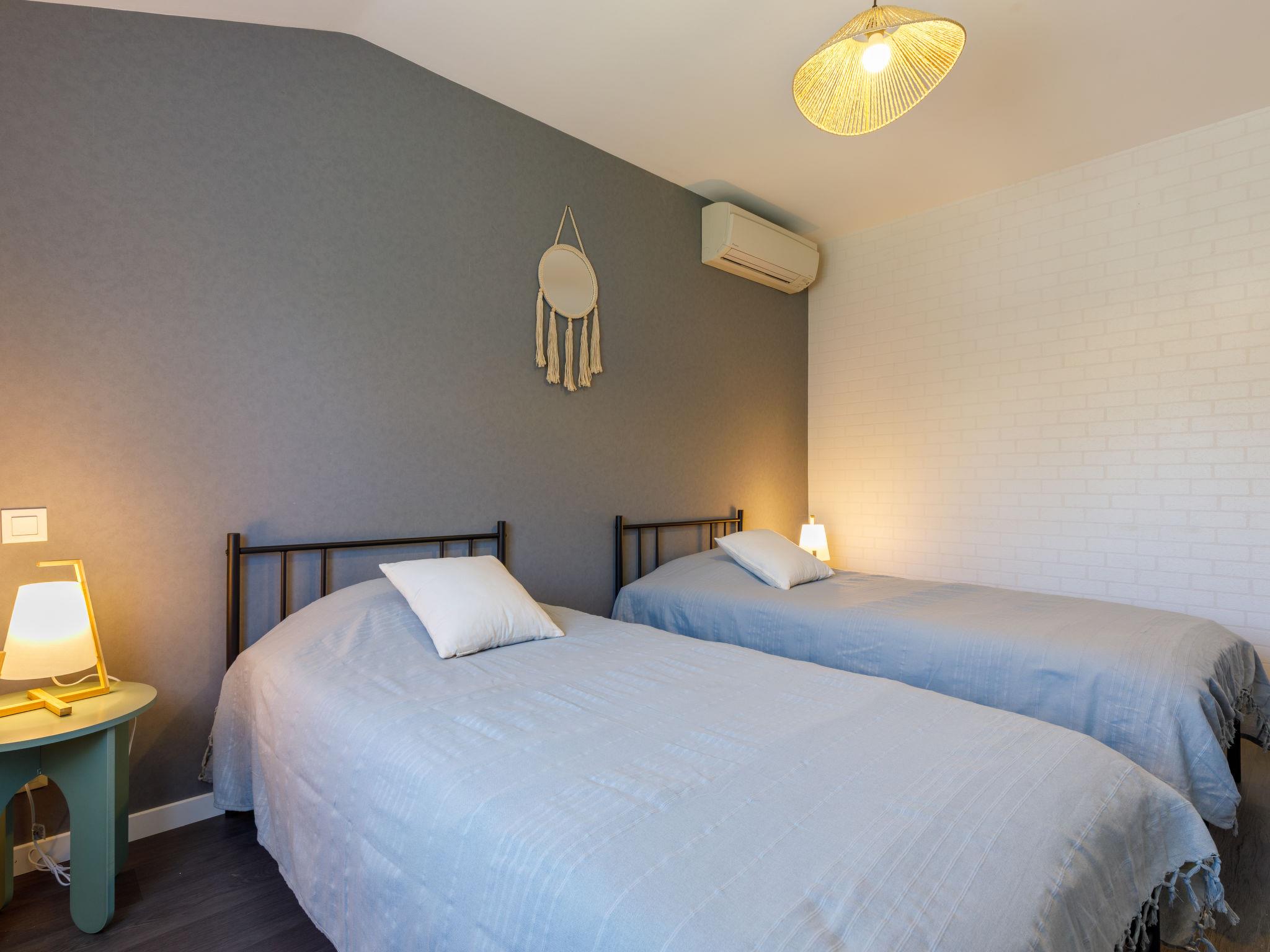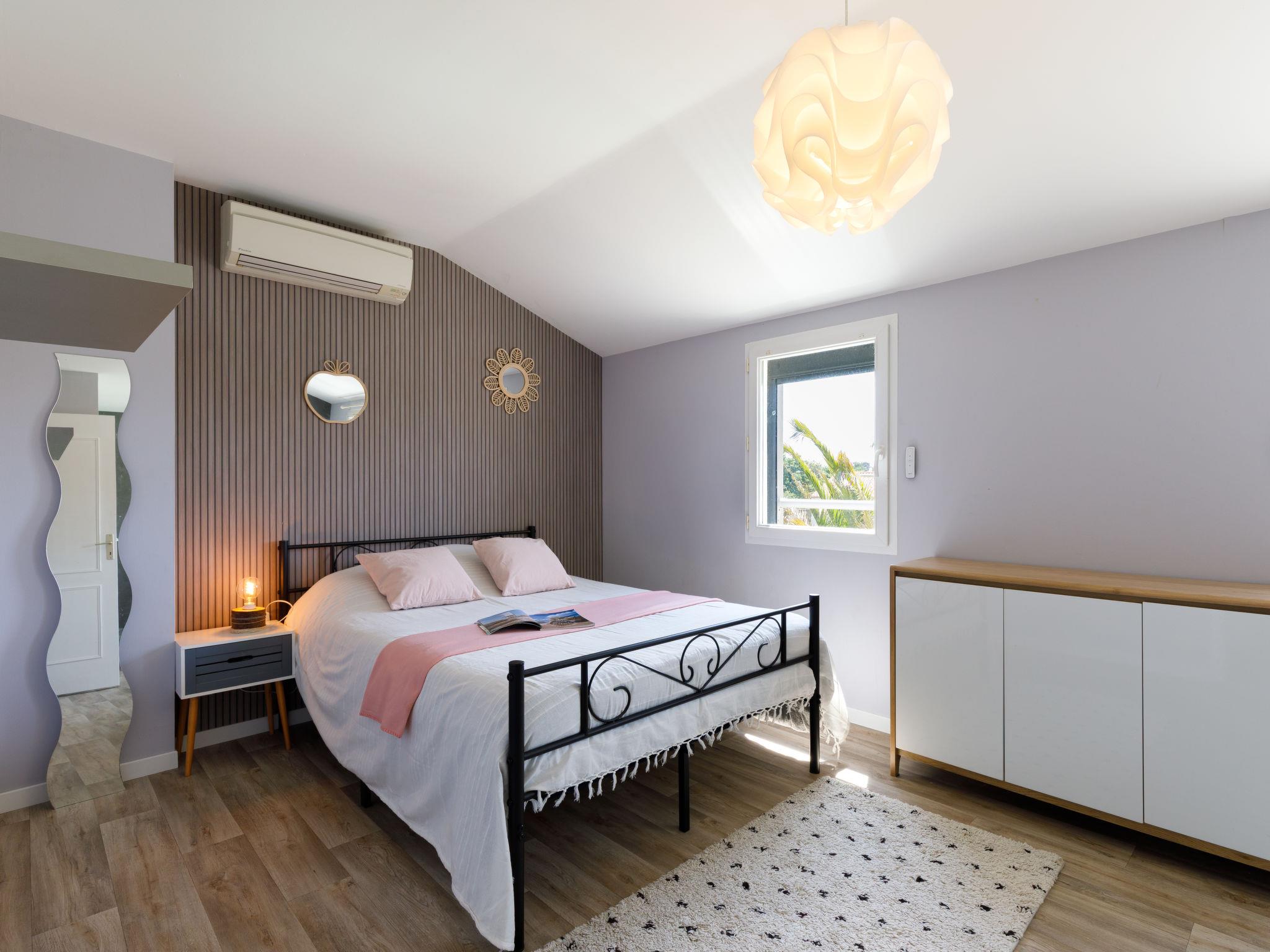 "Villa Sunset", 5-room house 170 m2 on 2 levels, south facing position. Modern and cosy furnishings: large living/dining room with open-hearth fireplace, dining table and TV (flat screen), Home cinema. Exit to the garden, to the terrace, south facing position. 1 room with 1 french bed (1 x 140 cm, length 190 cm), TV (flat screen). 1 room with 2 beds (80 cm, length 190 cm). Open kitchen (oven, dishwasher, 3 induction hot plates, toaster, kettle, microwave, freezer, electric coffee machine, Capsules for coffee machine (Senseo) extra) with bar. Shower, sep. WC. Upper floor: 1 room with 1 french bed (1 x 140 cm, length 190 cm). 1 large room with 2 beds (80 cm, length 190 cm). Shower/WC. Underfloor heating. Facilities: washing machine, dryer, iron, hair dryer. Internet (WiFi, free). Please note: non-smoking house. Maximum 1 pet/ dog allowed. Smoke alarm. Offer by a private individual according to Art. 155, IV of CGI.