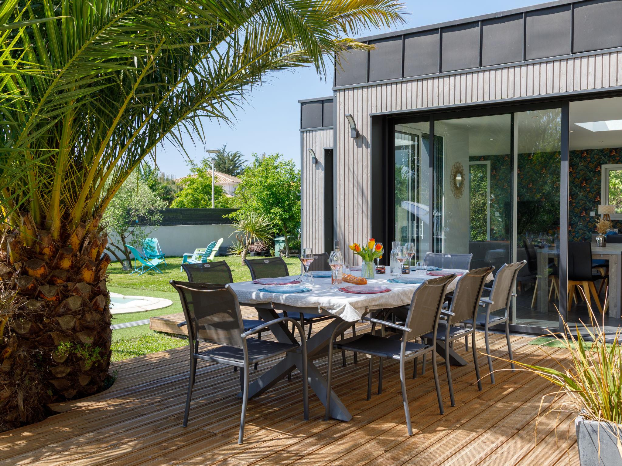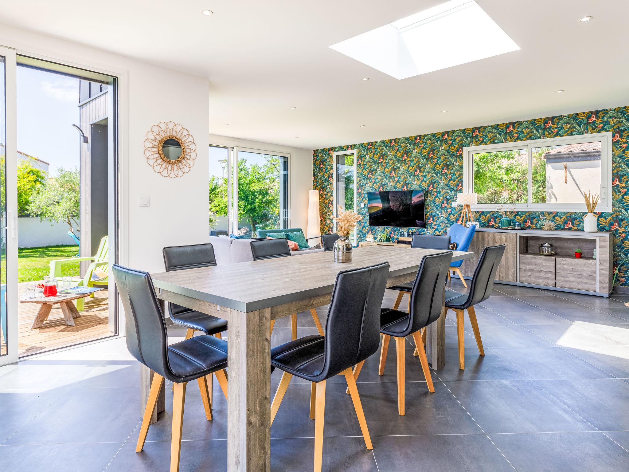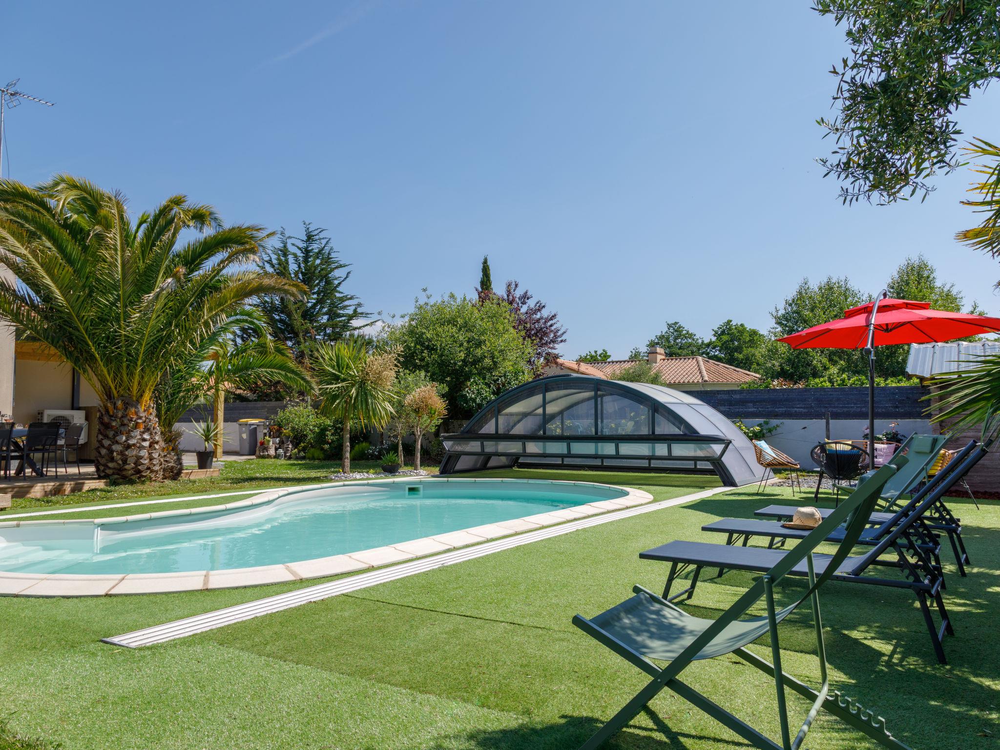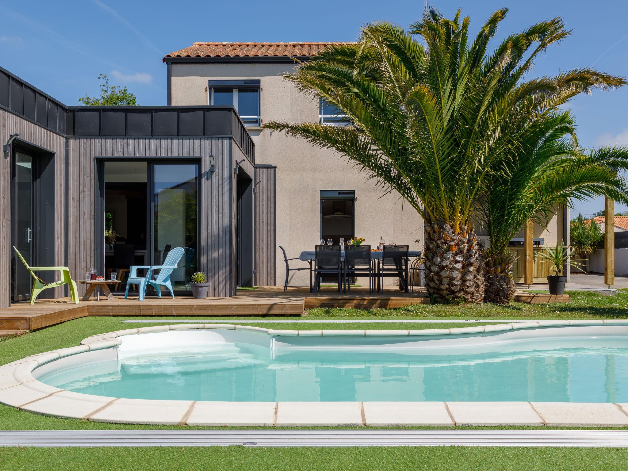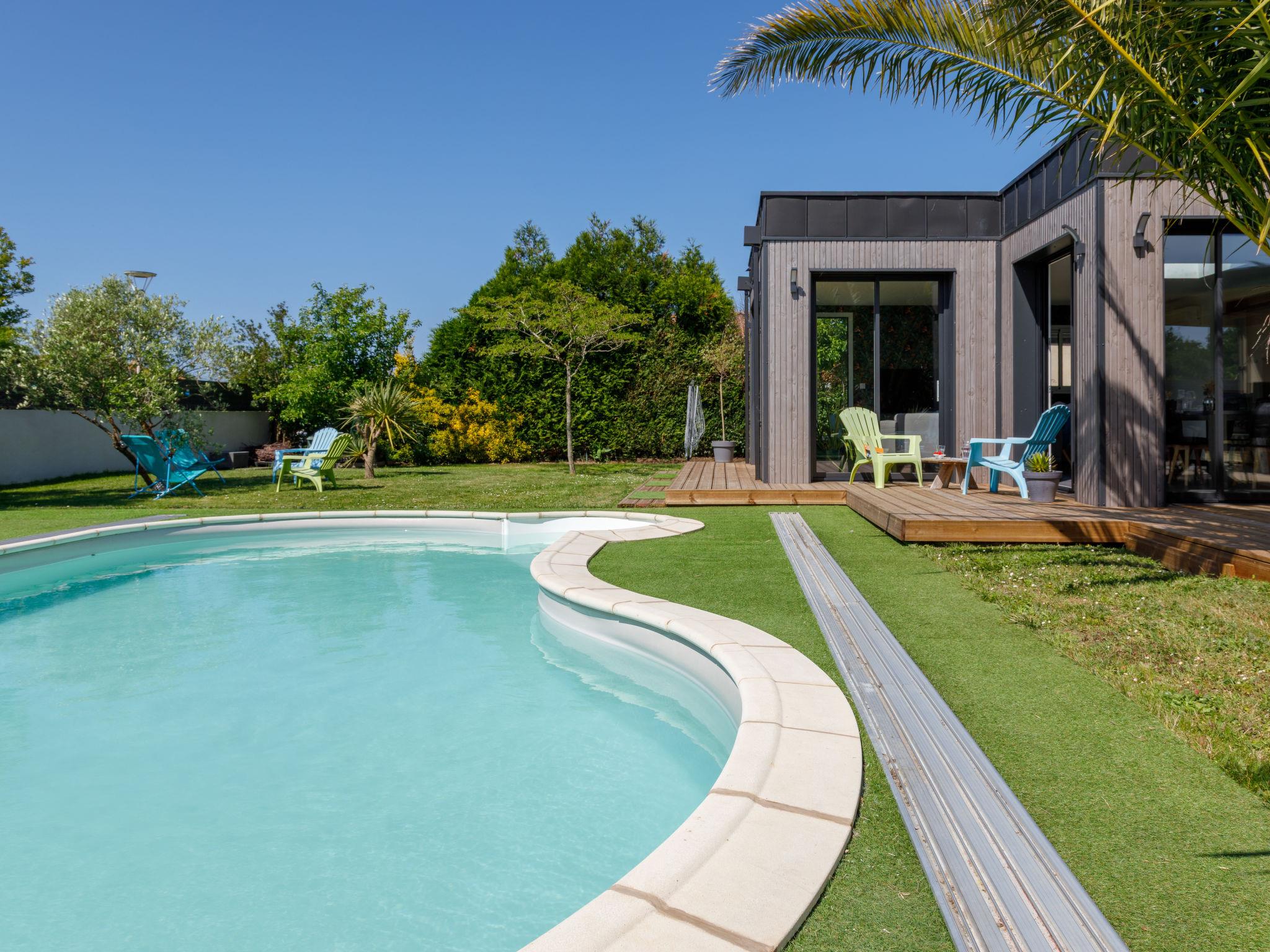 Large, beautiful single-family house "Villa Sunset", 2 storeys. In the district of La Prinais, in a quiet position in the residential district, 2 km from the sea, 3.5 km from the beach, in a cul-de-sac, south facing position. Private: property 700 m2 (fenced), well-kept garden with lawn, swimming pool, indoor pool (8 x 4 m, depth 120 - 120 cm, seasonal availability: 01.Jun. - 30.Sep.). Table tennis, terrace, garden furniture, barbecue, parking (for 2 cars), single garage. Shop 350 km, supermarket 3 km, restaurant 3 km, 25 minute walk to the centre, bus stop "La Croix du Sud" 1.5 km, railway station "Saint Nazaire" 10 km, sandy beach "Grande plage de l'Océan" 6 km, outdoor swimming pool 4 km, thermal baths "Spa du Béryl" 6 km. Nearby attractions: Le Serpent d'Océan 2.5 km, Chantiers de l'Atlantique St Nazaire 9 km, Pornic 17 km, Pornichet-La Baule 21 km, Nantes 67 km, Noirmoutier 77 km. Well-known lakes can easily be reached: Lac de Saint Viaud 13 km. Hiking paths: Parc naturel régional de Brière 13 km.