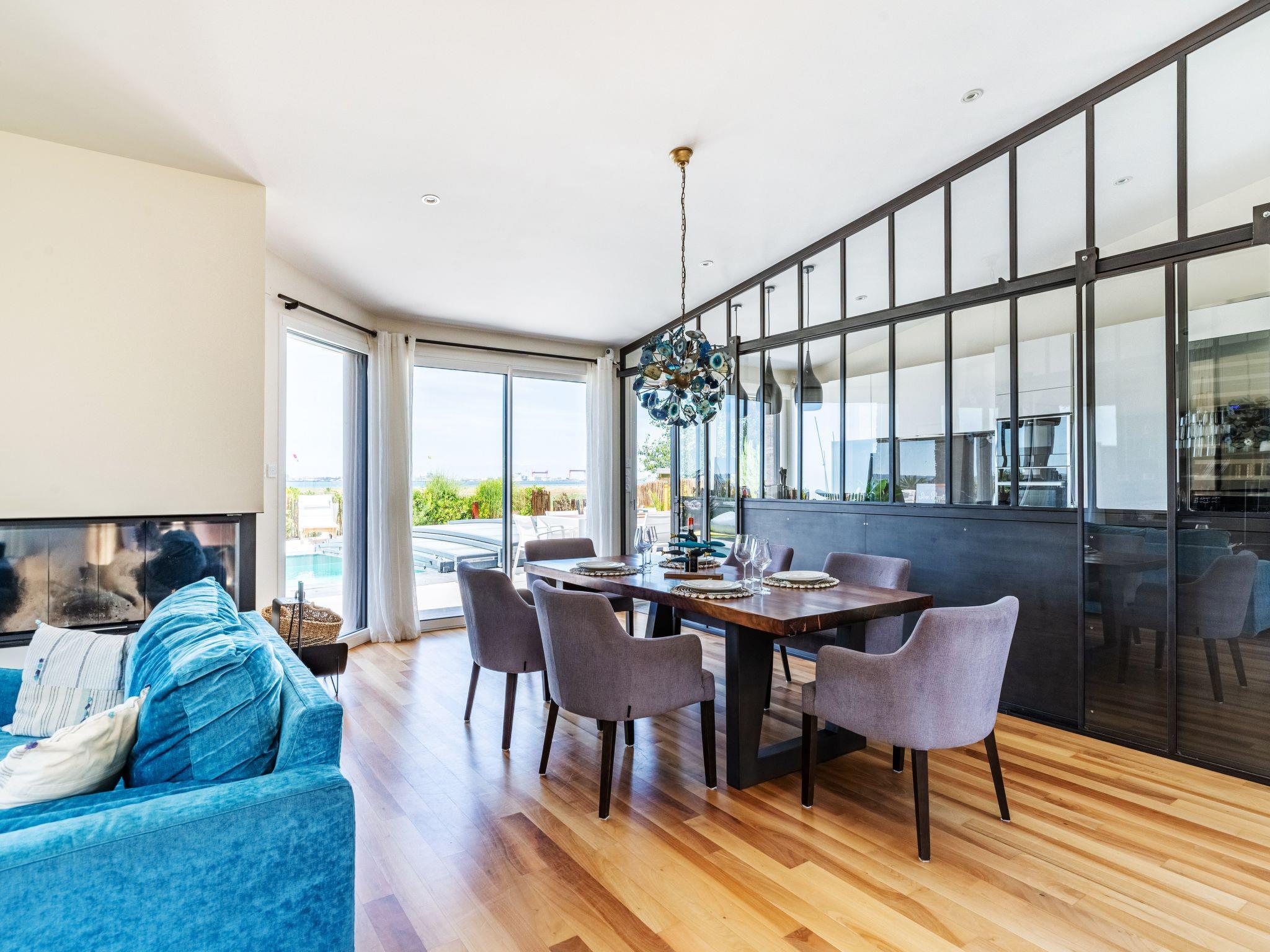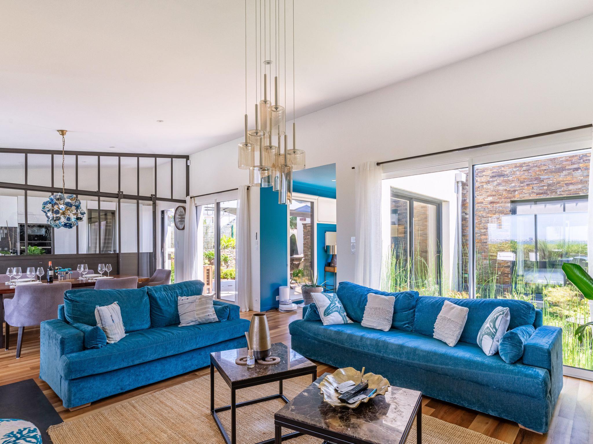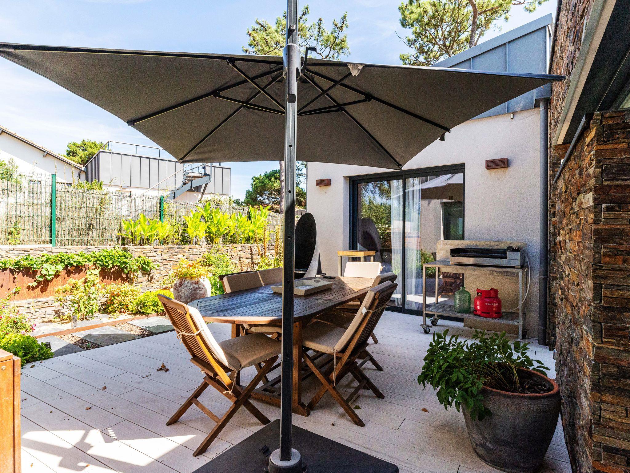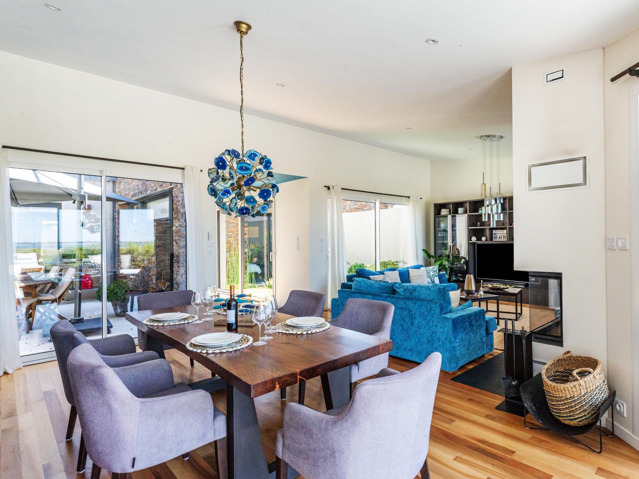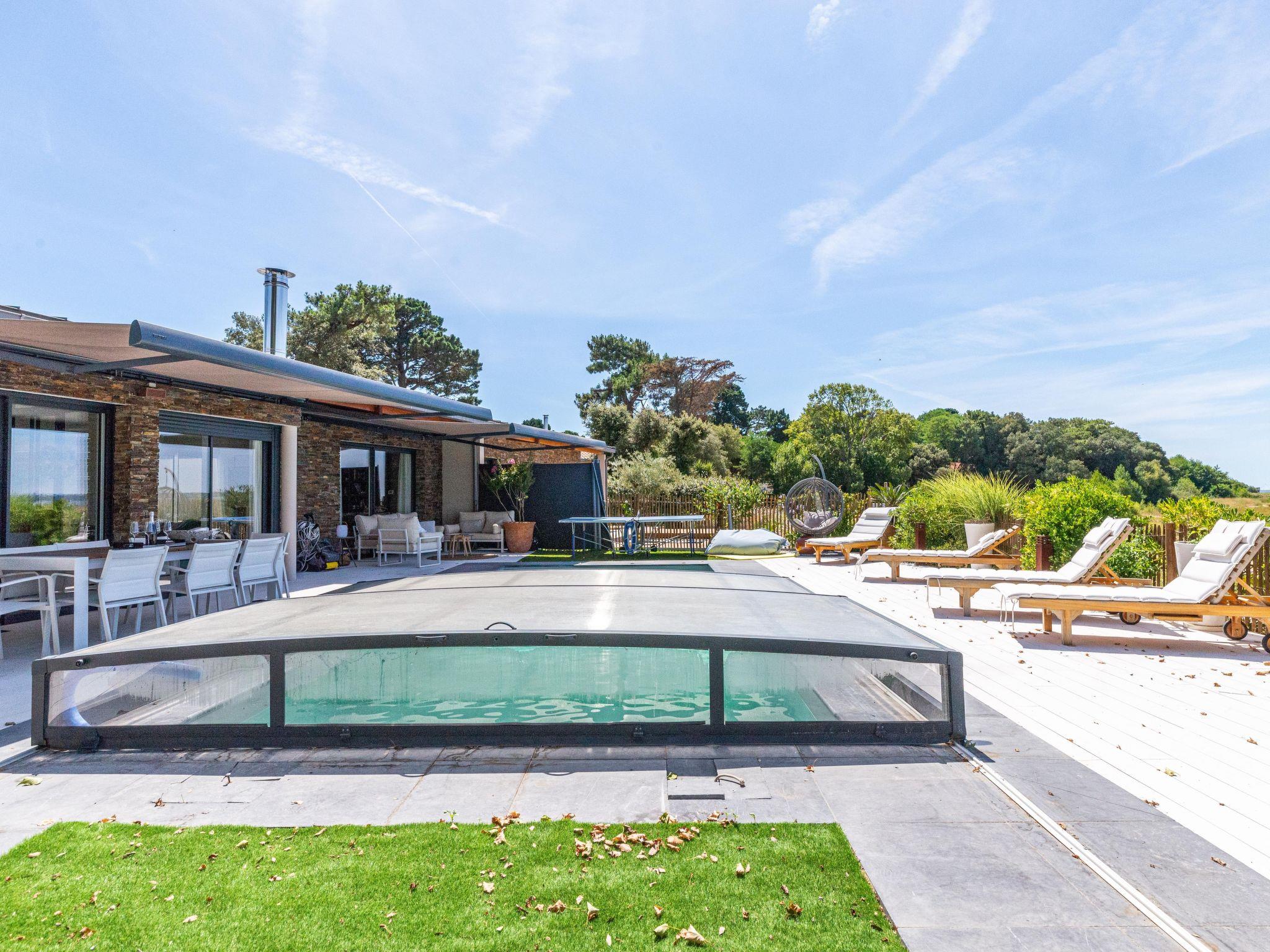 Beautiful house "Indigo-Vue Mer et Piscine chauffée", built in 2018. 1.6 km from the centre of Saint-Brévin-les-Pins, 800 m from the centre of Saint-Brevin-l'Océan, 14 km from the centre of Saint-Nazaire, in the residential district, excellent location: right in the centre but still quiet, 100 m from the sea, 100 m from the beach, in a cul-de-sac. Private: property 790 m2 (fenced) with wildlife garden, swimming pool heated (8 x 3 m, depth 150 cm, seasonal availability: 10.May. - 04.Oct.) with shutter cover. Storeroom available. Parking (for 2 cars) on the premises, single garage. Supermarket 800 m, bus stop 1.6 km, sandy beach "Plage de l'Océan" 400 m. Nearby attractions: Pornic 17 km, Pornichet-La Baule 24 km, Parc régional naturel de Brière 25 km. The owner does not accept any groups.