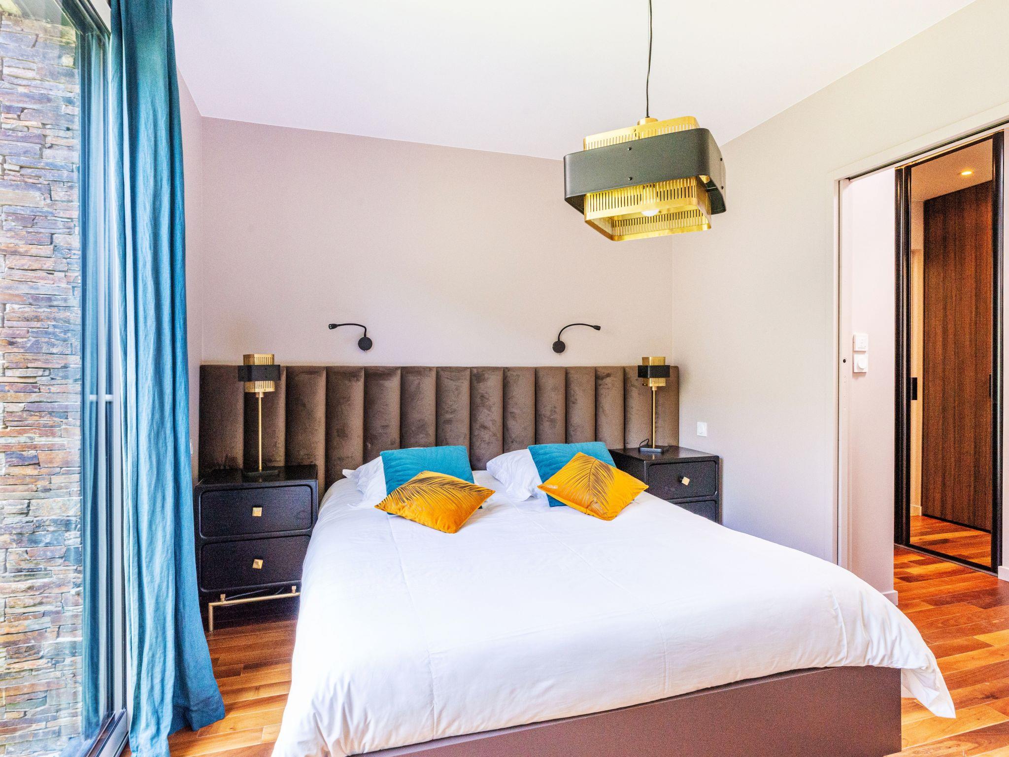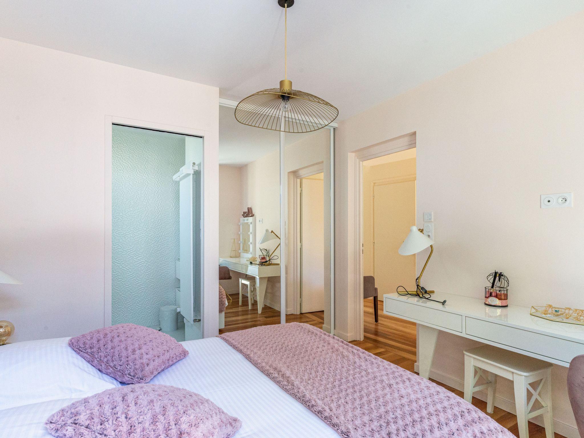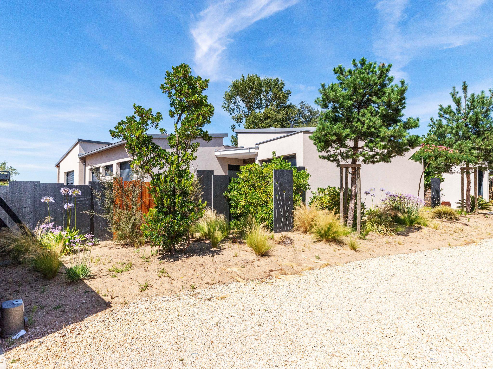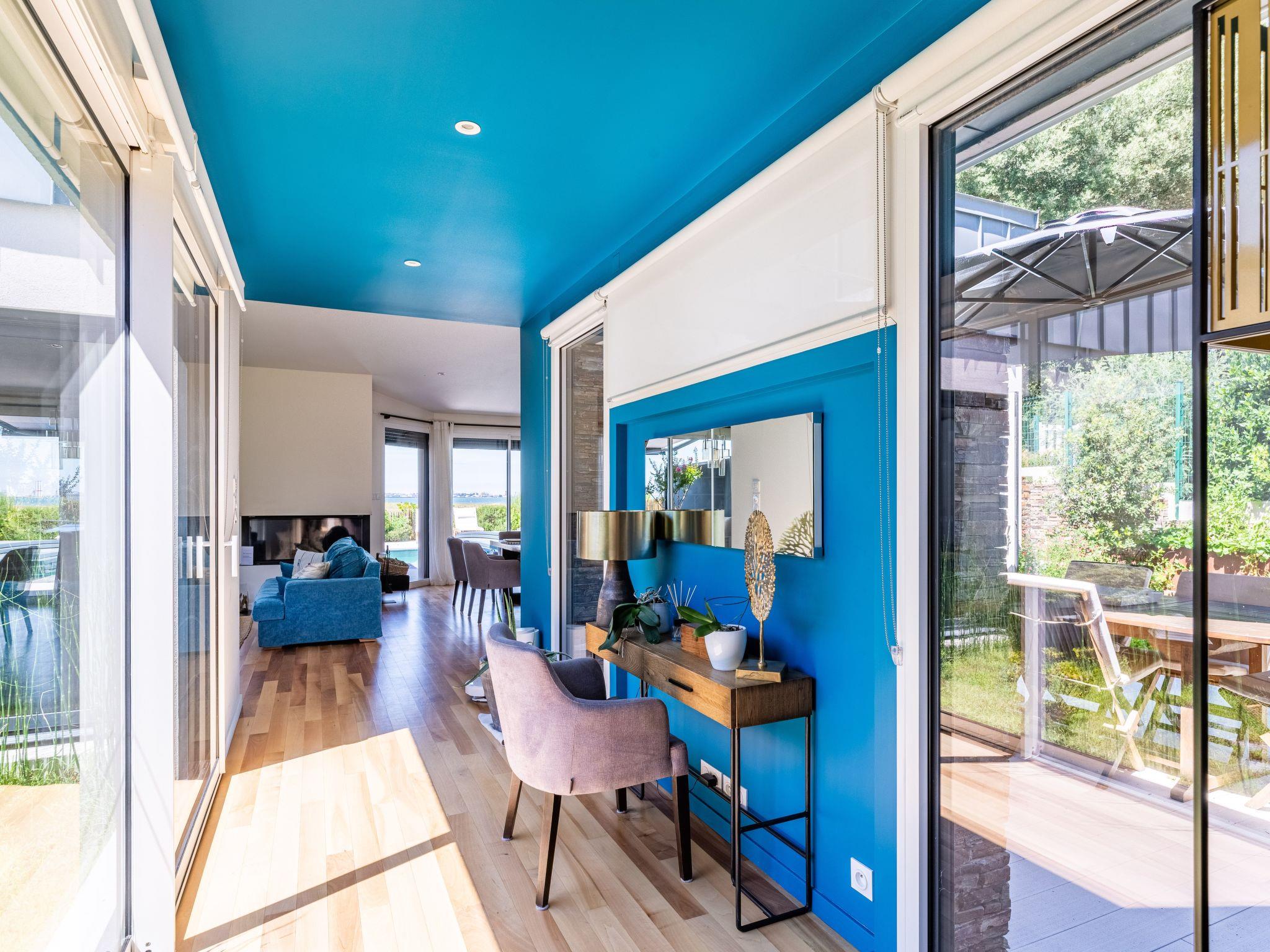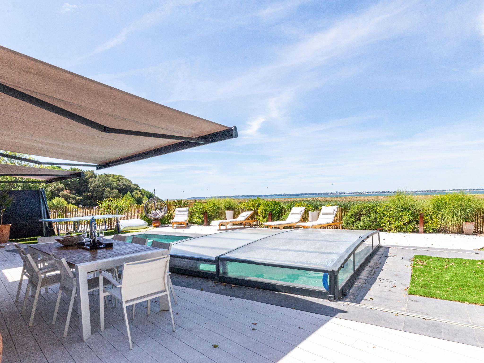Beautiful house "Indigo-Vue Mer et Piscine chauffée", built in 2018. 1.6 km from the centre of Saint-Brévin-les-Pins, 800 m from the centre of Saint-Brevin-l'Océan, 14 km from the centre of Saint-Nazaire, in the residential district, excellent location: right in the centre but still quiet, 100 m from the sea, 100 m from the beach, in a cul-de-sac. Private: property 790 m2 (fenced) with wildlife garden, swimming pool heated (8 x 3 m, depth 150 cm, seasonal availability: 10.May. - 04.Oct.) with shutter cover. Storeroom available. Parking (for 2 cars) on the premises, single garage. Supermarket 800 m, bus stop 1.6 km, sandy beach "Plage de l'Océan" 400 m. Nearby attractions: Pornic 17 km, Pornichet-La Baule 24 km, Parc régional naturel de Brière 25 km. The owner does not accept any groups.