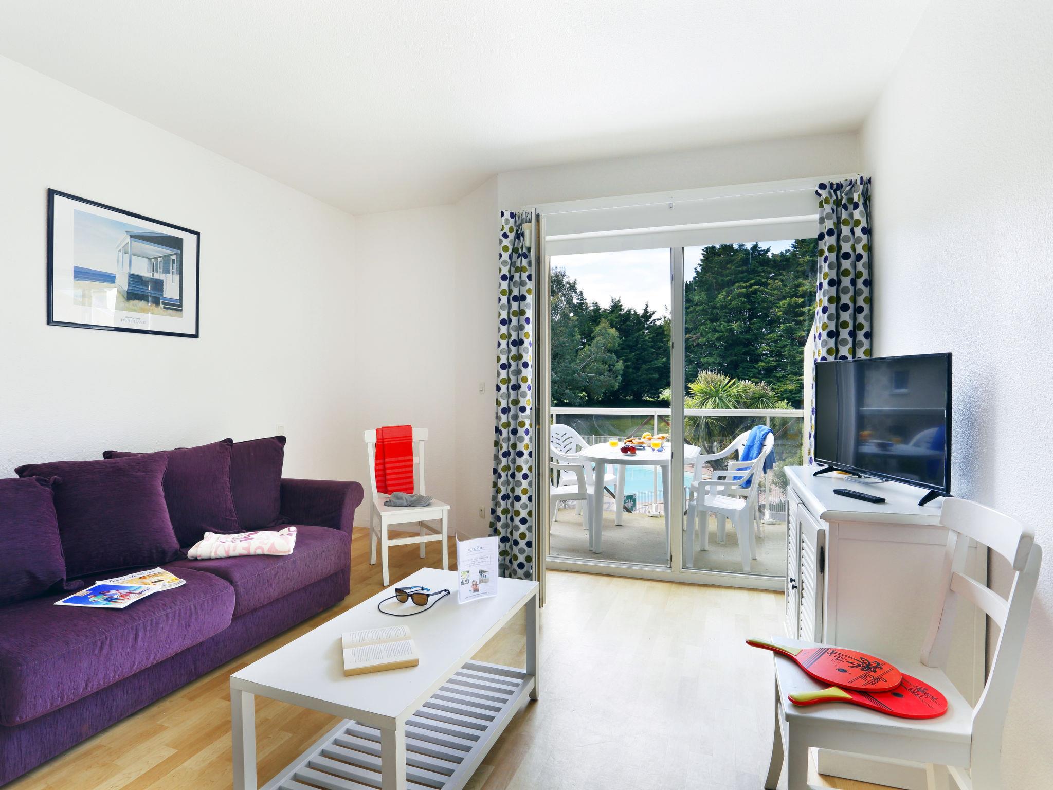 "Ker Mael", 1-room apartment 27 m2. Practical furnishings: living/sleeping room with 1 double sofabed, dining table and TV can be hired. Open alcove, without wardrobe with 2 sleeping facilities. Kitchenette (2 hot plates, dishwasher, toaster, microwave, electric coffee machine). Bath/WC or shower/WC. Electric heating. Facilities: Internet (WiFi, extra). Please note: non-smokers only. Maximum 1 pet/ dog allowed. Smoke alarm, fire extinguisher. Instead of an enclosed bedroom, some sleeping areas are located in an open-plan area (gallery, alcove, etc.).