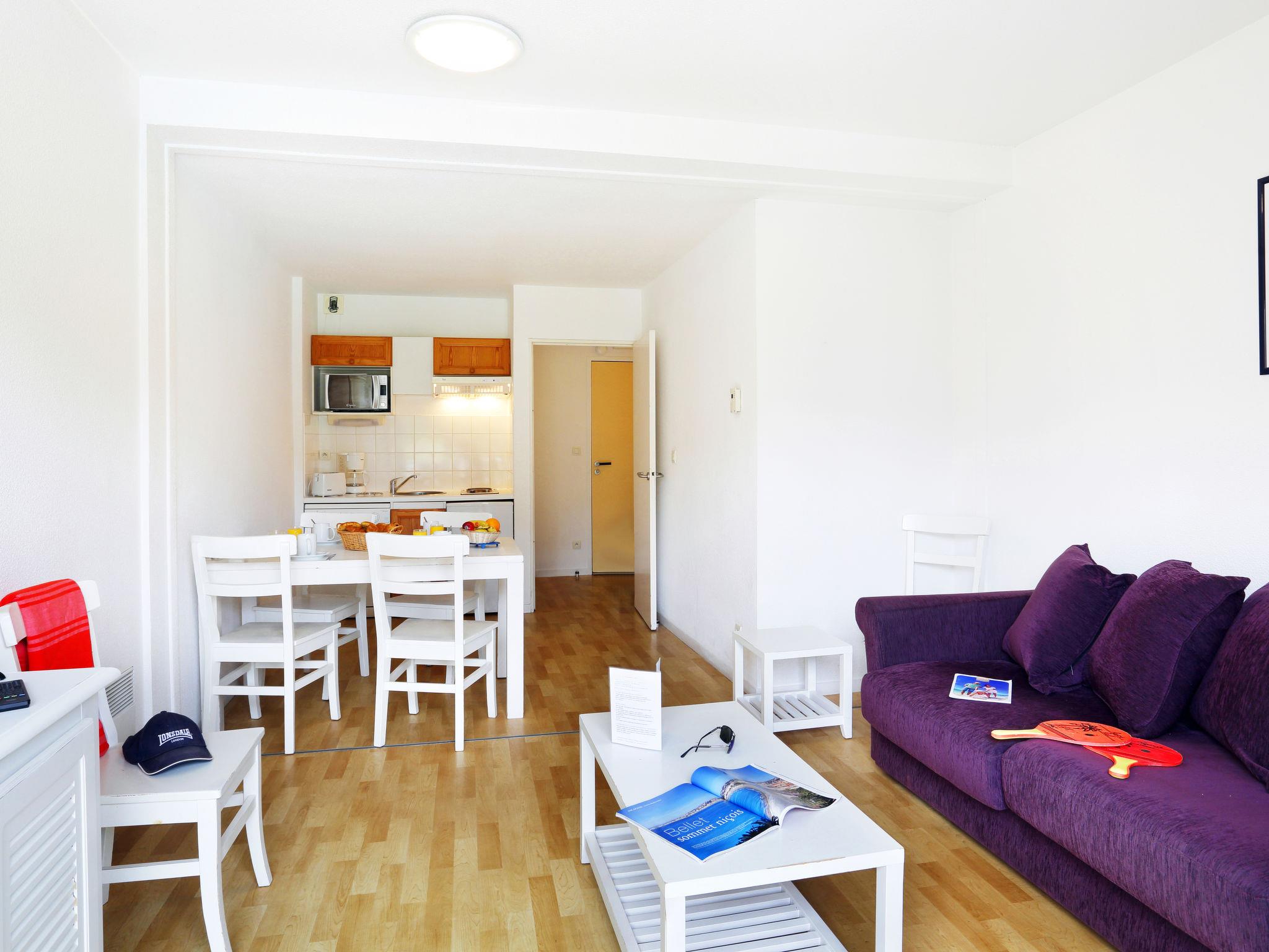Beautiful resort "Ker Mael", 3 storeys. 71 apartments in the residence. 2.5 km from the centre of St. Briac, 7 km from the centre of Dinard, 17 km from the centre of St. Malo, 80 m from the sea, road to cross. For shared use: property 2 ha with plants and trees, swimming pool heated, fenced (15 x 7 m, seasonal availability: 01.Jan. - 31.Dec.). In the complex: reception, lounge, internet access, WiFi, sauna, fitness room, table tennis, lift, washing machine (for shared use, extra). Parking on the premises. Shop 1 km, sandy beach 80 m. Golf course (18 hole) 800 m. Please note: the photograph shows a typical example. The holiday properties may differ in living space, floorplan, equipment and furnishing.