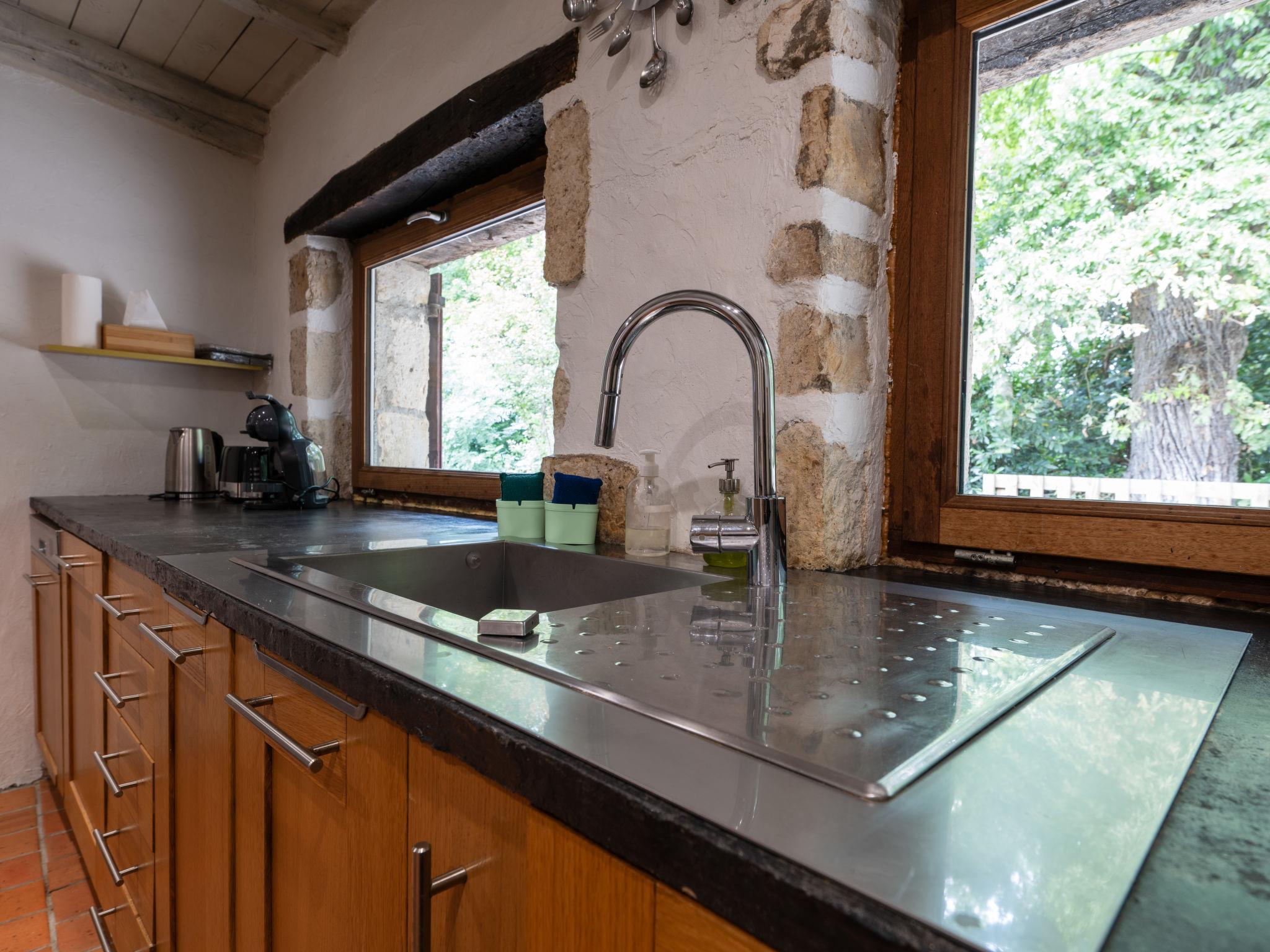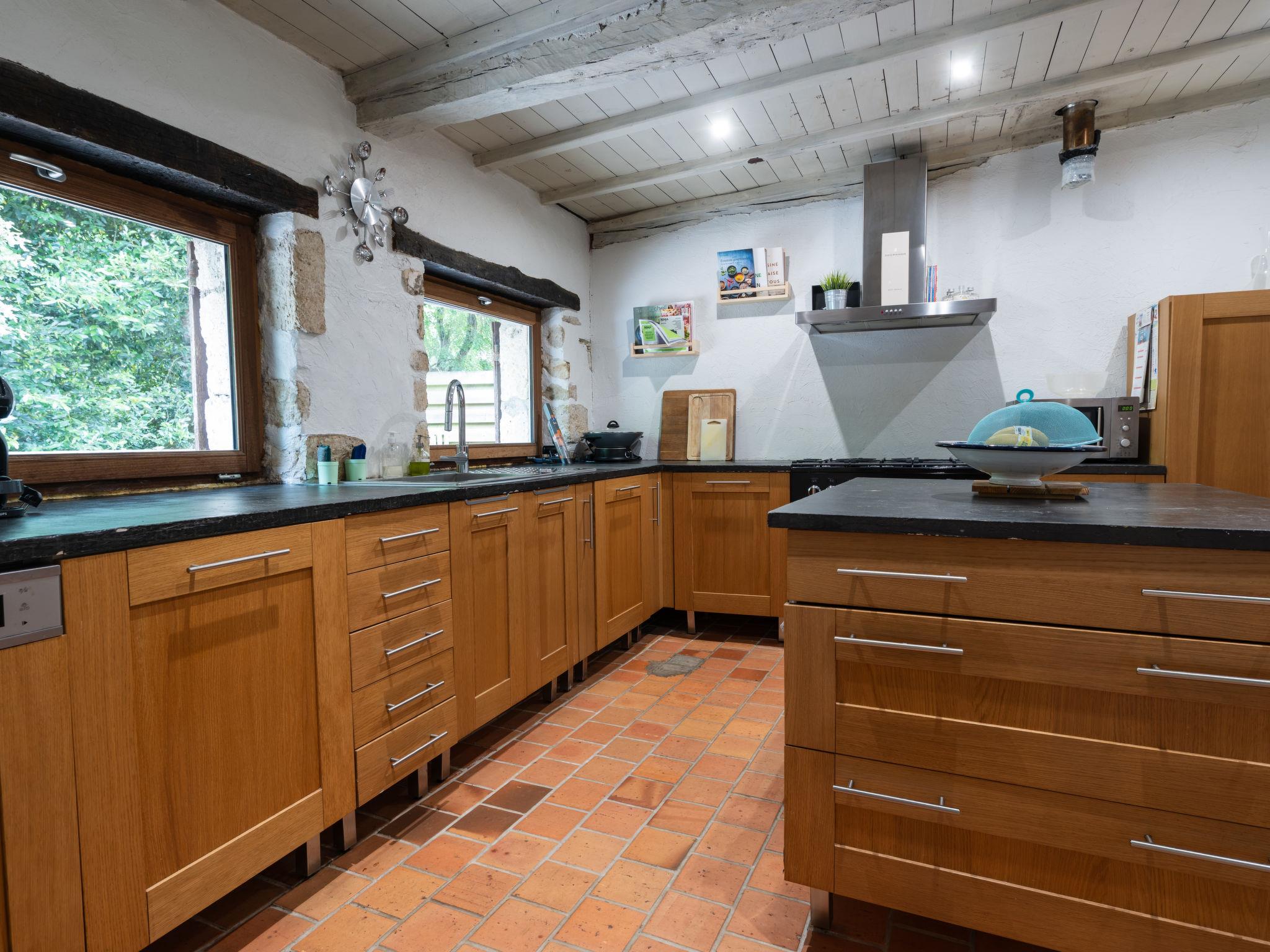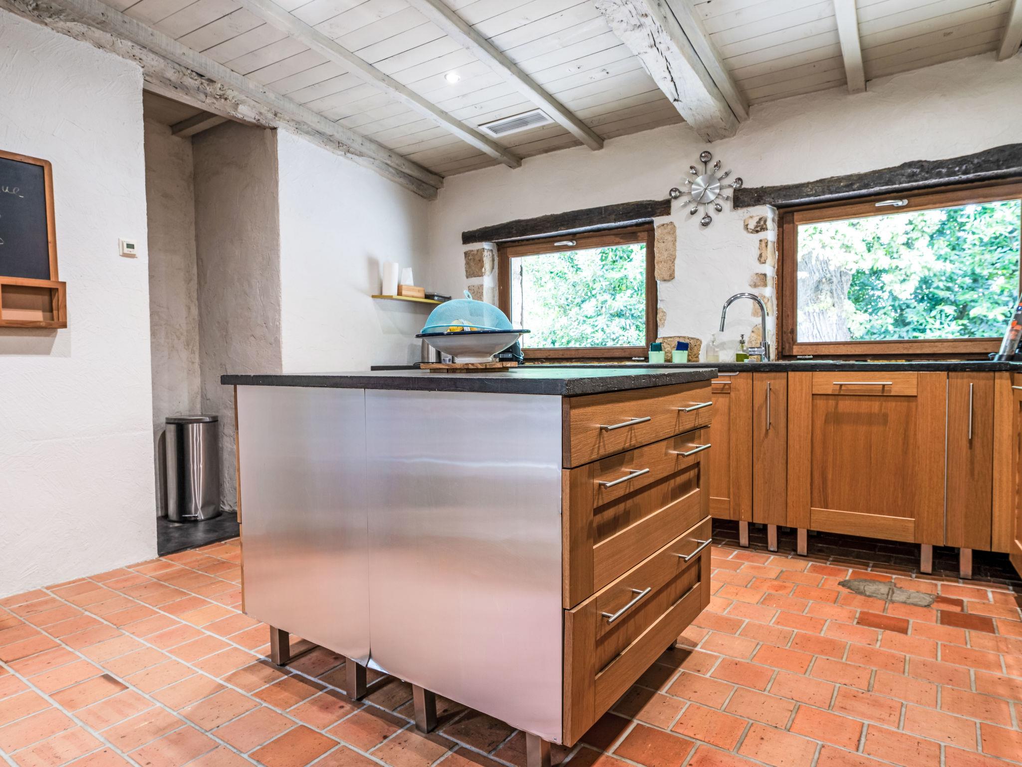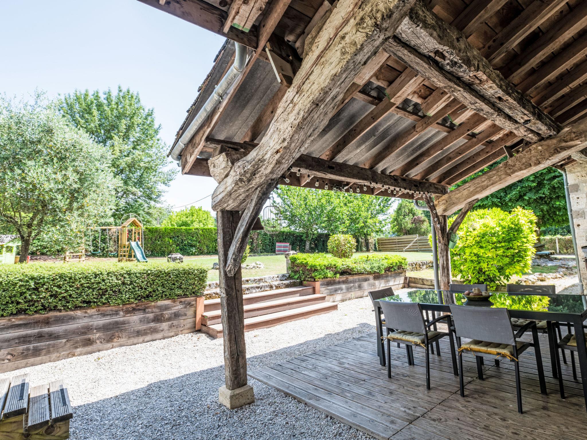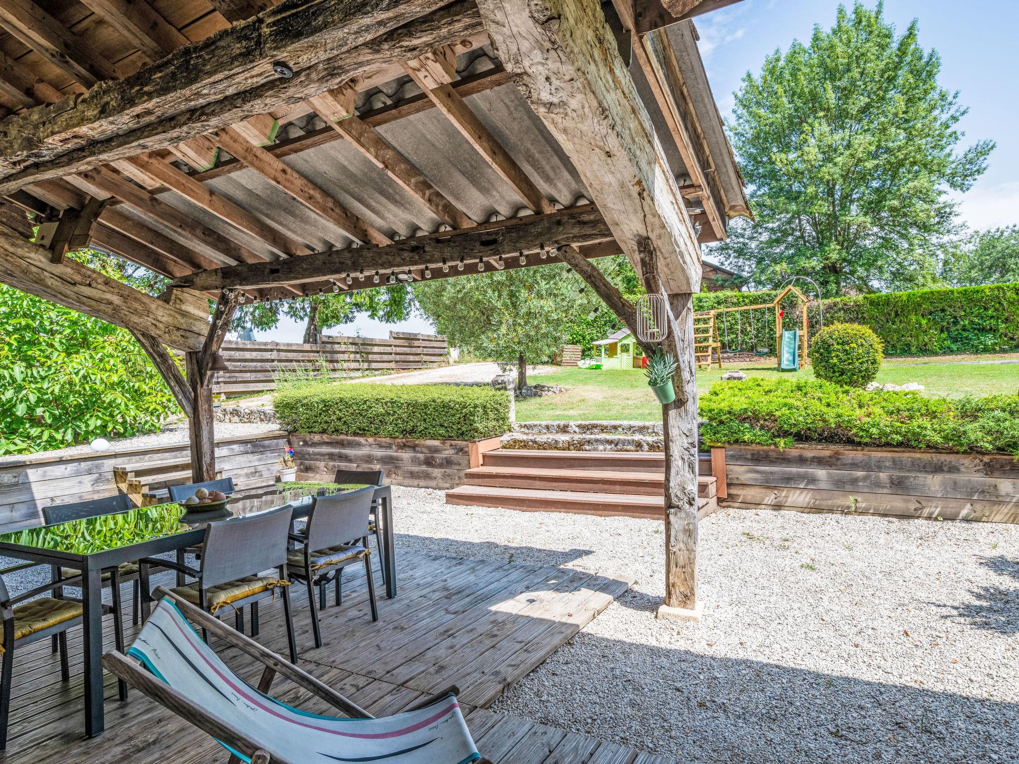 Saint Caprais de Lerm: Single-family house "Villa CAPPE". In a quiet position, in a cul-de-sac. Private: large garden 2'000 m2 (not fenced), swimming pool heated (8 x 4 m, depth 140 cm, seasonal availability: 01.Jul. - 31.Aug.) with alarm system. Boules, children's playground. Motor access to the house. (5 steps). Parking (for 2 cars) on the premises. Grocery 7.5 km, supermarket 7.5 km, restaurant 2.5 km, bakery 7.5 km, bus stop 7 km, railway station "Agen" 12 km, thermal baths "Aginum Thermae" 11 km. Golf course (9 hole) 8 km, tennis 6 km, riding stable 5.5 km. Nearby attractions: Agen 13 km, Happy Forest Parc 8 km, Parc attraction Walygator 15 km, Parc Naturel Passeligne 13 km. Well-known lakes can easily be reached: Lac Passeligne 13 km. Please note: car recommended.