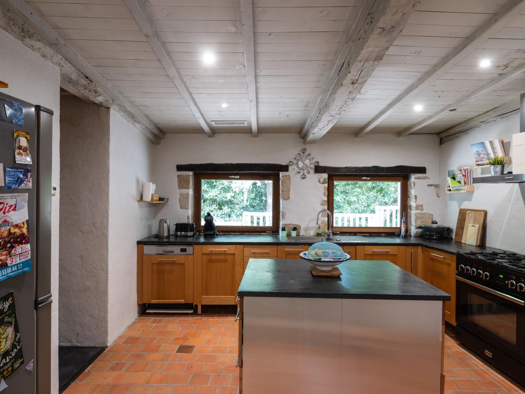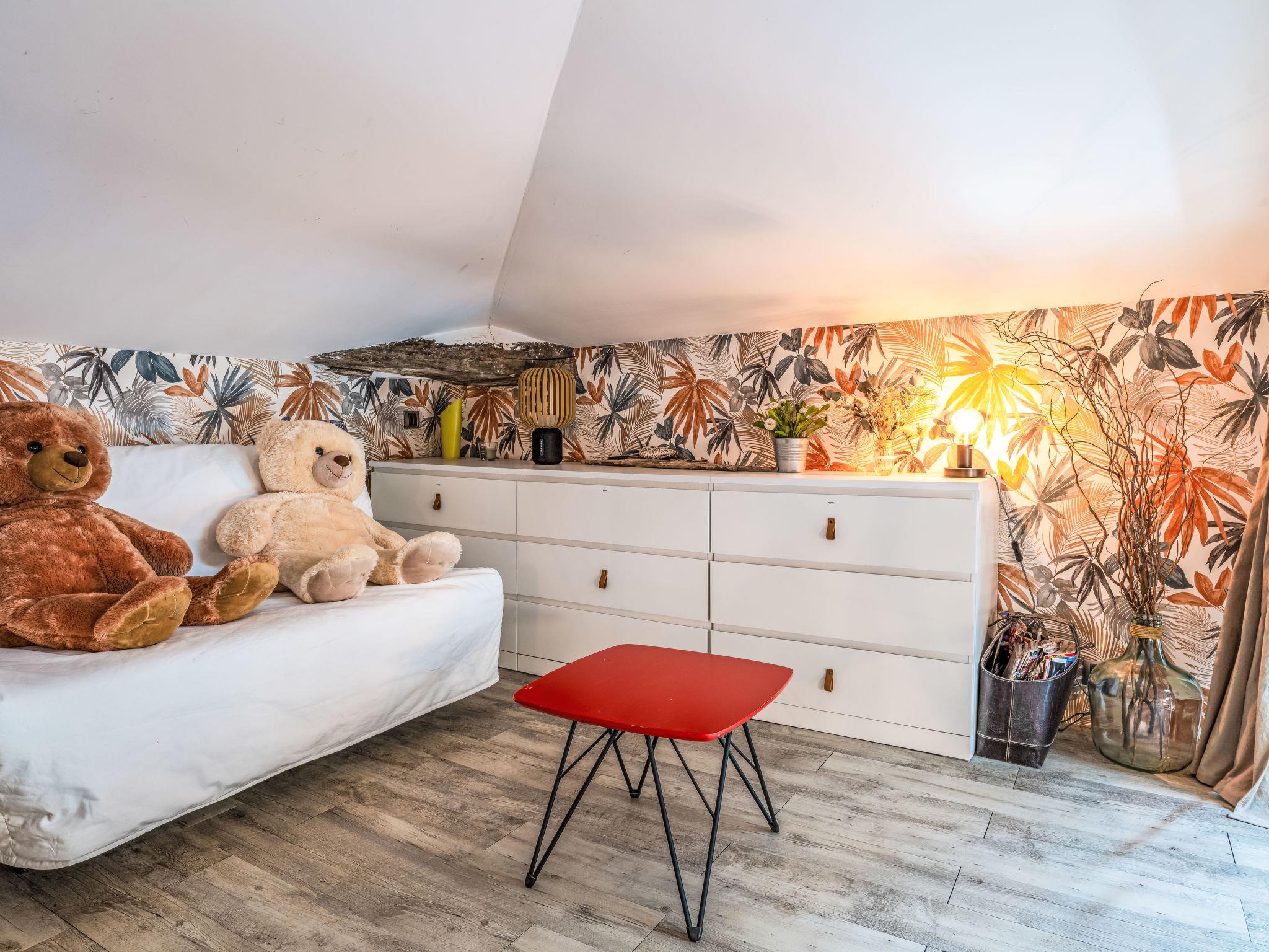 4-room house 120 m2 on 2 levels. Beautiful furnishings: living/dining room with TV (flat screen). Exit to the terrace. 1 room with 1 french bed (1 x 160 cm, length 190 cm), shower. 9 m2, 1 room with 1 x 2 bunk beds (90 cm, length 190 cm). 9 m2, 1 room with 1 french bed (1 x 140 cm, length 190 cm). Kitchen 15 m2 (oven, dishwasher, Gas stove, 5 gas rings, toaster, kettle, microwave, freezer, electric coffee machine, Capsules for coffee machine (Senseo) extra) with air conditioning. Bathroom, sep. WC. Upper floor: open gallery 15 m2, with sloping ceilings. Heating, air-conditioning. Large terrace 75 m2, roofed, east facing position. Terrace furniture, barbecue, deck chairs (6). Facilities: washing machine, dryer, baby cot for up to 2 year olds, hair dryer. Internet (WiFi, free). Parking. Please note: suitable for families. Smoke alarm. Offer by a private individual according to Art. 155, IV of CGI.