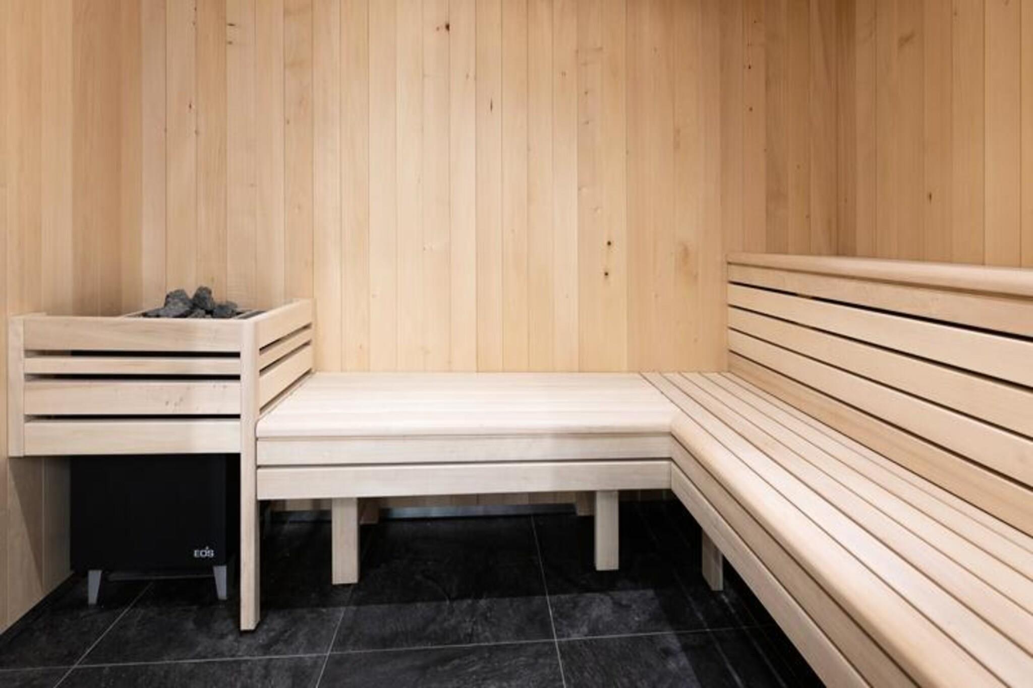 , Stue(Fjernsyn, spisebord), Køkken(kaffemaskine, mikrobølgeovn, køleskab), soveværelse(dobbeltseng), badeværelse(badekar, håndvask), Parkering, Restaurant, sauna, Håndklæder inkl.