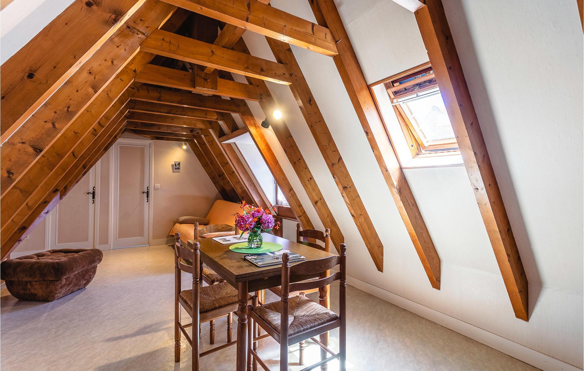Huset er typisk for Dordogne-regionen, og er nu blevet forvandlet til to uafhængige ferielejligheder. Lejligheden byder jer velkommen i hyggelig og autentisk fransk stil med masser af fine detaljer, som I helt sikker vil elske. Lejligheden ligger på førstesal og har skråvægge. Opholdsstuen ligger i forlængelse af det åbne køkken, hvor I kan tilbringe mange gode timer sammen.