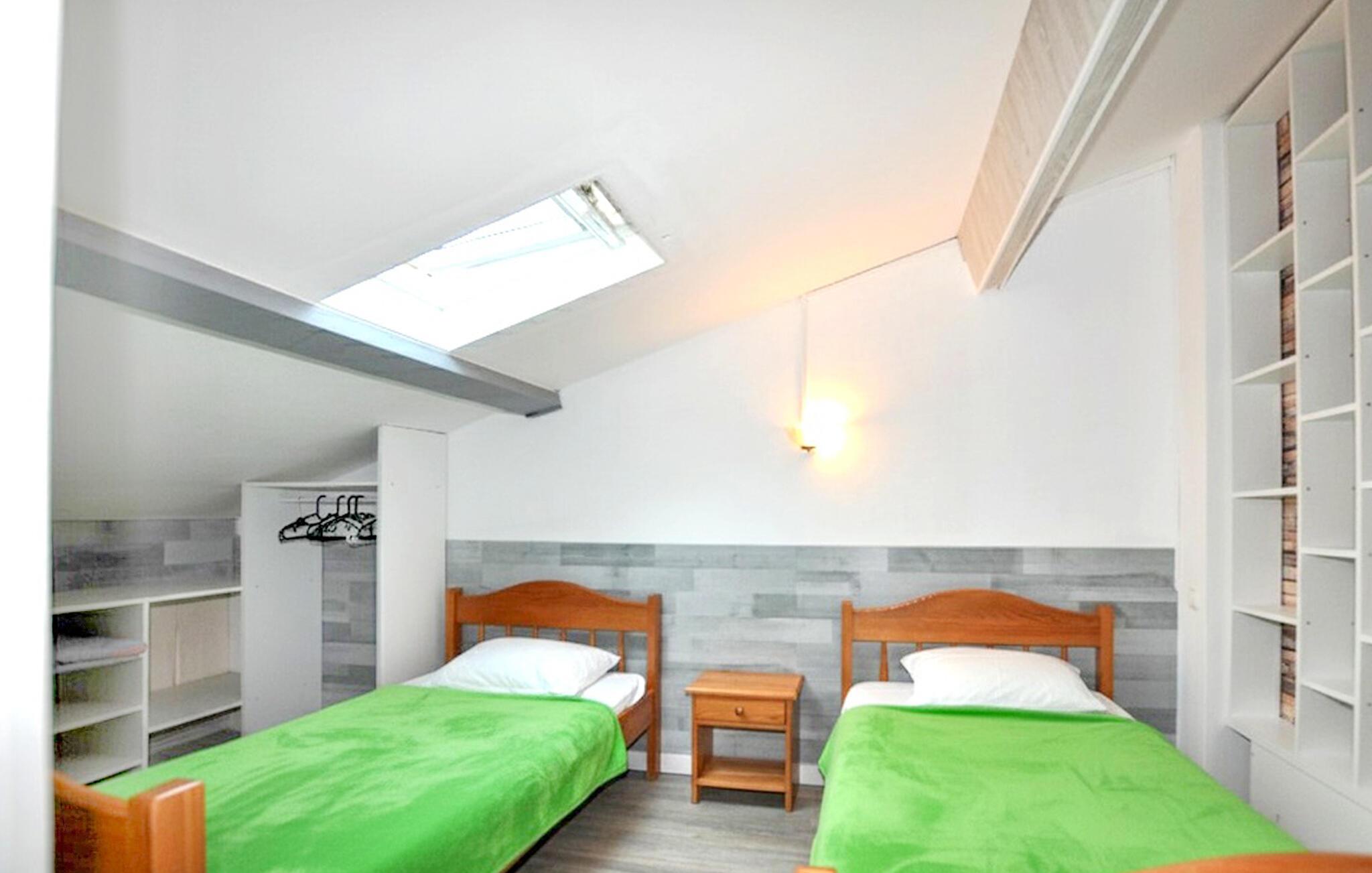 Dette hus kombinerer harmonisk hygge og moderne komfort. Synlige træbjælker, komfortable møbler og et stort vinduesfacade skaber en atmosfære, hvor I kan slappe af. Lyt til jeres yndlingspodcast, slap af med en kop kaffe eller lav mad sammen, mens afslappende musik spiller i baggrunden.