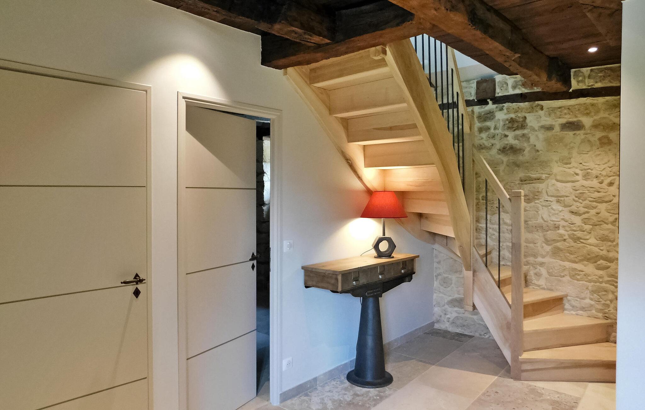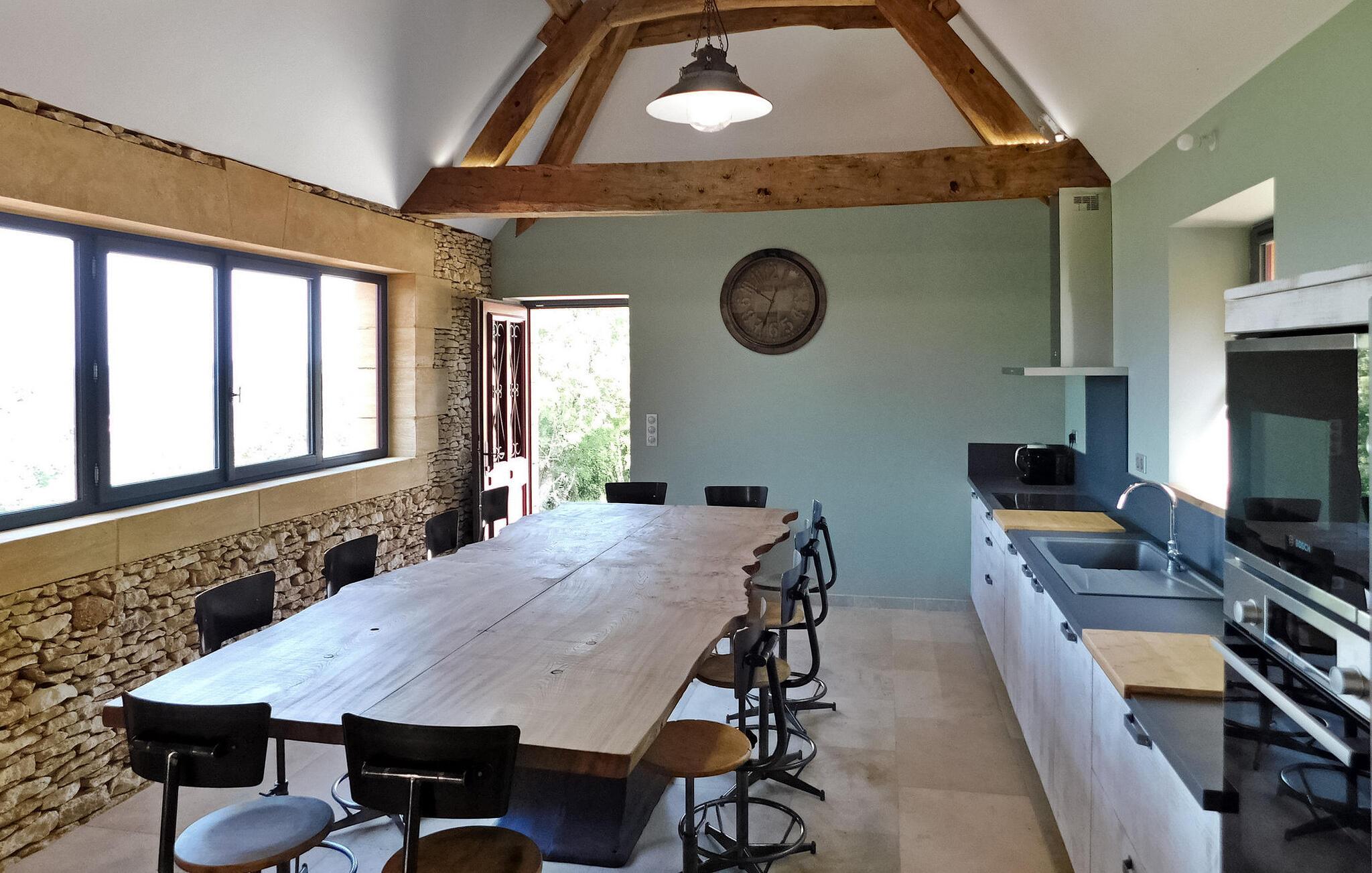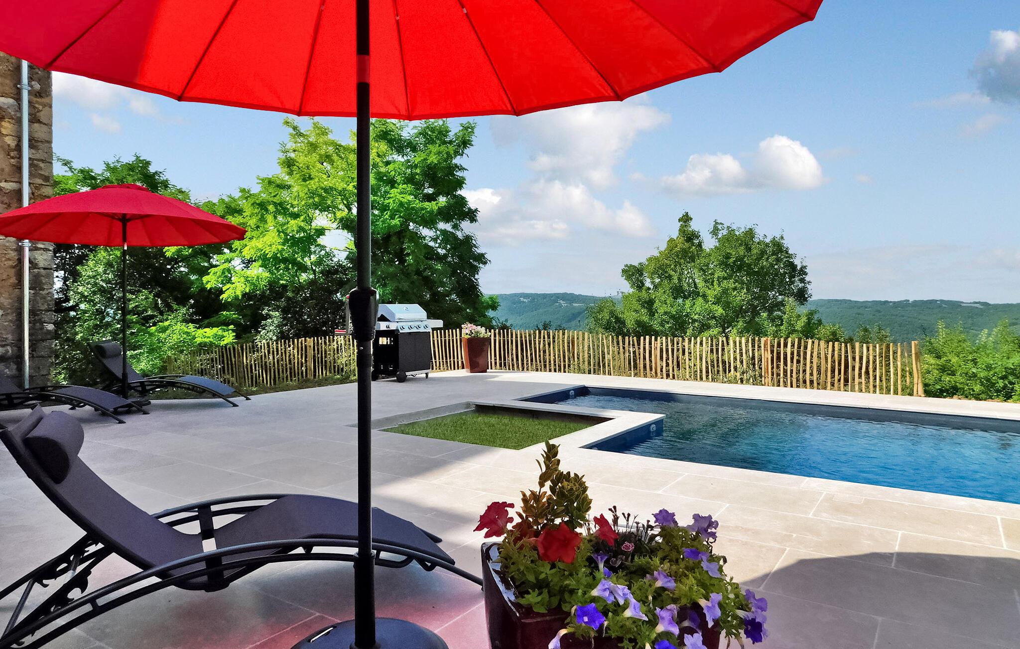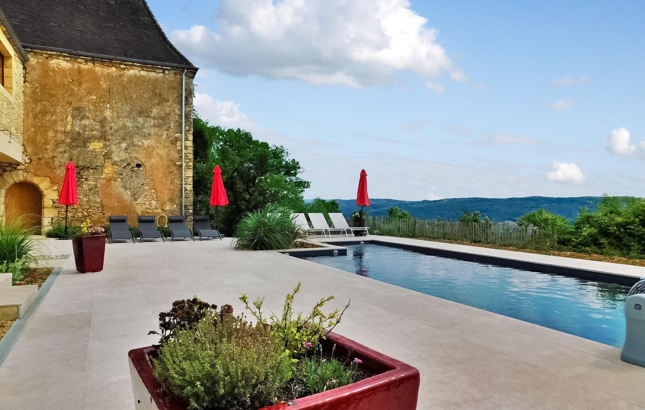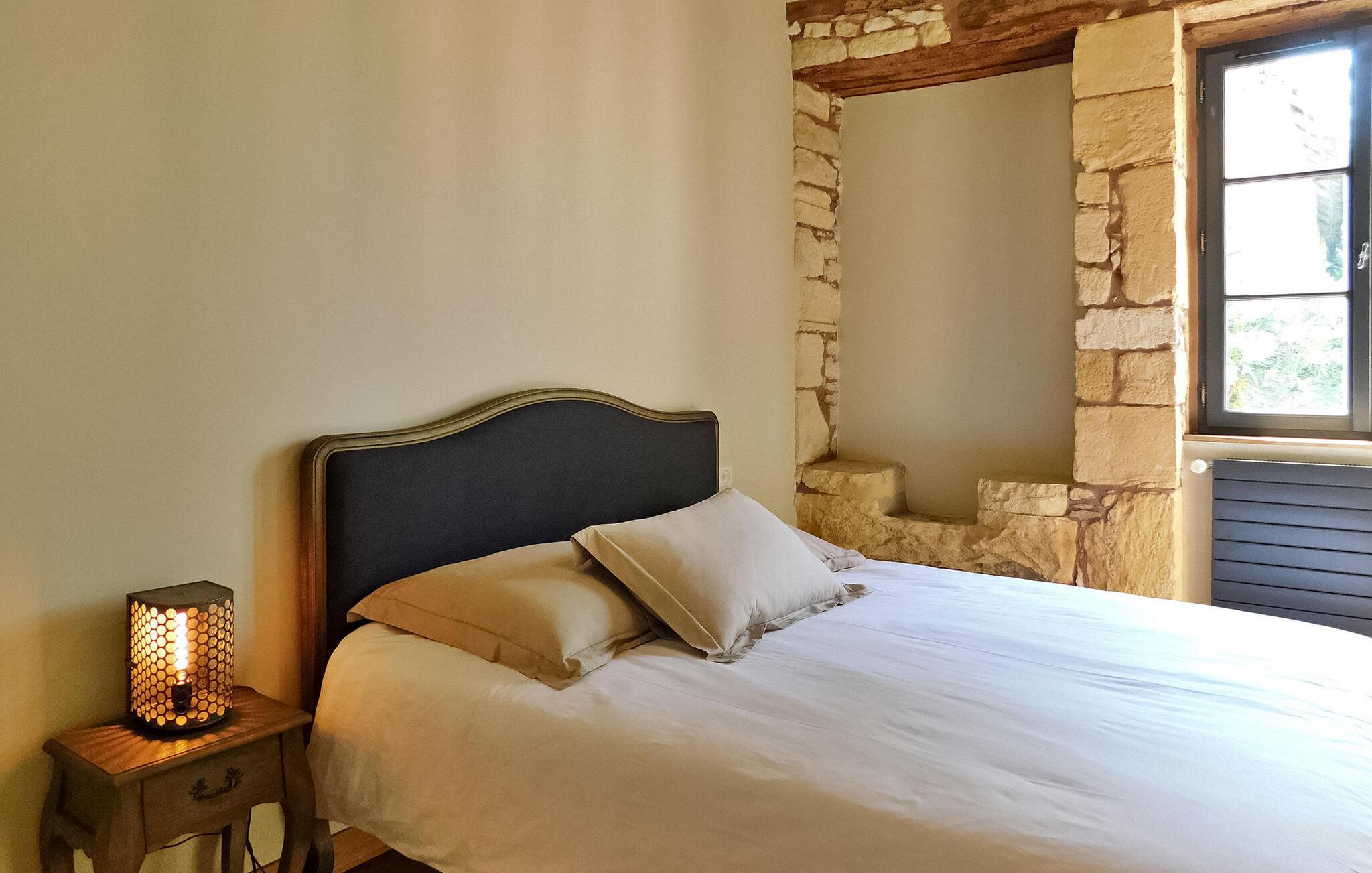 Stenhuset i Dordogne er et charmerende feriested. Nyligt renoveret, det udstråler en rustik charme med synlige bjælker, stenvægge og flisegulve, hvilket giver en naturskøn udsigt over landskabet. Huset byder på god plads med to soveværelser i stueetagen og et tilstødende brusebad. Stueetagen har yderligere en rummelig stue med synlige bjælker, møbleret med komfortable sofaer. En åben stenpejs tilføjer karakter til rummet. Det åbne køkken byder på moderne bekvemmeligheder og en smuk udsigt over dalen og swimmingpoolen. Ovenpå er der yderligere to soveværelser. Ejendommen ligger på en ejendom i bjergskråningerne i landsbyen Castels og Bézenac med en privat opvarmet 8m x 4m swimmingpool, poolterrasse med liggestole og et overdækket poolhus. Nøglefaciliteter inkluderer aircondition i de to soveværelser på første sal og stuen, sammen med gulvvarme i vintermånederne. Derudover har ejendomsejeren en anden feriebolig i nærheden uden et hegn, hvilket sikrer privatlivets fred for både lejemål med separat adgang og parkering. Huset er beliggende på en ejendom på 12 hektar, skove og enge, områder til gåture og byder på en fantastisk udsigt over Dordogne-dalen.