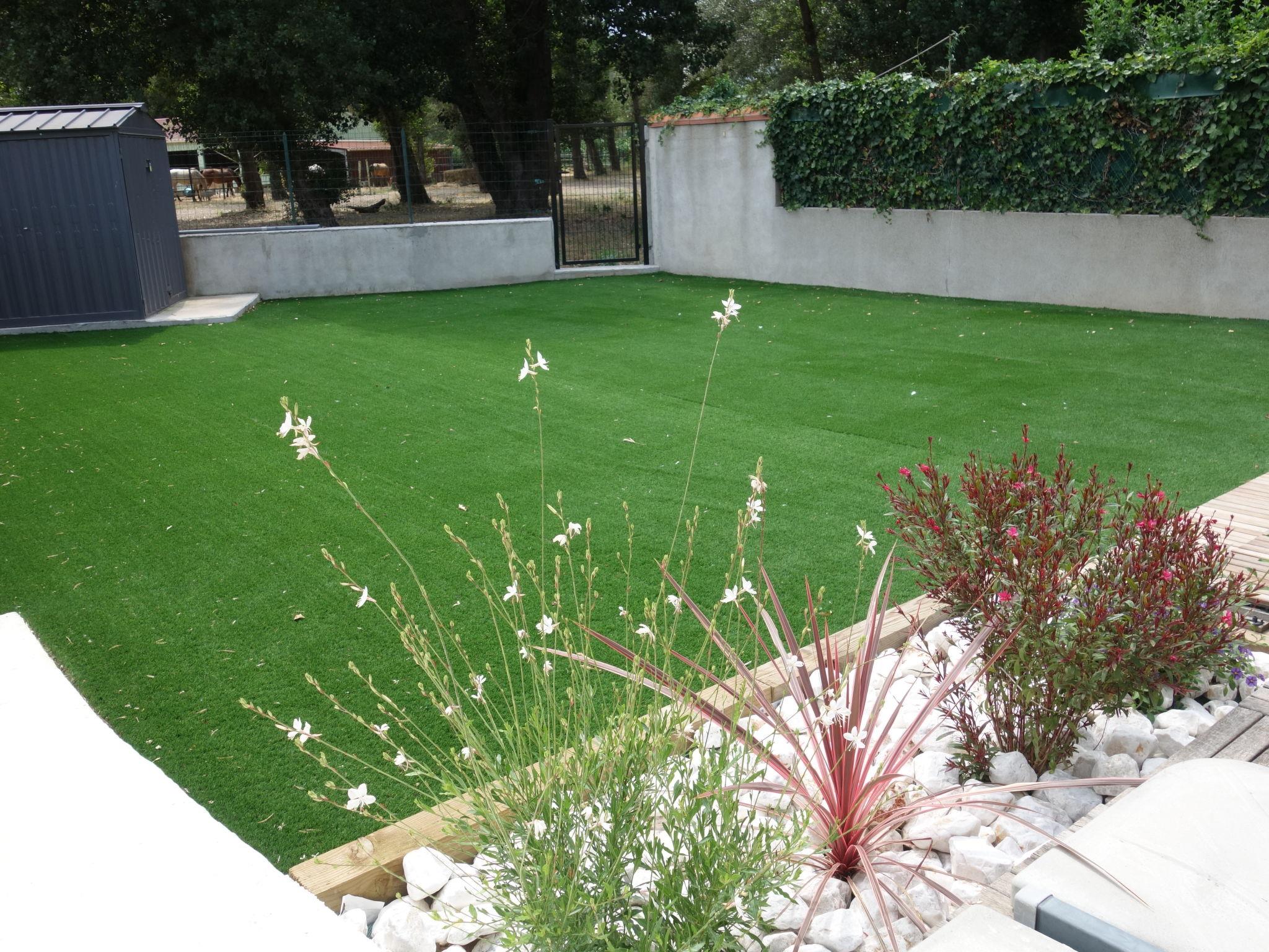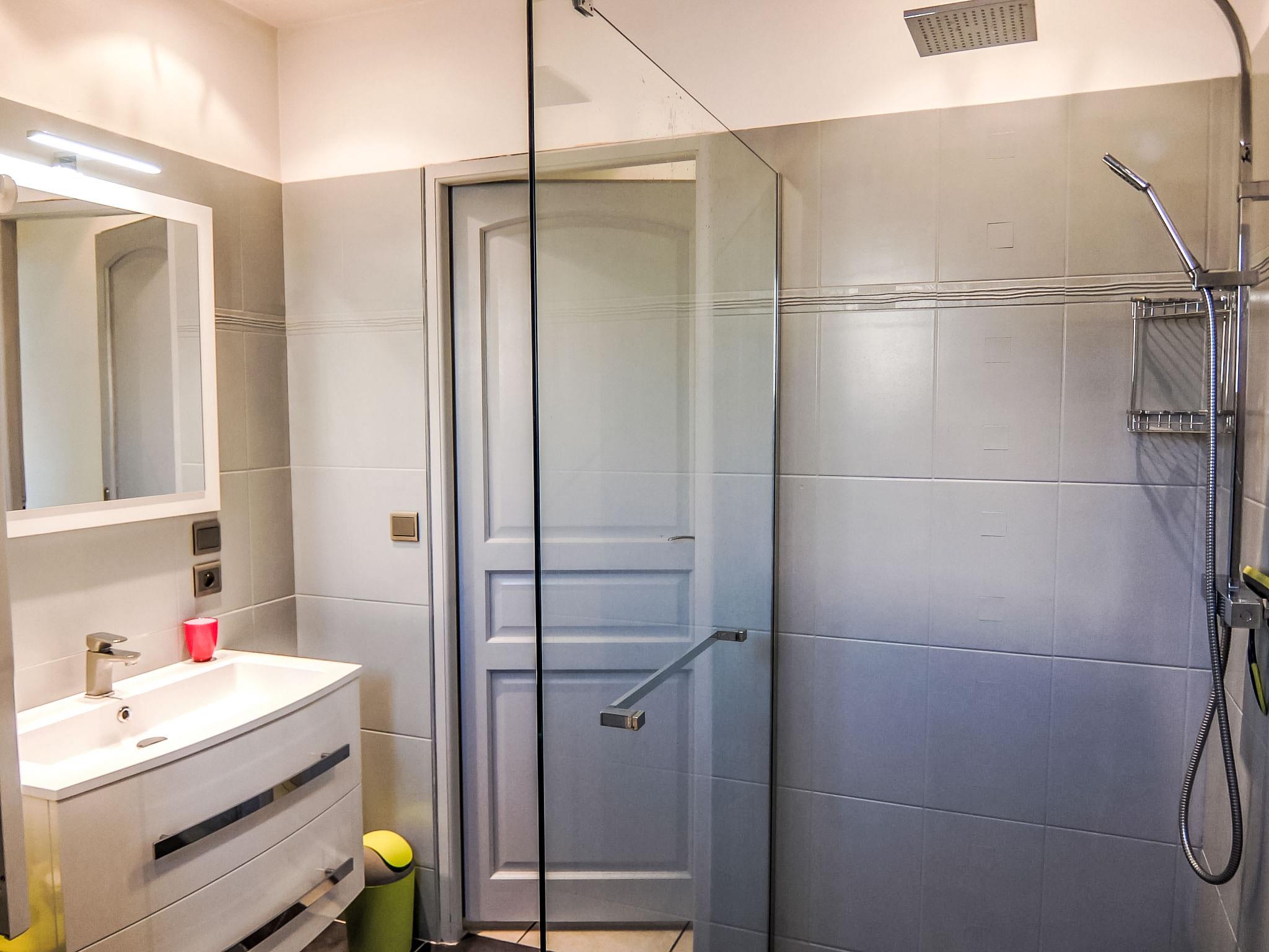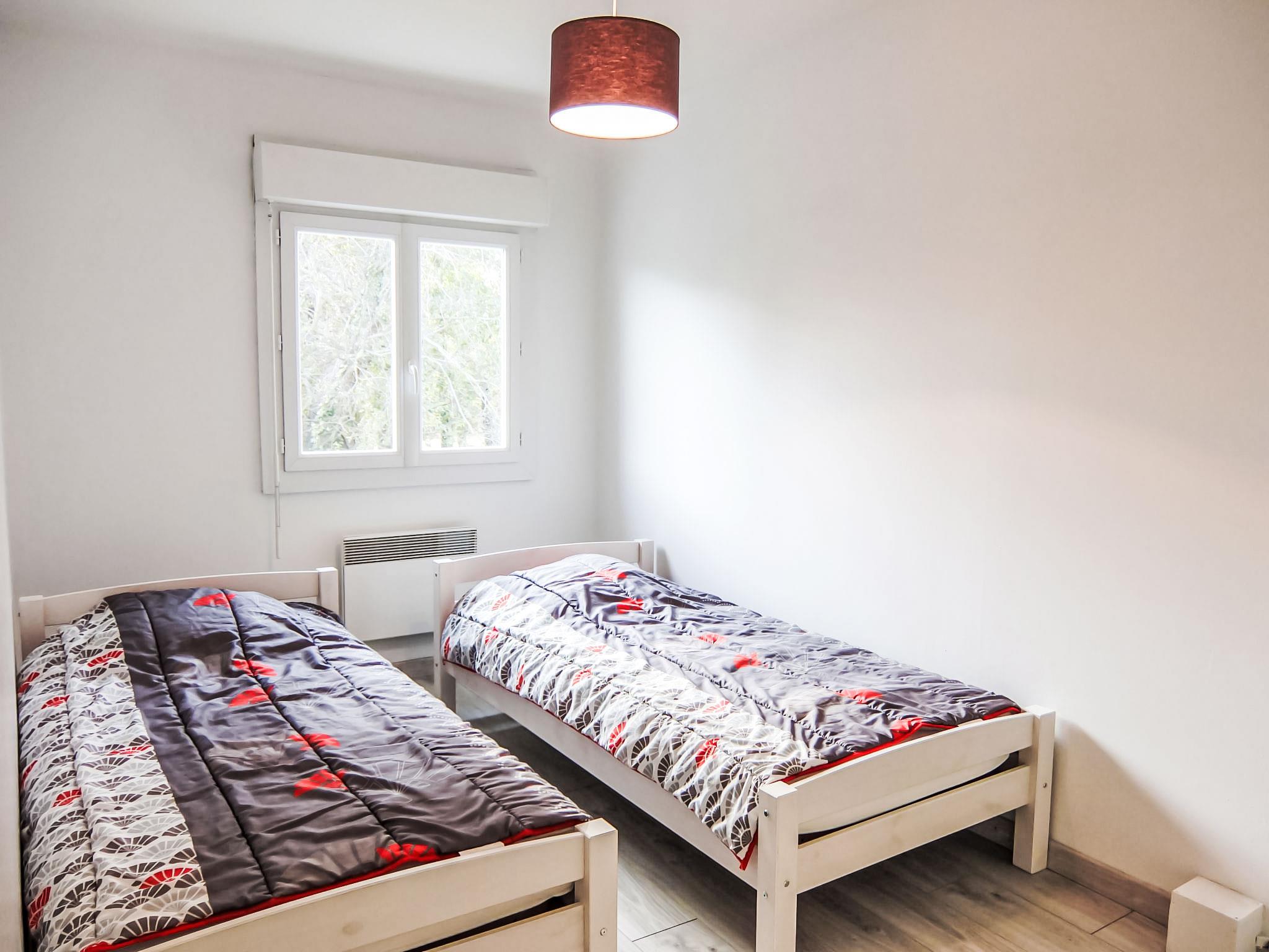 5-room terraced house 120 m2 on 2 levels. Comfortable furnishings: living/dining room with TV and air conditioning. Exit to the garden, to the terrace. Open kitchen (oven, dishwasher, 3 induction hot plates, microwave, freezer). Shower/WC. Heating, air-conditioning. Upper floor: playroom. Exit to the balcony. 2 rooms, each room with 1 french bed (140 cm). 1 room with 2 beds (90 cm). Bathroom, sep. WC. Terrace 40 m2, west facing position. Terrace furniture, barbecue. Facilities: washing machine, baby cot. Internet (WiFi, free). Please note: non-smoking house. Smoke alarm.