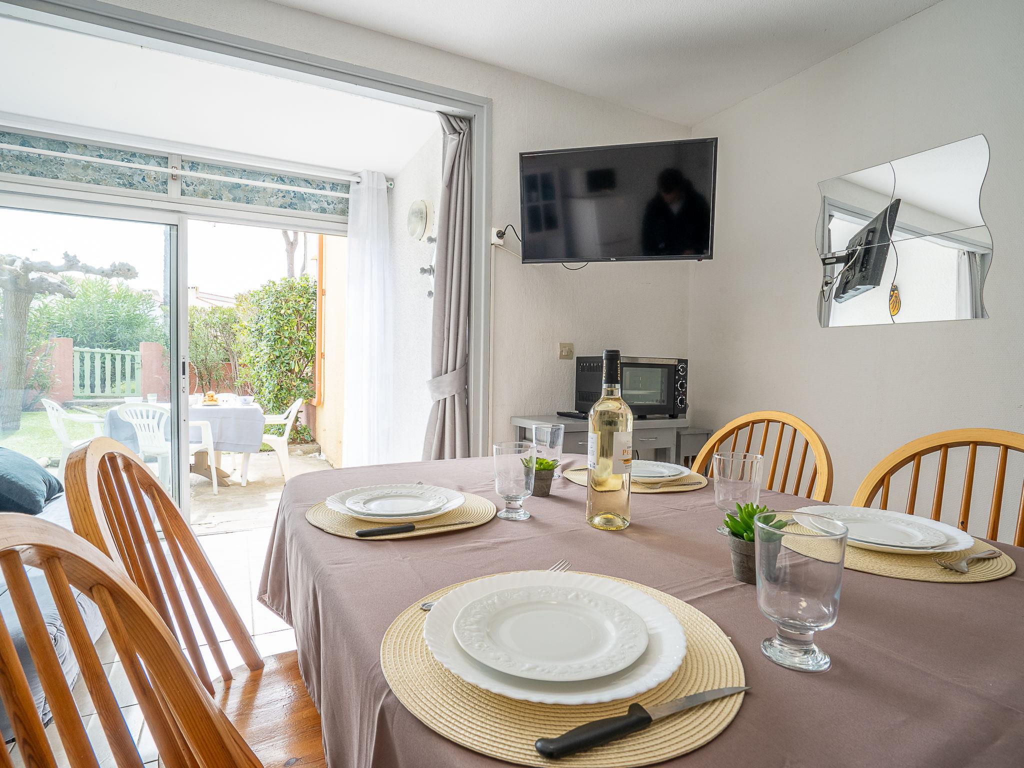 Residence "Les Mas de La Mer", 2 storeys. 400 m from the sea, from the beach, on a main road. Parking. Shop 700 m, supermarket 200 m, restaurant, bakery 700 m, bus stop 200 m, railway station "Elne" 8.6 km, sandy beach "Plage Nord" 400 m. Sports harbour 2 km, golf course (27 hole) 2 km, sailing school 3.5 km, minigolf 500 m, riding stable 3 km, sports centre 4 km. Nearby attractions: Aqualand 6 km. Please note: Additional accommodations can be booked.
