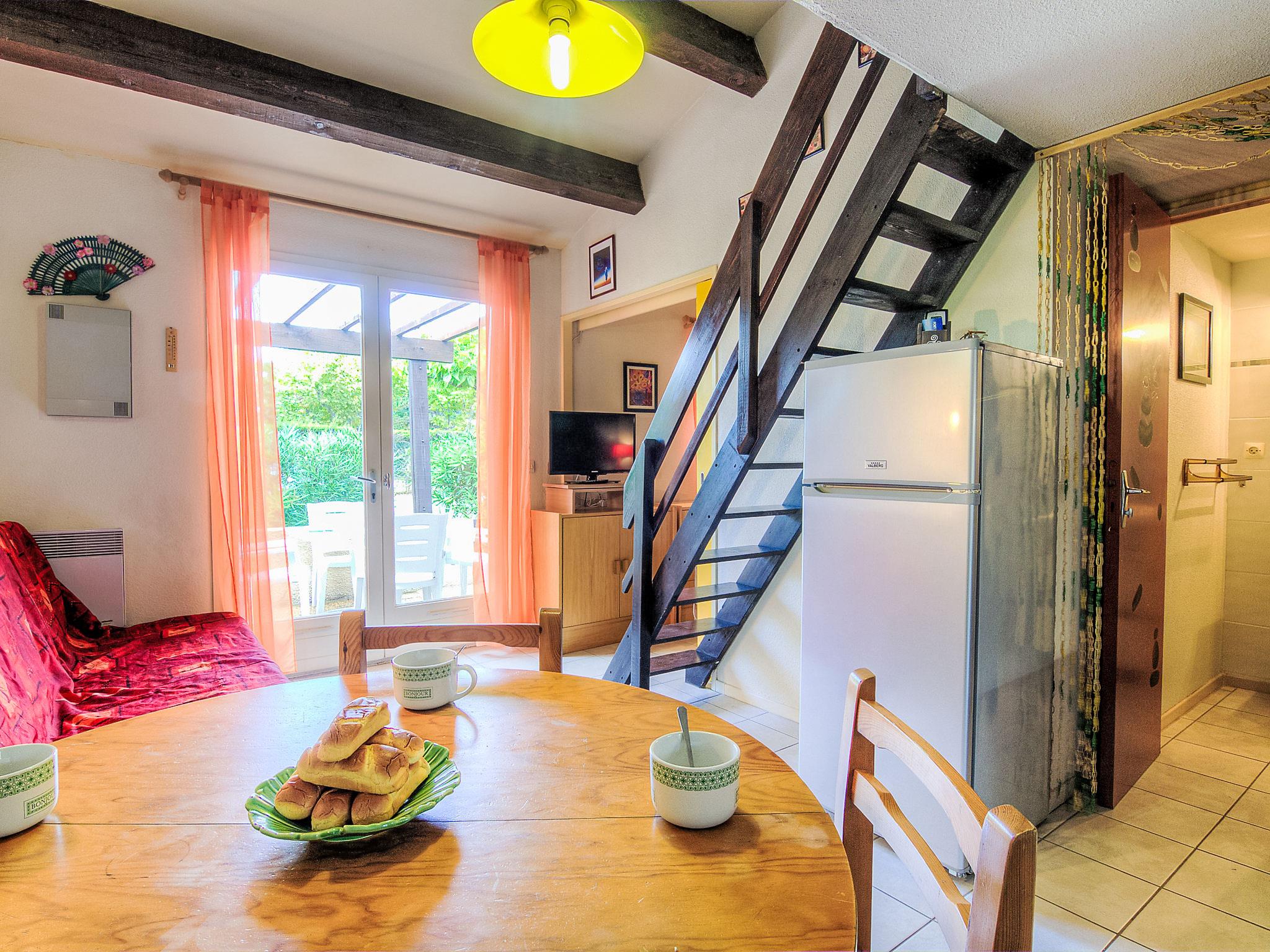 2-room house 28 m2. Living/dining room with 1 double sofabed (130 cm, length 190 cm), TV (flat screen). Exit to the terrace. 1 open small room with sliding door with 1 french bed (140 cm, length 190 cm). Kitchenette (2 hot plates, mini-oven, dishwasher, freezer, electric coffee machine). Shower/WC. Electric heating. Terrace. Terrace furniture, electric barbecue. Facilities: Internet (WiFi, extra). Parking. Please note: maximum 1 pet/ dog allowed. Smoke alarm.