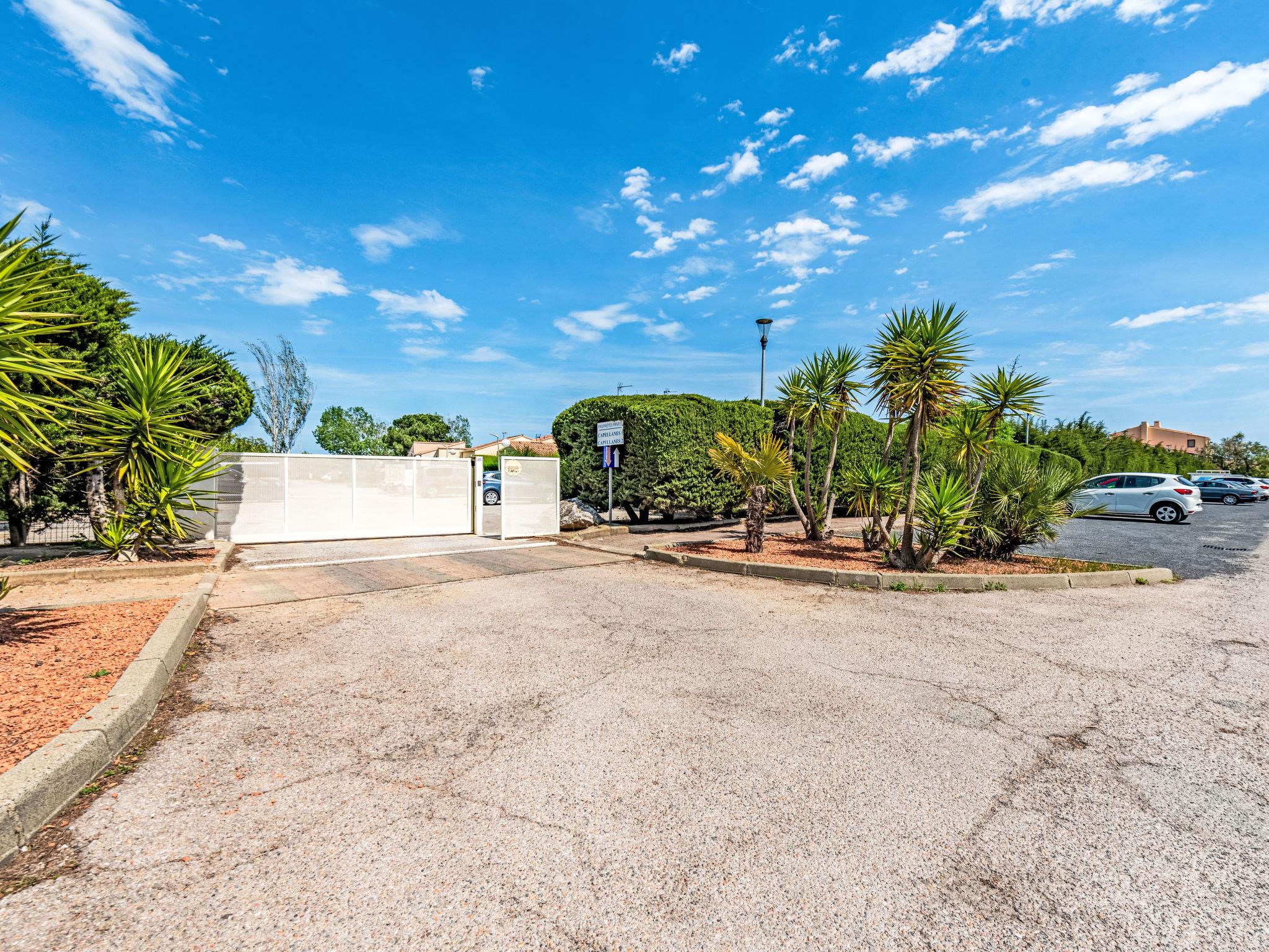 Residence "Les Capellanes". In the district of Les Capellans, 700 m from the sea, from the beach. Shop 1.5 km, supermarket 800 m, restaurant 900 m, bus stop 160 m, railway station "Elne" 7 km, sandy beach "Plage du pont tournant" 700 m. Sports harbour 1.5 km, golf course (27 hole) 4.5 km, sailing school 1 km, minigolf 3.3 km, riding stable 1.5 km, sports centre 1.3 km. Nearby attractions: Aqualand 2.5 km, Espagne 43 km, Barcelone 200 km.
