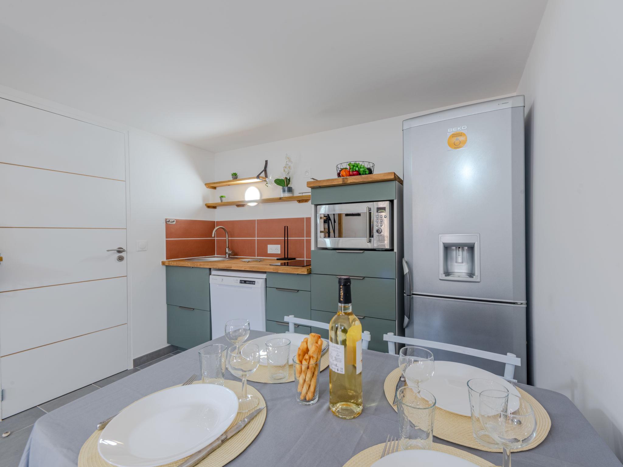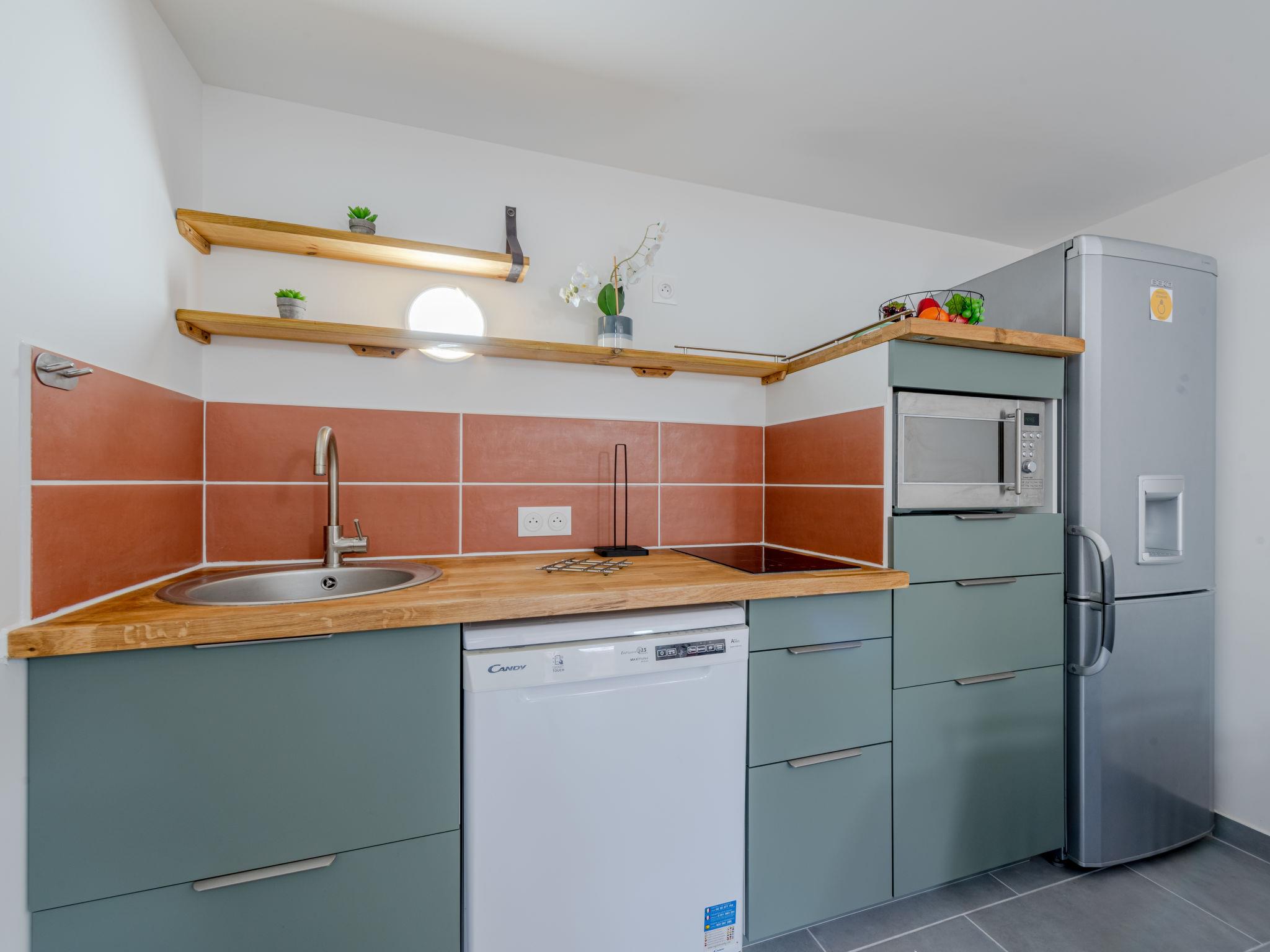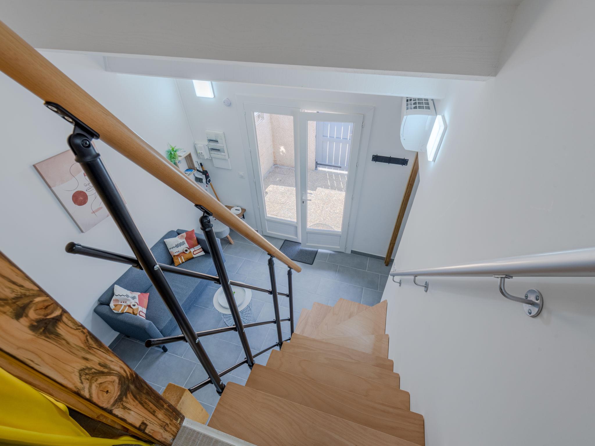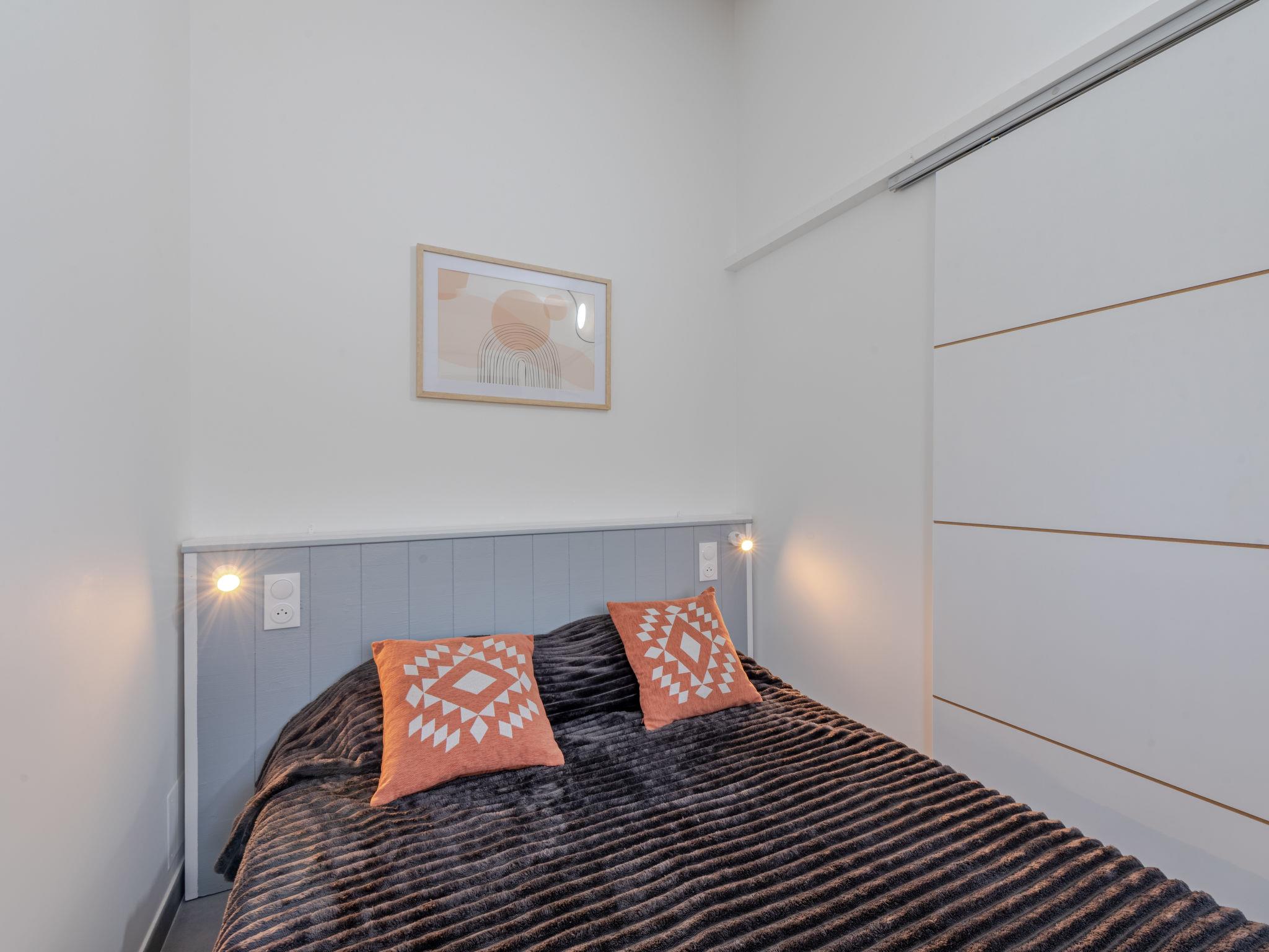 2-room house 28 m2. Beautiful furnishings: living/dining room. Exit to the terrace. 1 room with sliding door with 1 french bed (140 cm, length 190 cm), TV (flat screen). Kitchenette (dishwasher, 2 induction hot plates, toaster, kettle, microwave, freezer, electric coffee machine, Capsules for coffee machine (senseo) extra). Shower/WC. Electric heating, air-conditioning. Upper floor: (steep stair) open gallery with sloping ceilings, ceiling height 120 - 190 cm with 2 beds (70 cm, length 190 cm). Terrace. Terrace furniture, barbecue. Facilities: washing machine. Internet (WiFi). Parking. Please note: smoke alarm. Offer by a private individual according to Art. 155, IV of CGI.
