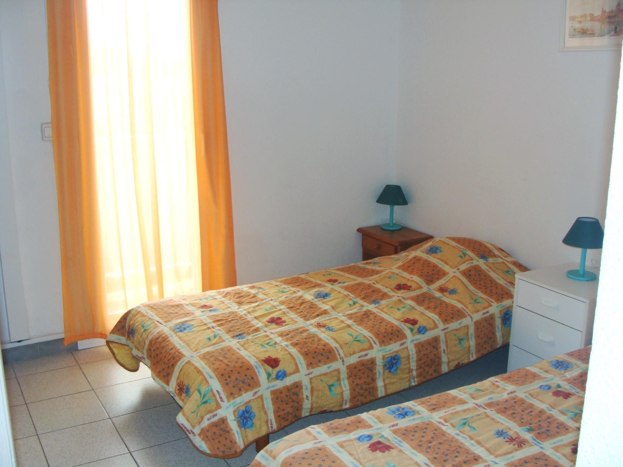 The living room has a double sofa bed (140 cm wide when open). The air-conditioned bedroom has two single beds (90 cm wide) and access to the balcony. The bedroom and living room are separated by a corridor. The kitchen has a washing machine, tumble dryer, fridge with freezer, multifunction oven, two-burner ceramic hob, coffee maker and toaster. The bathroom has a bath. All rooms have electric radiators. There is also a fan in the lounge.