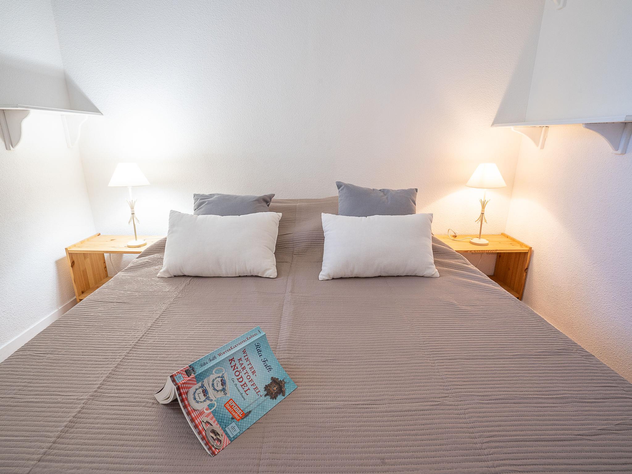 3-room terraced house 40 m2 on 2 levels. Living/dining room with 1 double sofabed (160 cm, length 200 cm), TV (flat screen). Exit to the terrace. 1 room with 1 french bed (140 cm, length 190 cm). Kitchenette (2 hot plates, microwave, freezer). Shower, sep. WC. Heating. Upper floor: 1 room with 1 french bed (140 cm, length 190 cm). Terrace 20 m2, west facing position, patio. Terrace furniture. Facilities: washing machine. Internet (WiFi, extra). Parking. Please note: smoke alarm.