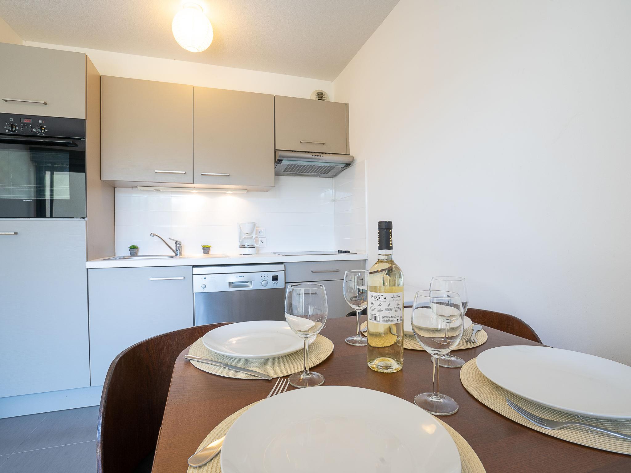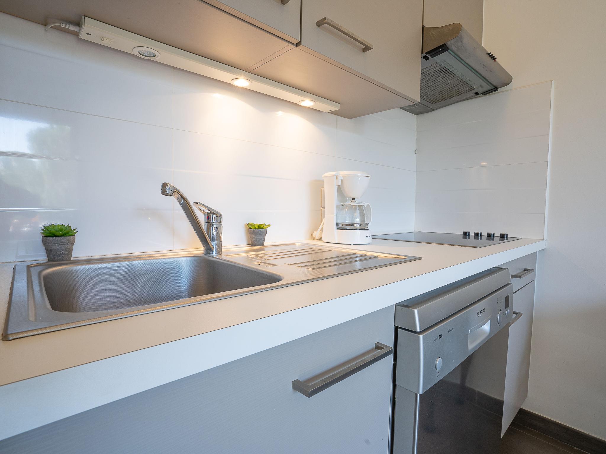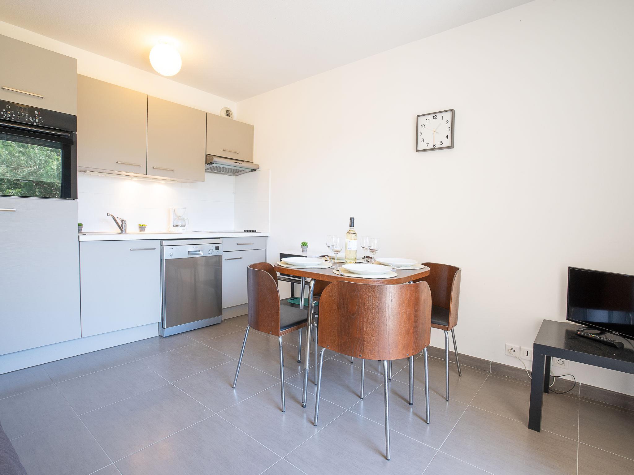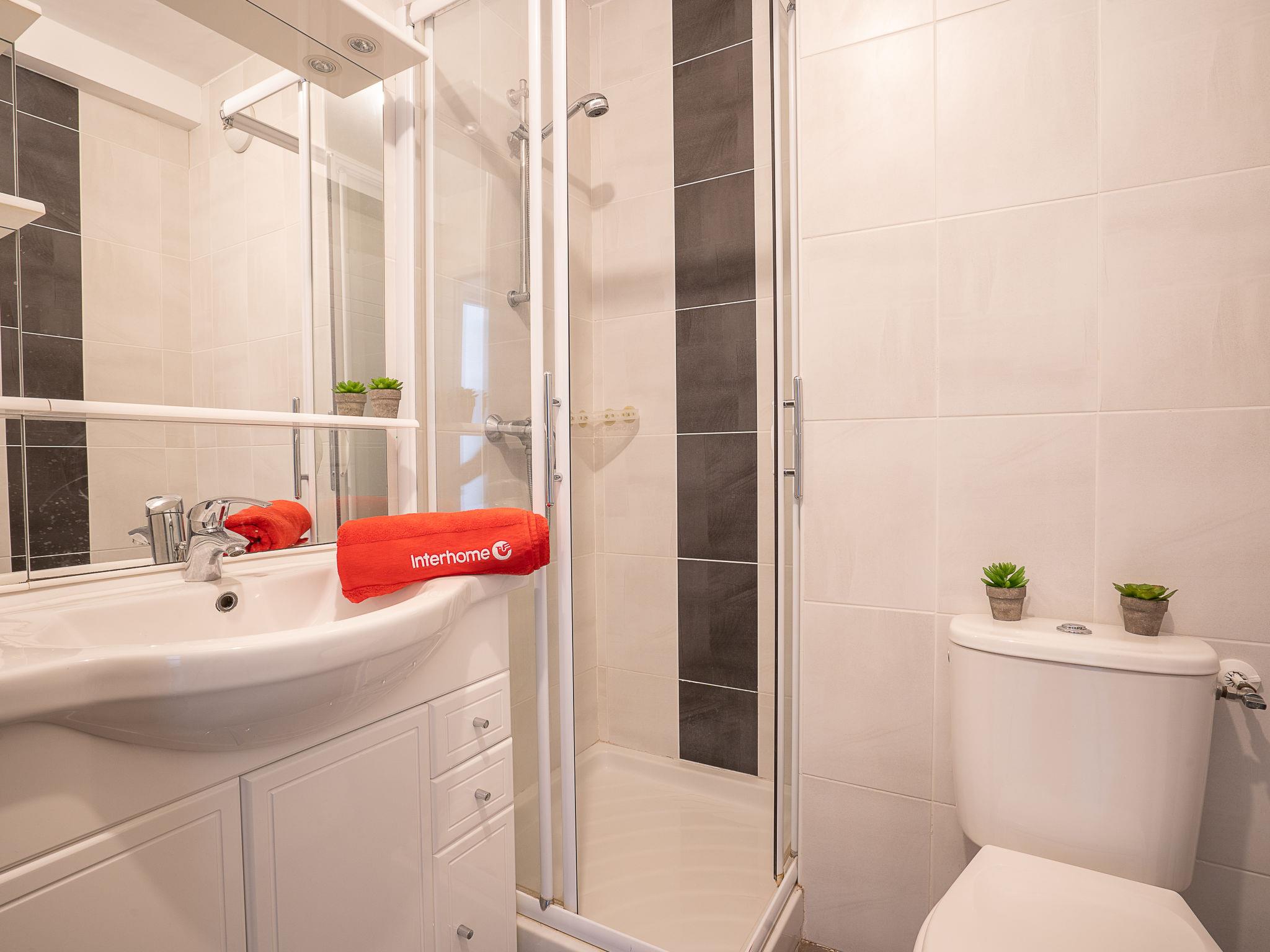 2-room apartment 33 m2 on 2nd floor. Living/dining room with 1 double sofabed (130 cm, length 190 cm), TV (flat screen). Exit to the terrace. 1 room with 1 french bed (140 cm, length 200 cm). Kitchenette (oven, dishwasher, 4 ceramic glass hob hotplates, microwave, freezer, electric coffee machine). Shower/WC. Air-conditioning. Terrace 10 m2, roofed. Terrace furniture. Beautiful view of golf course. Facilities: washing machine. Internet (WiFi, extra). Parking. Please note: smoke alarm. GOLF CLAIR- FR6665.815.15