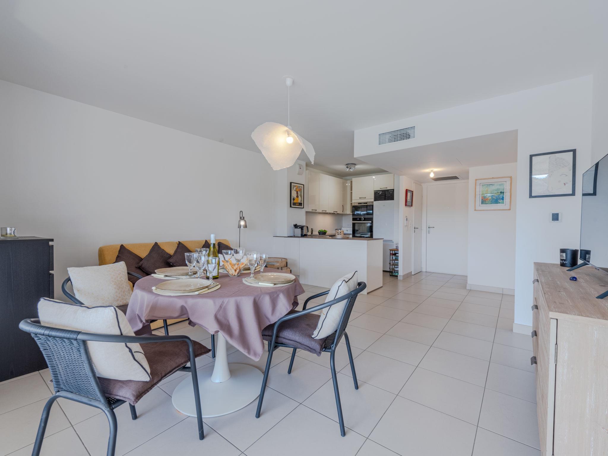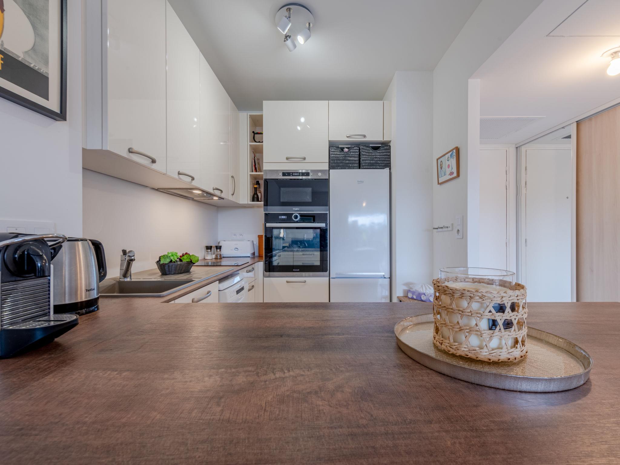 2-room apartment 47 m2 on 1st floor. Beautiful furnishings: living/dining room with 1 double sofabed (140 cm, length 190 cm), dining table and TV (flat screen), air conditioning. Exit to the loggia. 1 large room with 1 french bed (160 cm, length 200 cm), TV. Kitchenette (oven, dishwasher, 2 ceramic glass hob hotplates, toaster, kettle, microwave, freezer, electric coffee machine). Shower, bidet, sep. WC. Air-conditioning. Terrace 16 m2, roofed, south facing position. Beautiful view of the swimming pool. Facilities: washing machine, iron. Internet (WiFi, free). Parking (1 car). Please note: smoke alarm. Offer by a private individual according to Art. 155, IV of CGI.