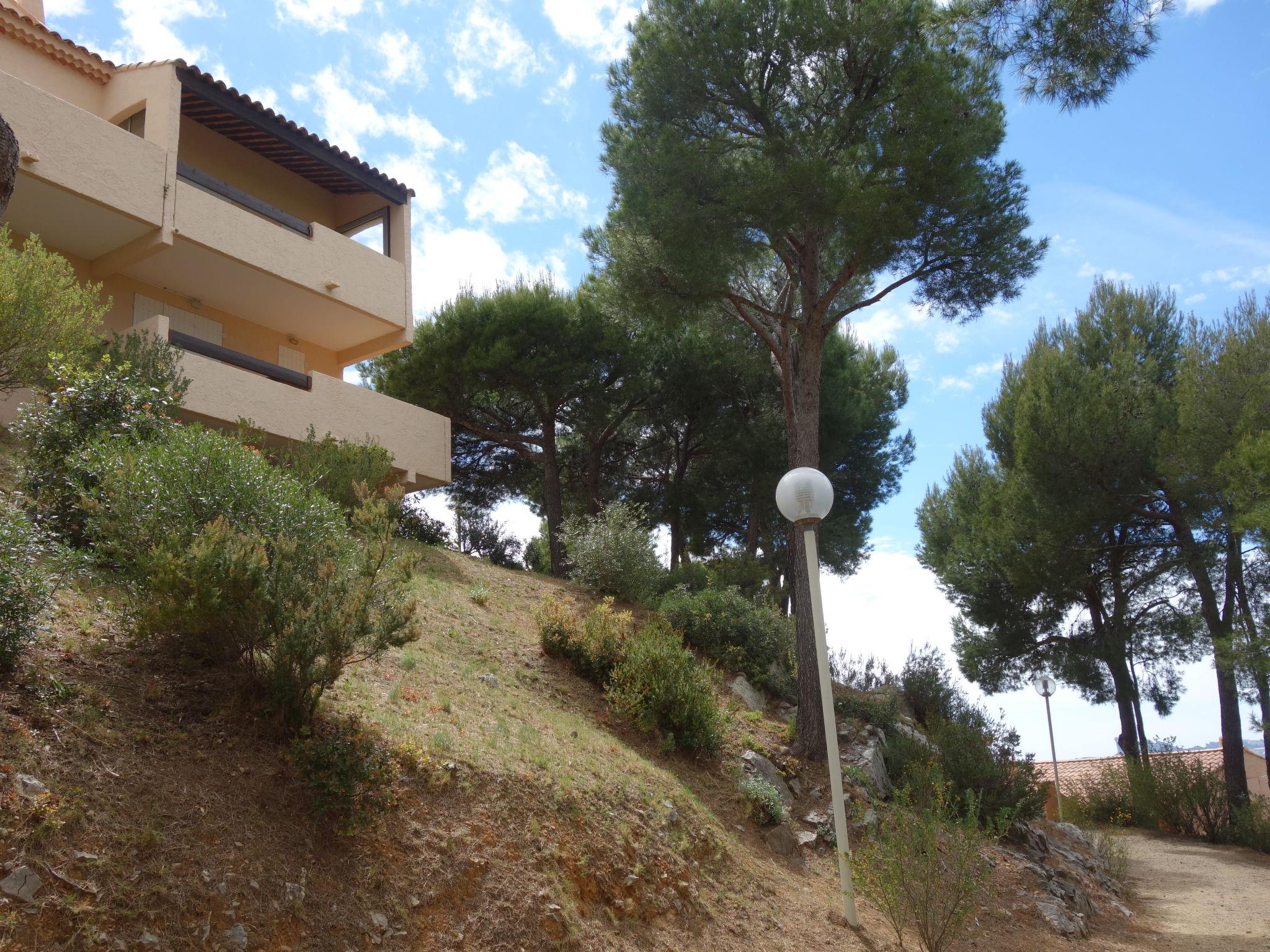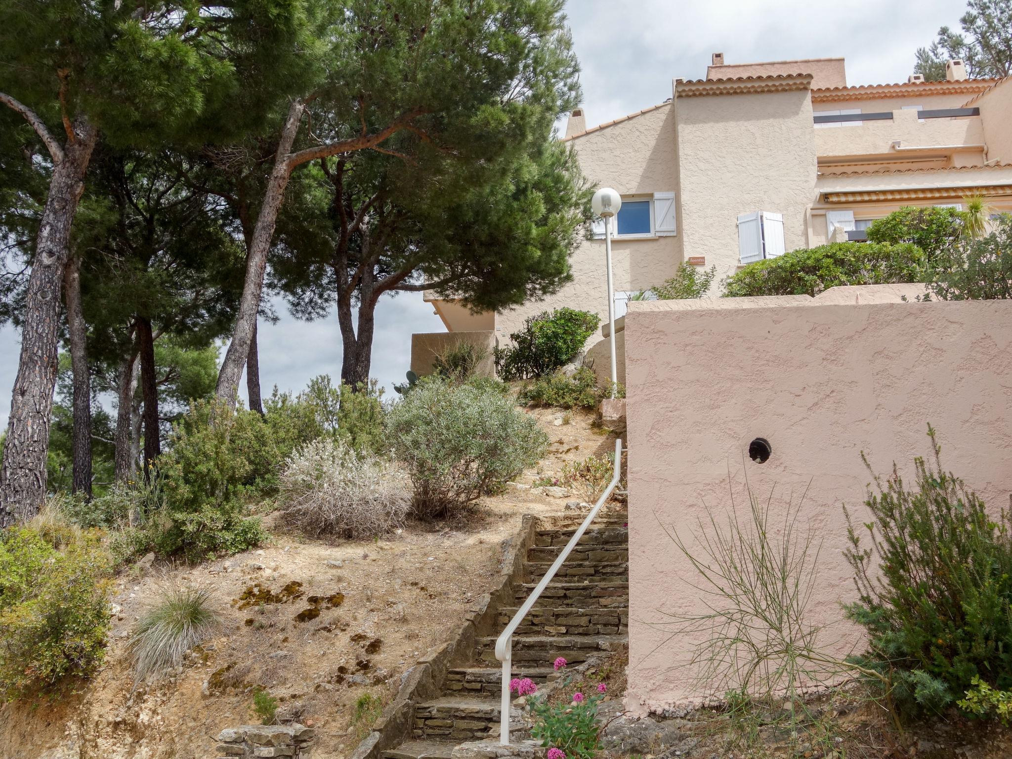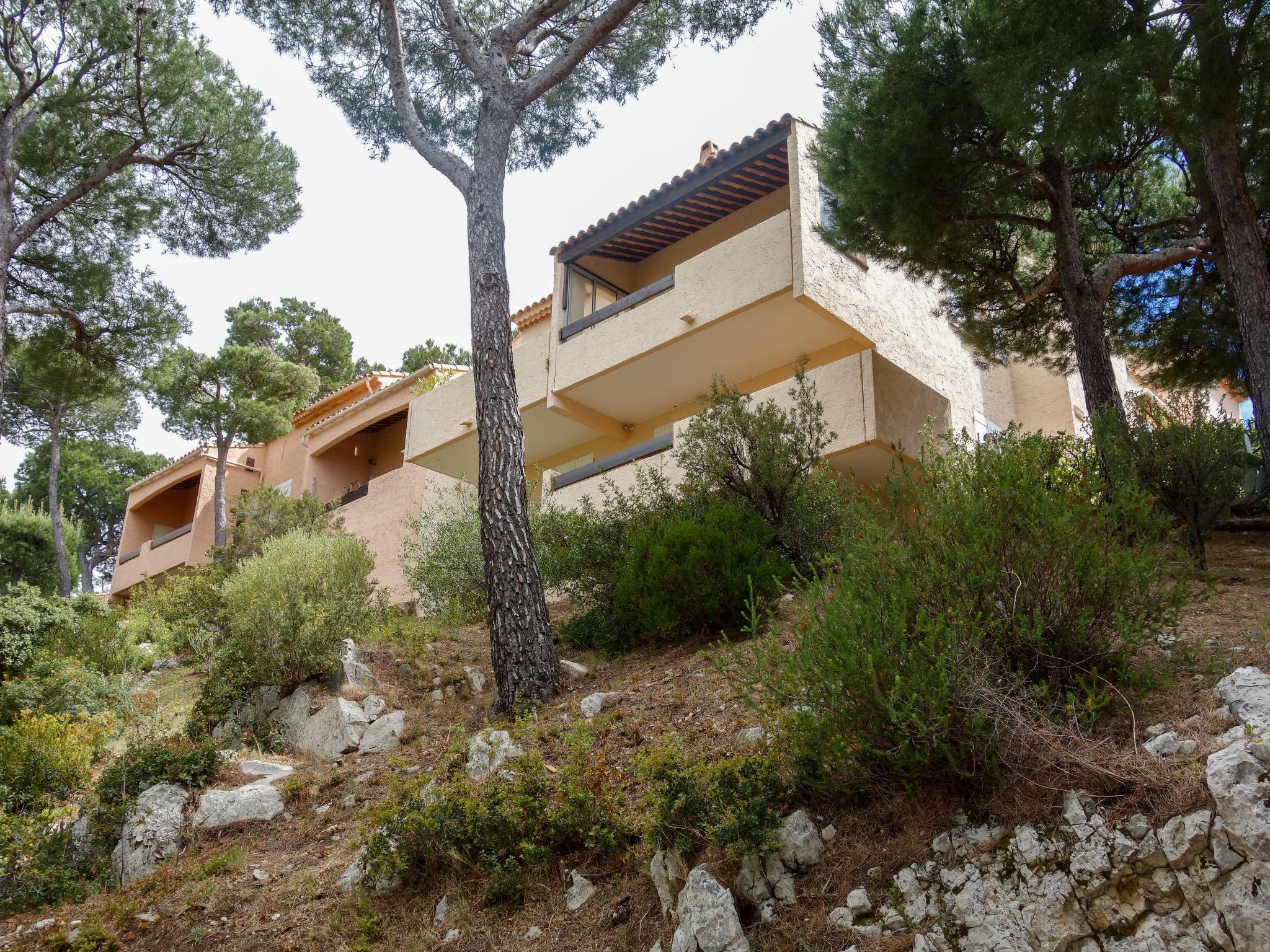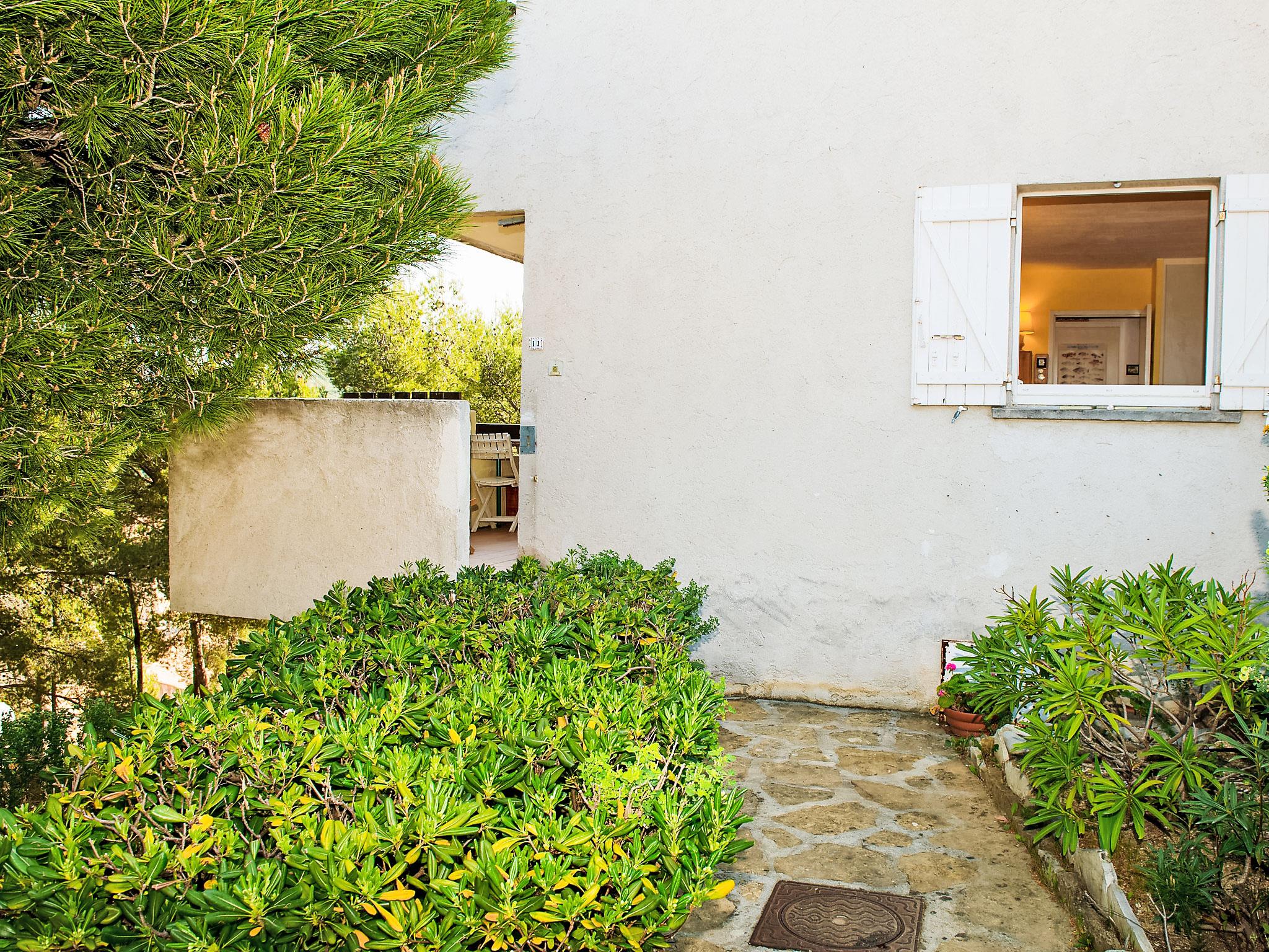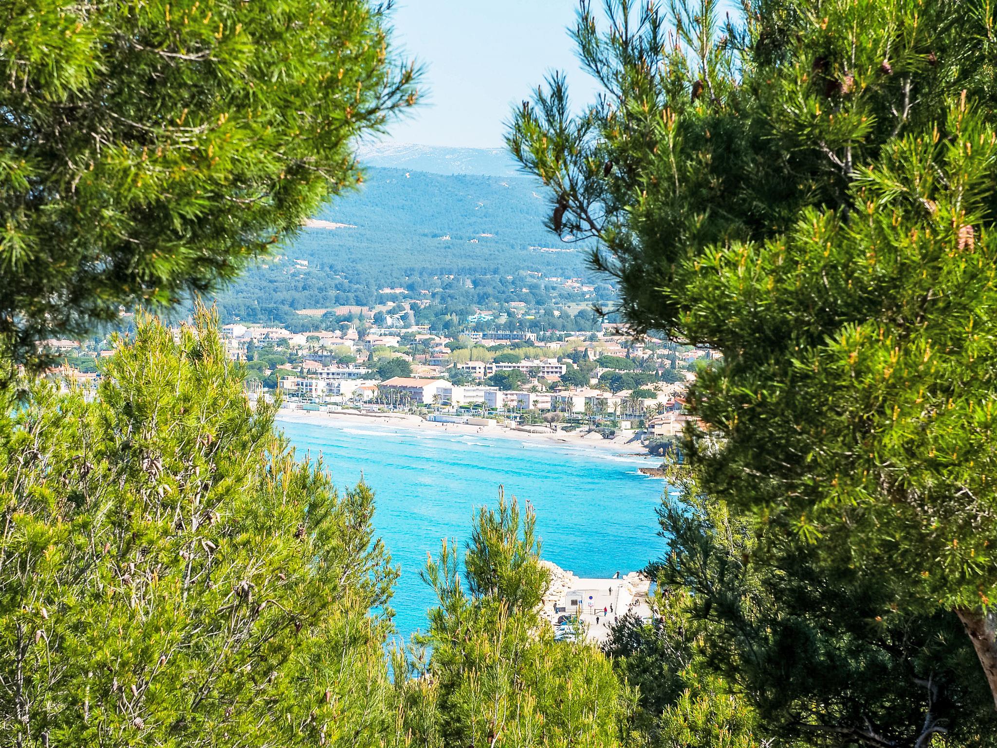 La Madrague 2 km from Saint Cyr Sur Mer: Residence "Mas de la Madrague", surrounded by trees. Above La Madrague, in a quiet, elevated position on top of a hill, 300 m from the sea, 300 m from the beach, in a cul-de-sac. Parking (limited number of spaces), public parking on the road. Supermarket 2.5 km, restaurant 400 m, bus stop "Le Viguier" 2.6 km, railway station "Saint Cyr les Lecques-La Cadière" 3.8 km, sandy beach 500 m, shingle beach 300 m. Golf course (18 hole) 3.5 km. Nearby attractions: Aqualand 3 km. Hiking paths: Sainte Beaume, Sainte Victoire, Calanques Port-Cros, Porquerolles, Ile verte, Embiez, Figuerolles, Cassis. Please note: residence with electric gates. Additional accommodations can be booked. The grocery store is located on 100 meters and open from 1 May to 30 September. Numerous steps in the residence.